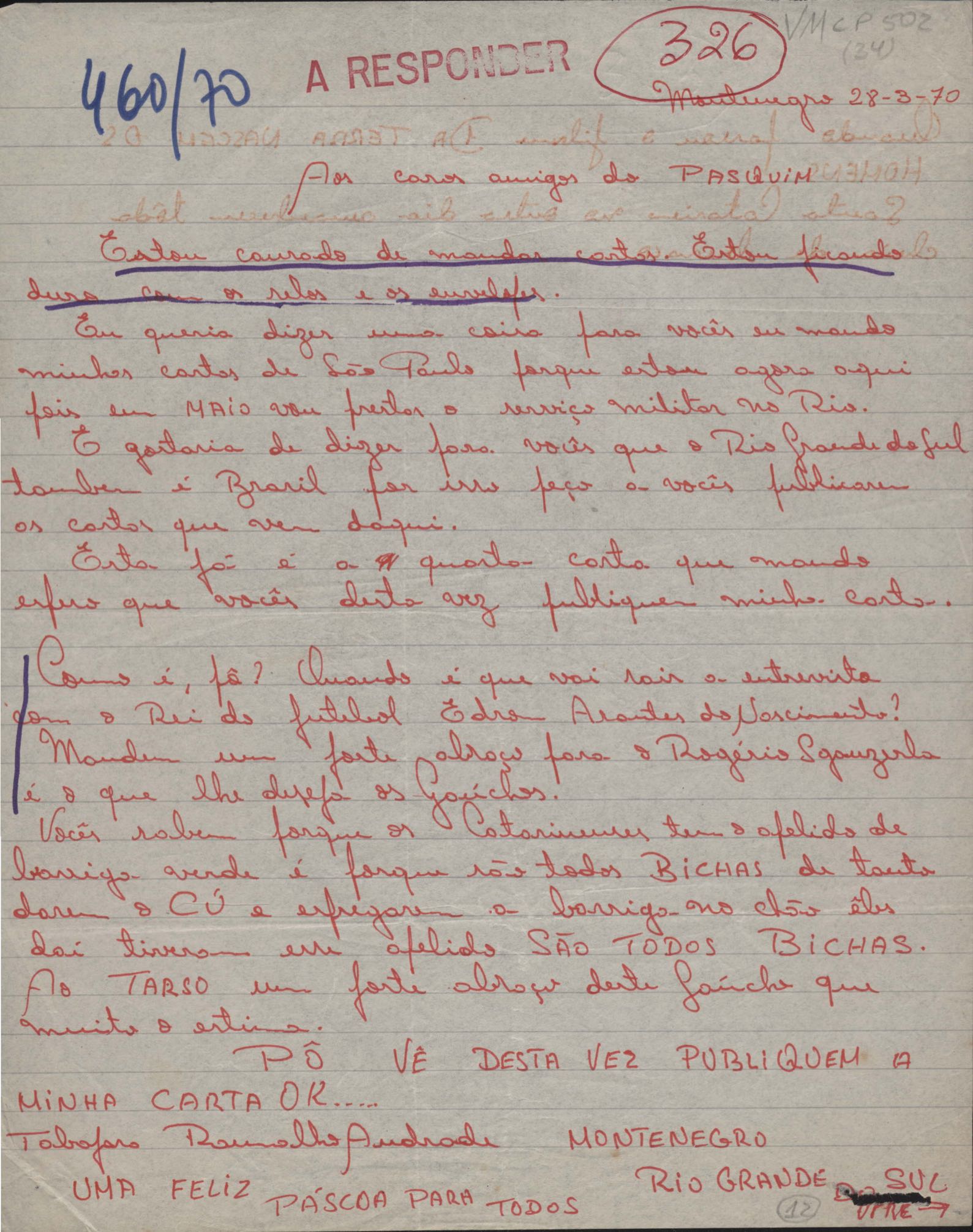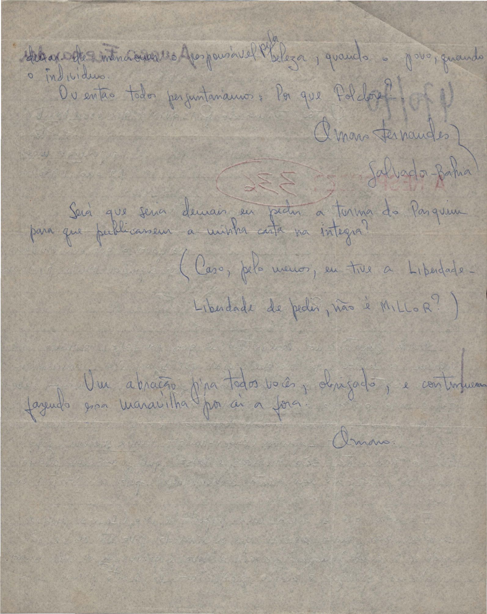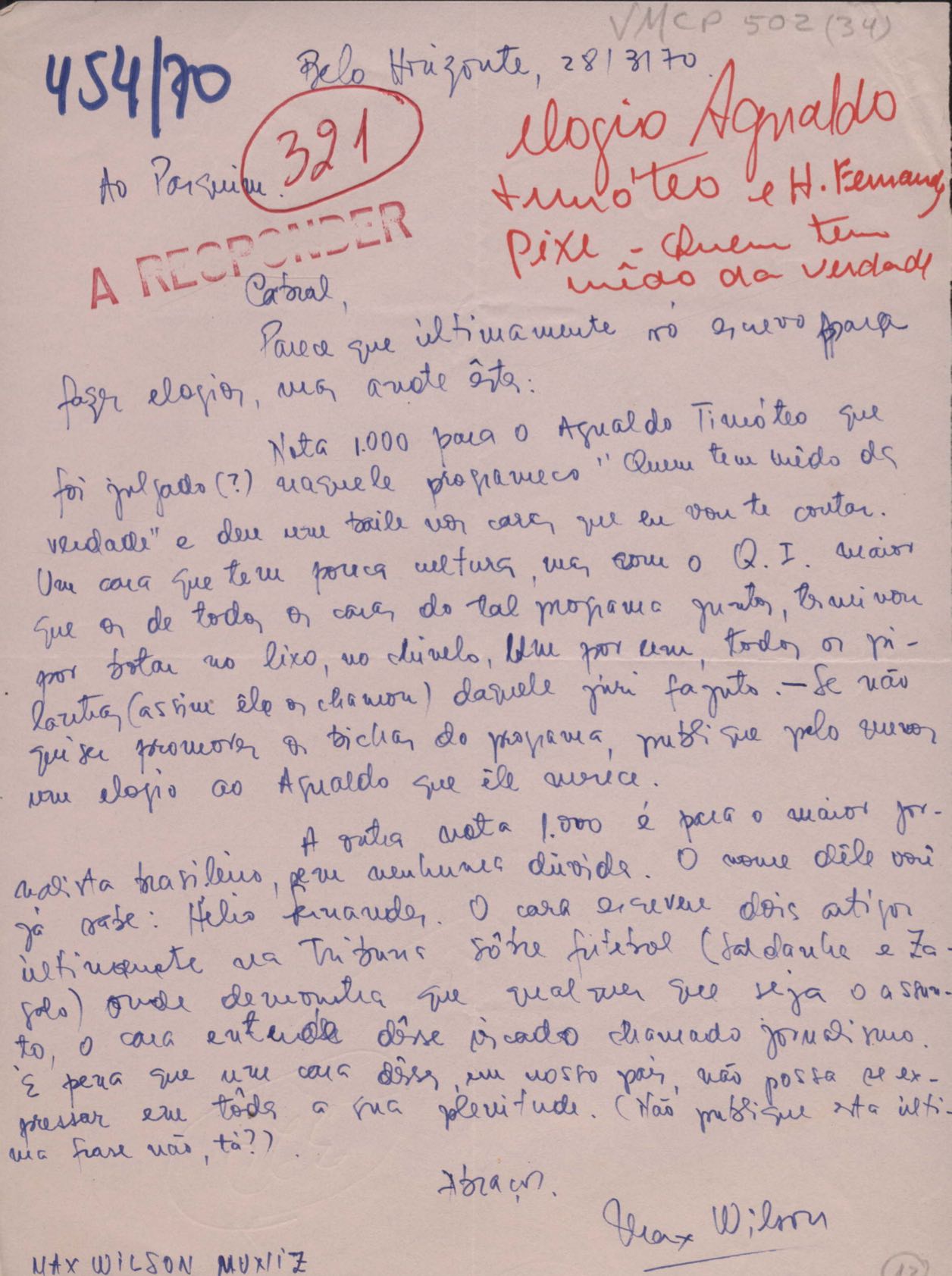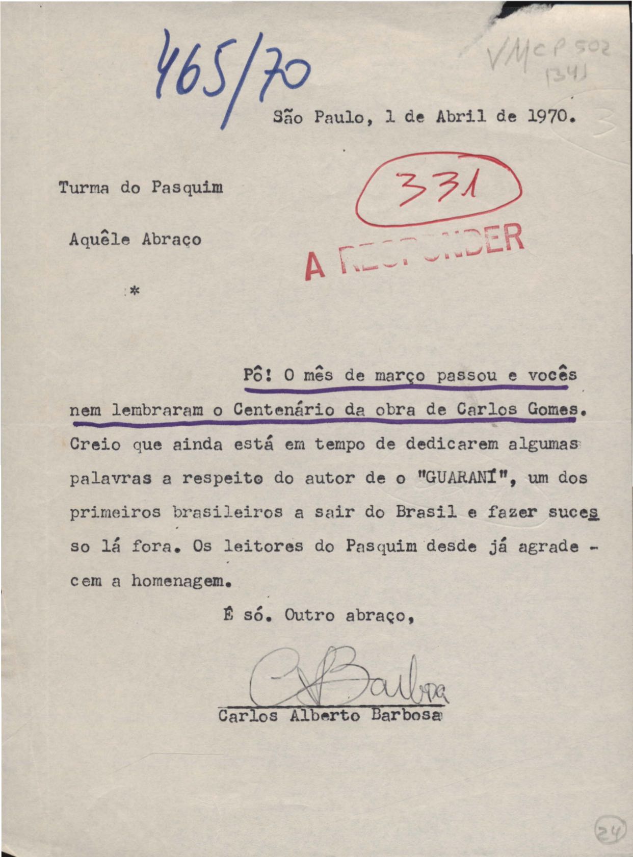 Remessa de cartas de leitores a fim de serem respondidas por VM. Anexos: Cartas de leitores do jornal.