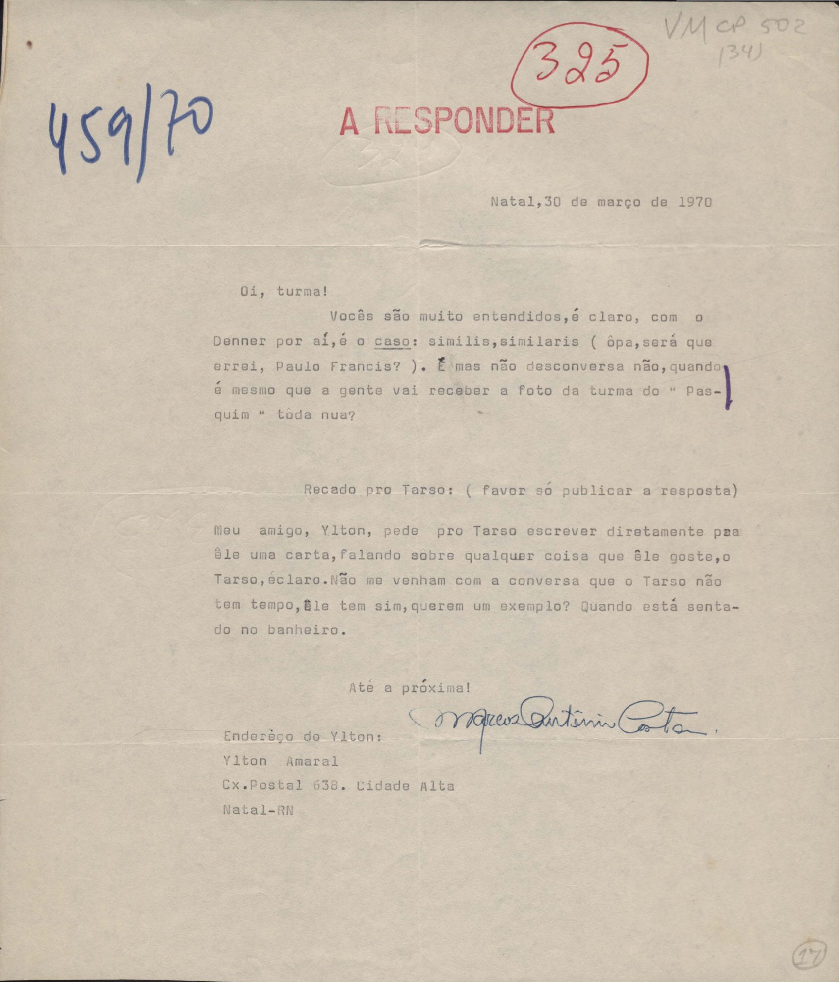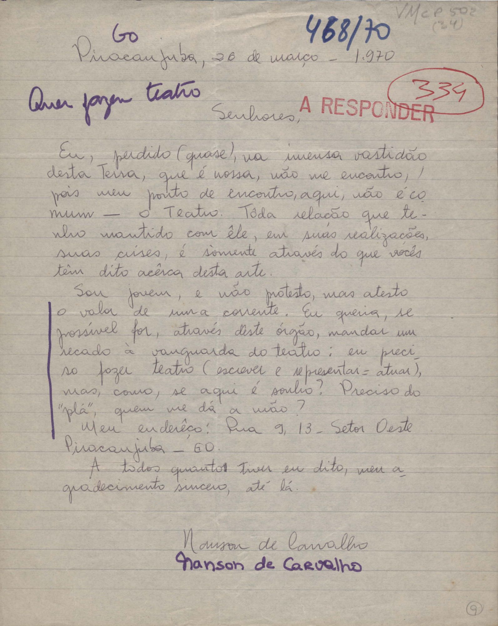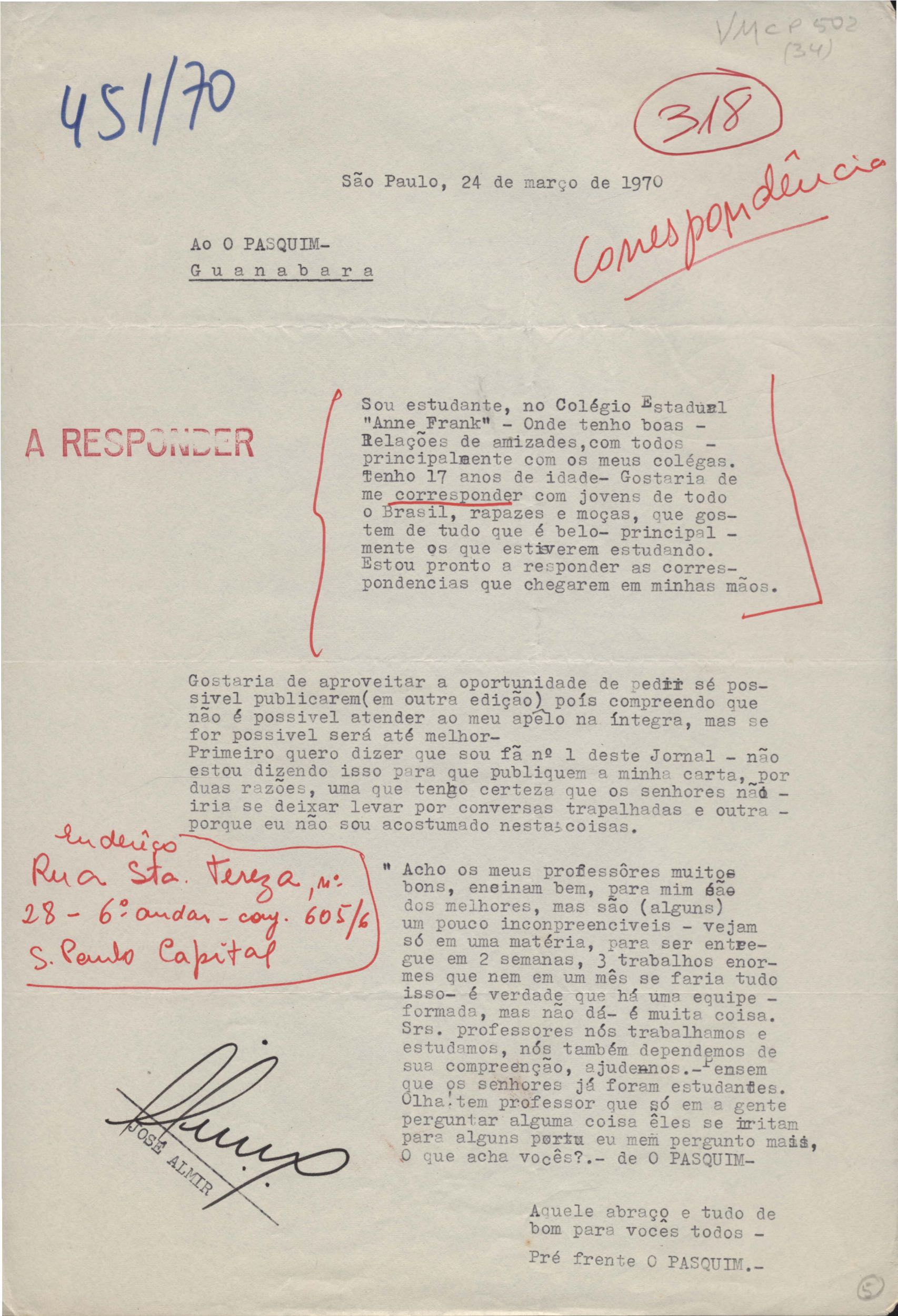 SÉRIE: CORRESPONDÊNCIA PESSOAL