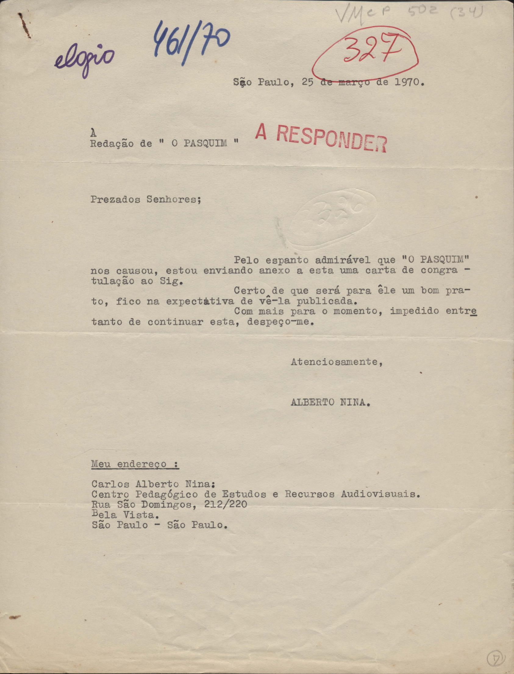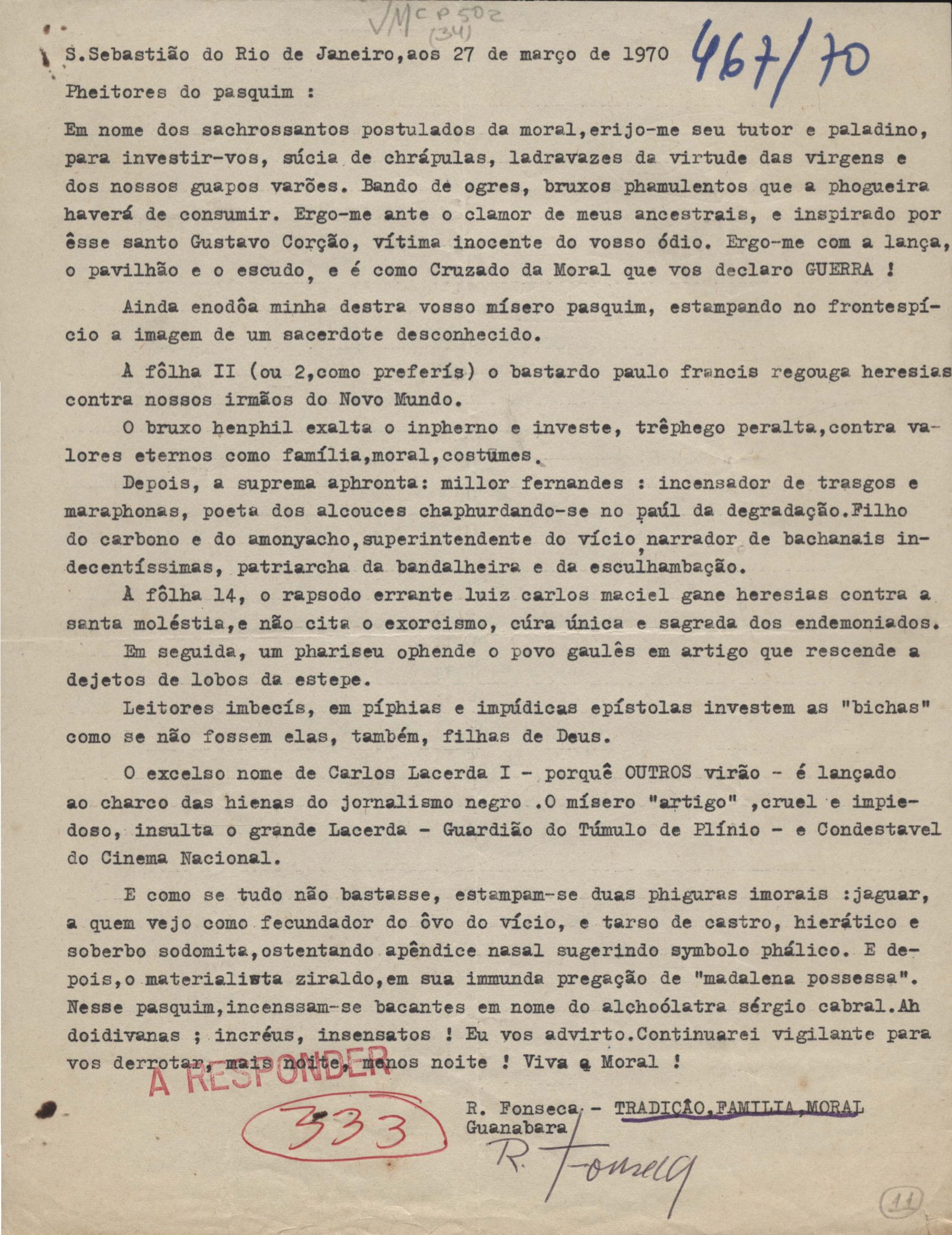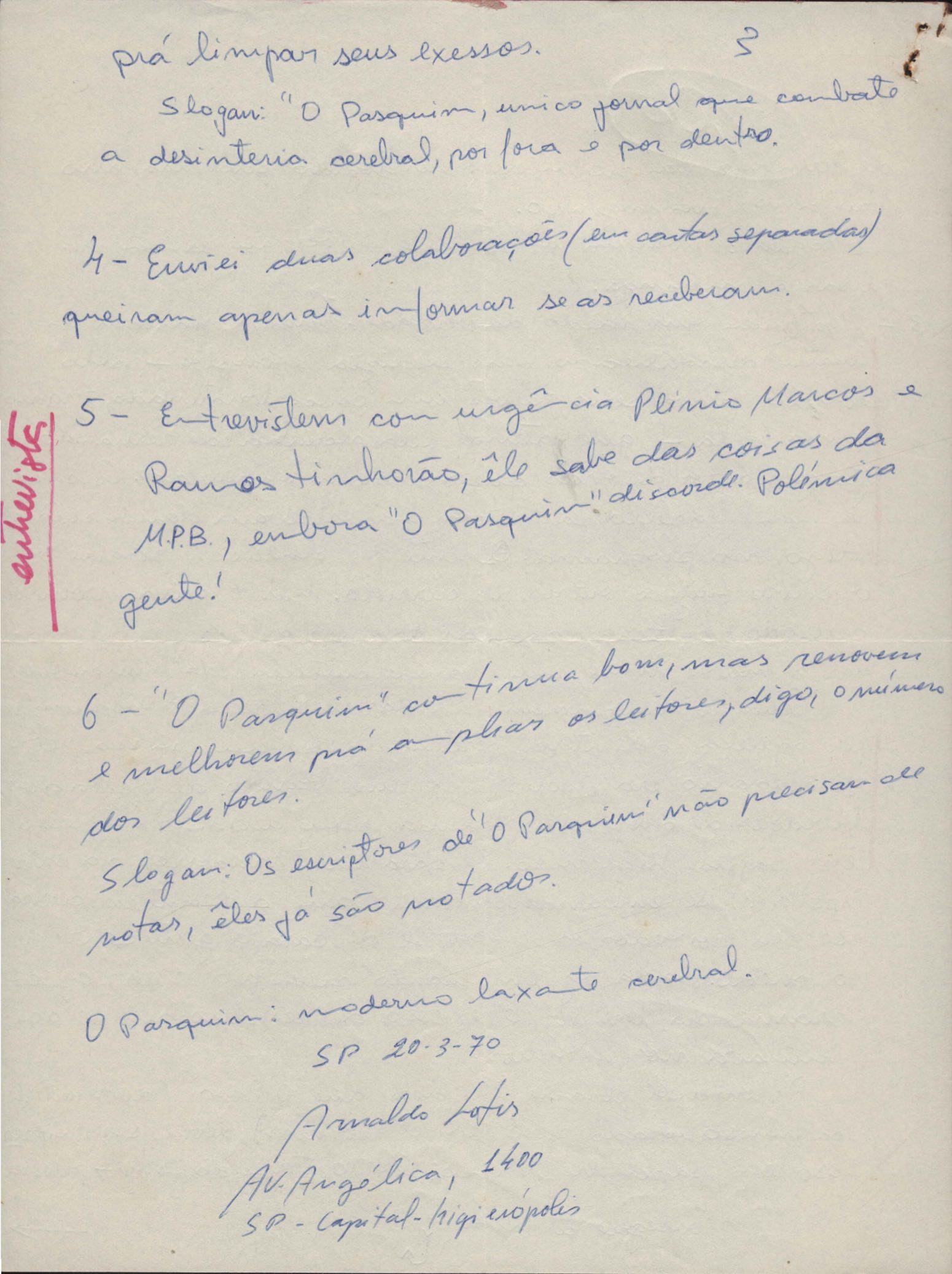 SÉRIE: CORRESPONDÊNCIA PESSOAL
