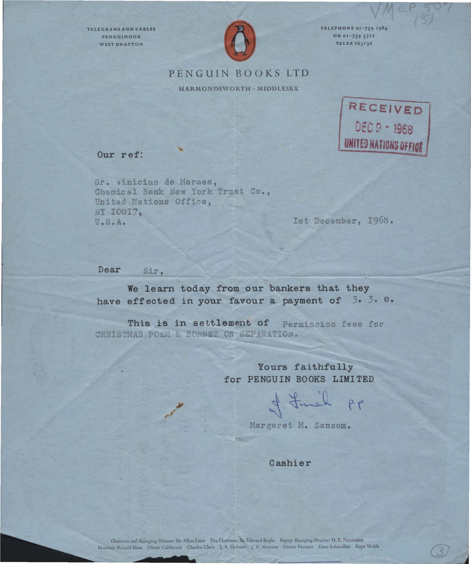 Pedido de autorização para publicar poemas de VM. Pagamento de direitos autorais. Anexo: Autorização para publicação de poemas.