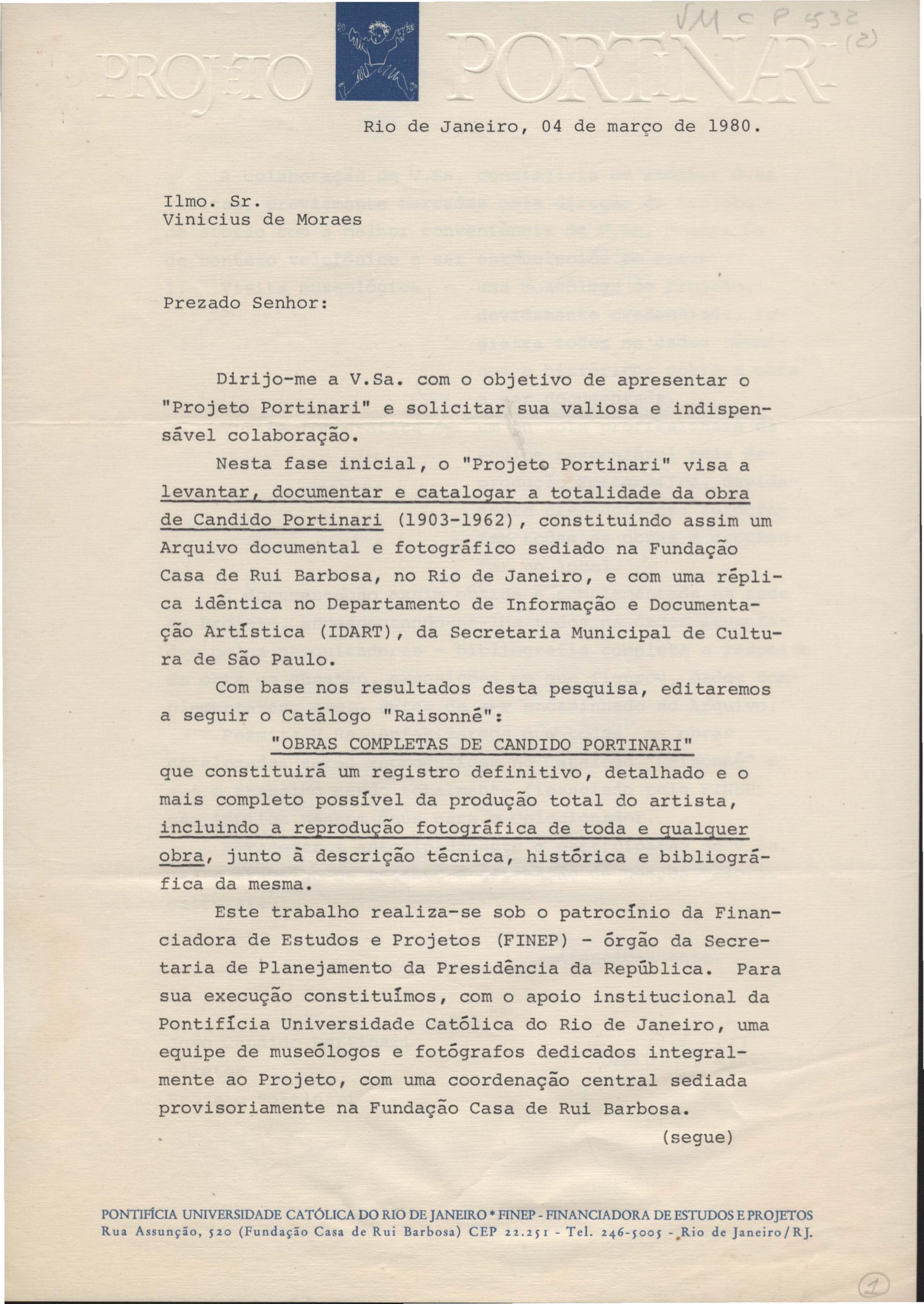 Apresentação dos objetivos do Projeto e pedido da colaboração de VM.