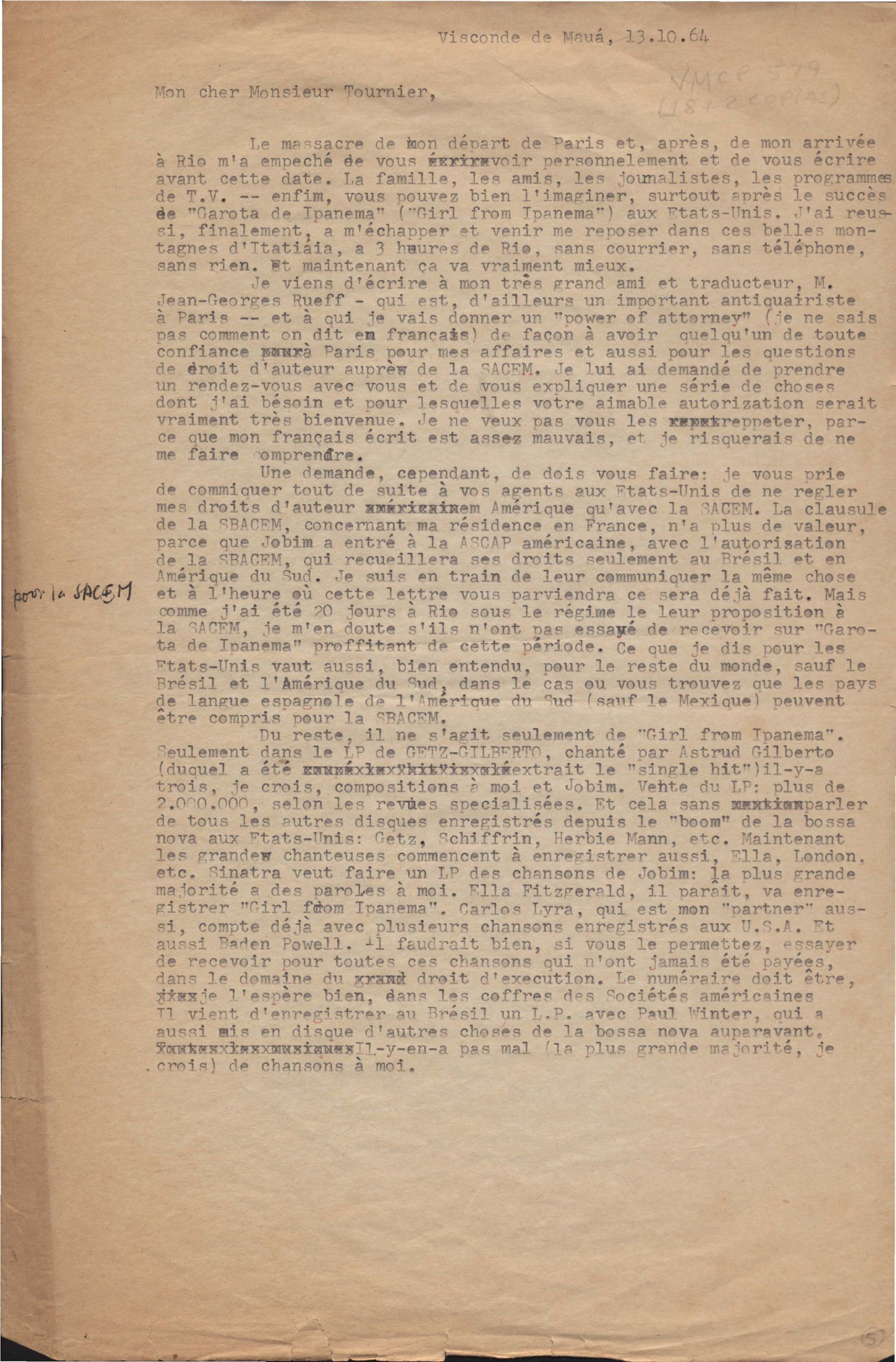 Carta à Société des Auteurs, Compositeurs et Éditeurs de Musique (SACEM)