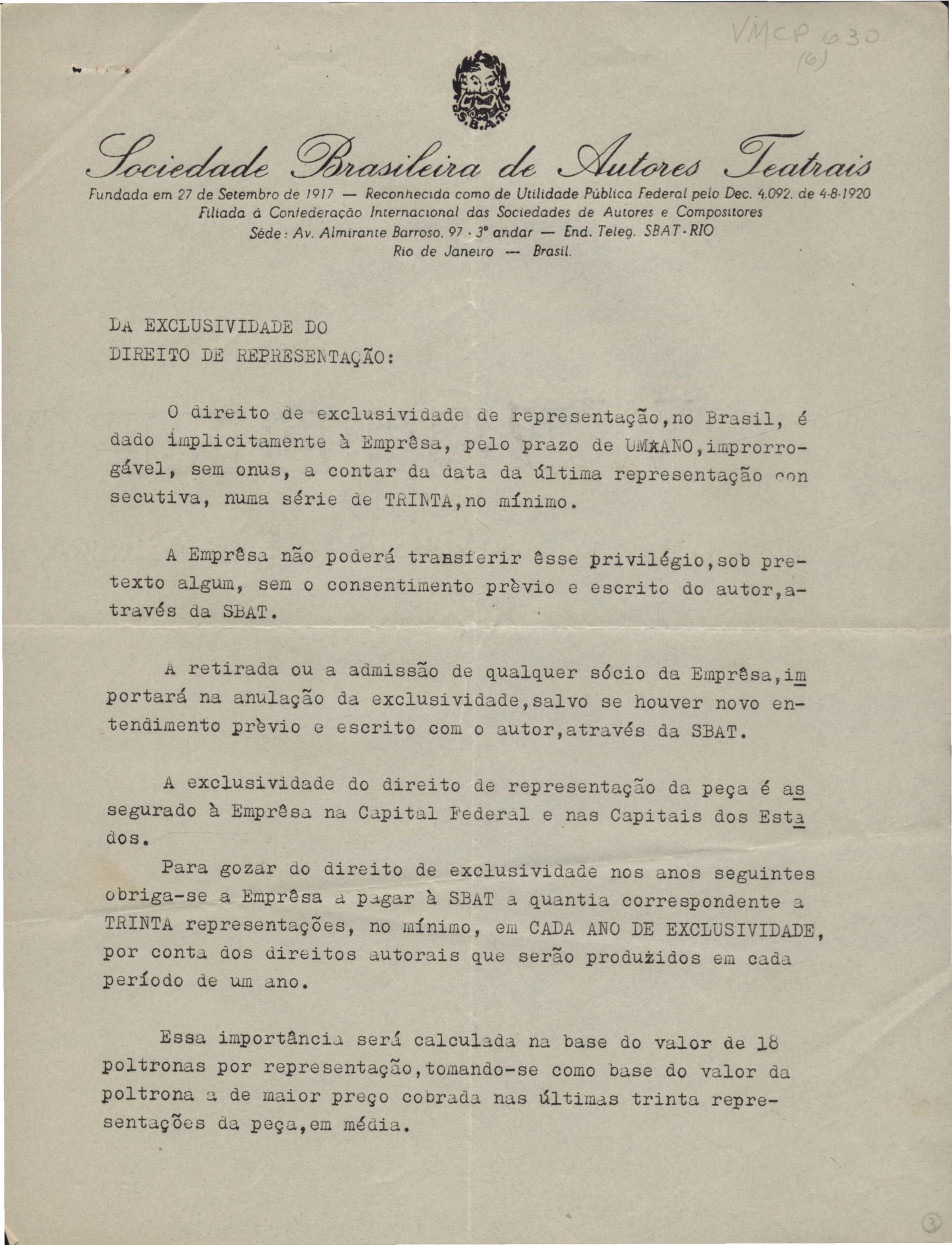 AUTOR: SOCIEDADE BRASILEIRA DE AUTORES TEATRAIS (SBAT)