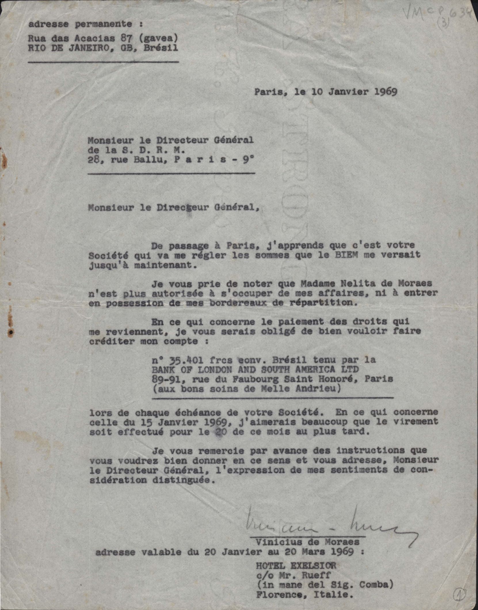 Carta à Société Pour l'Administration du Droit de Reproduction des Auteurs, Compositeurs et Éditeurs (SDRM)
