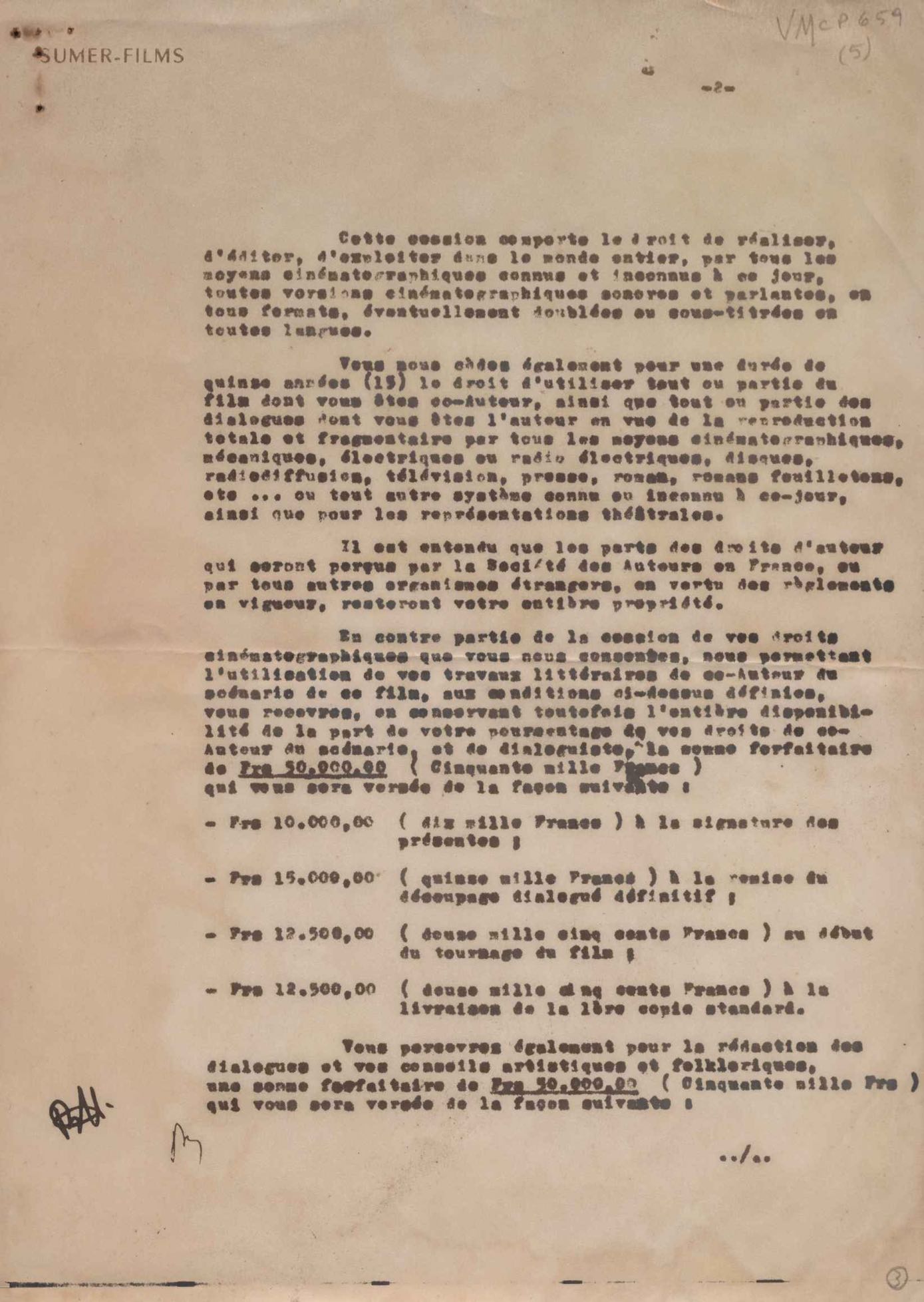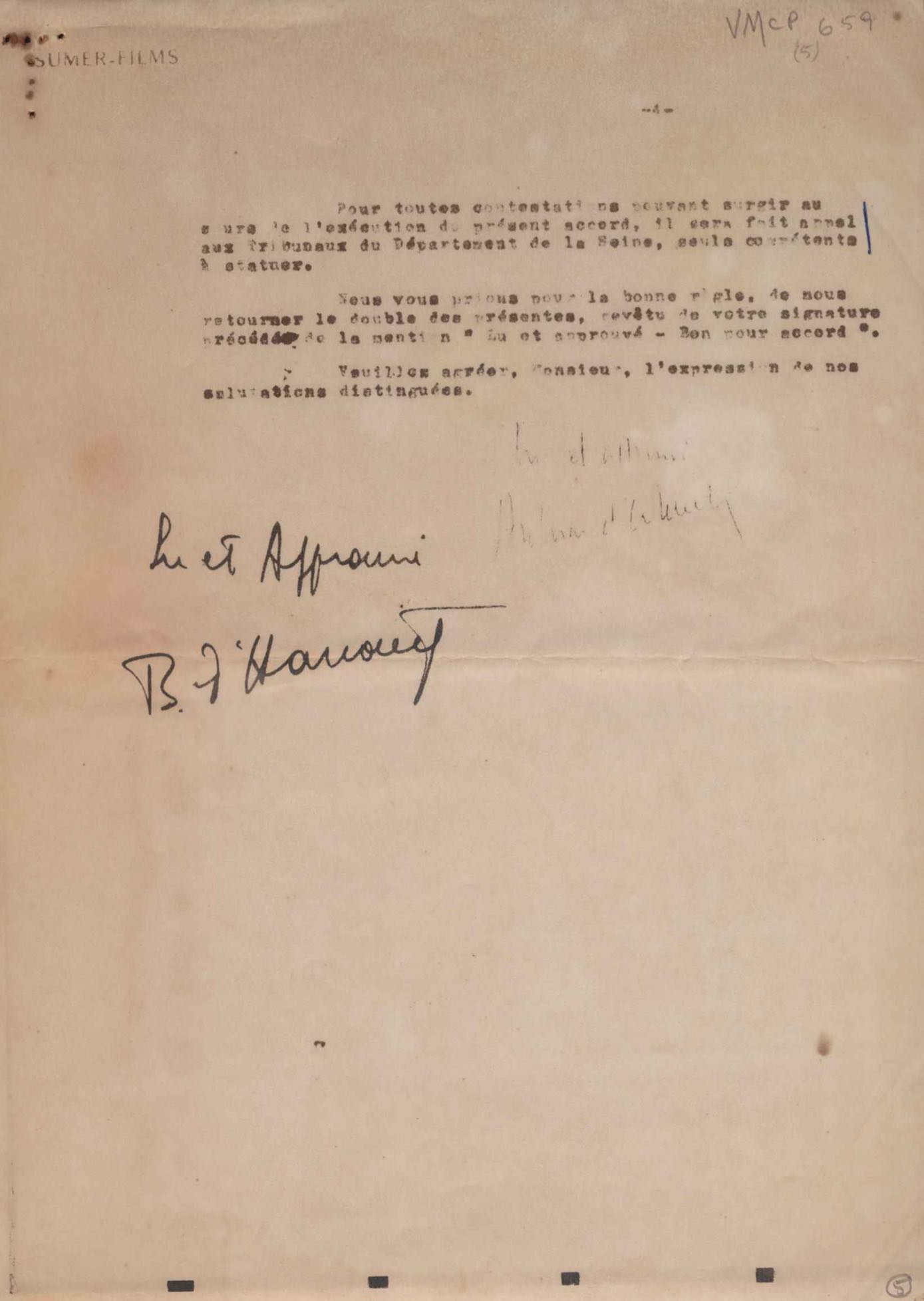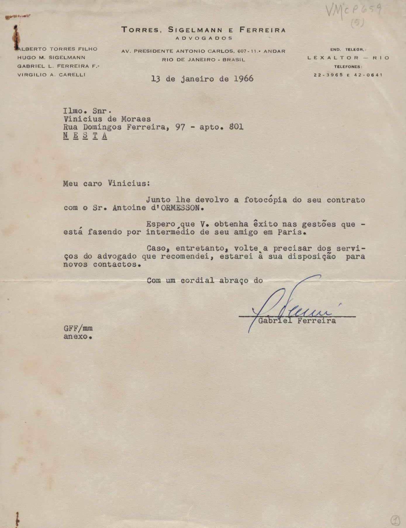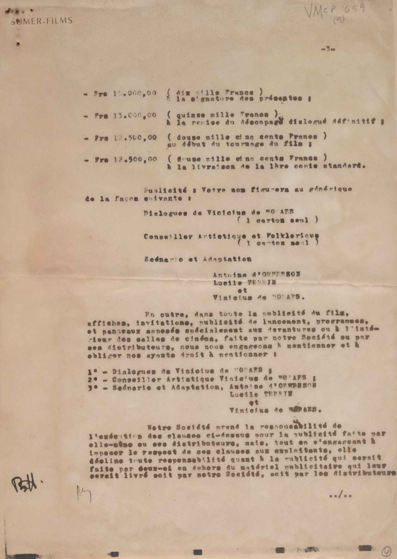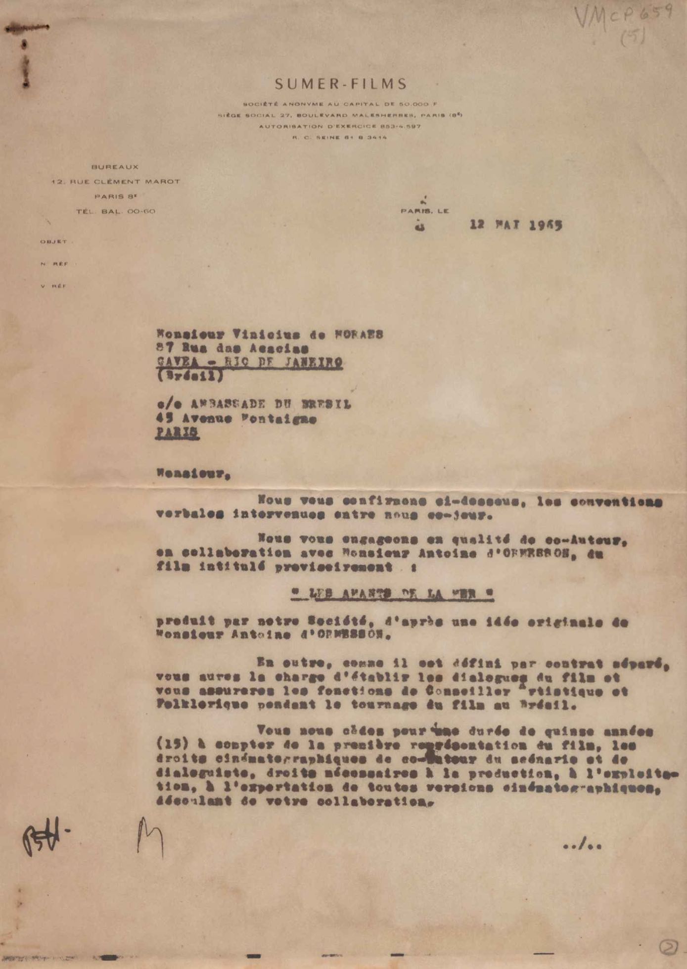 Remessa de fotocópia do contrato de VM com Antoine d'Ormesson.
