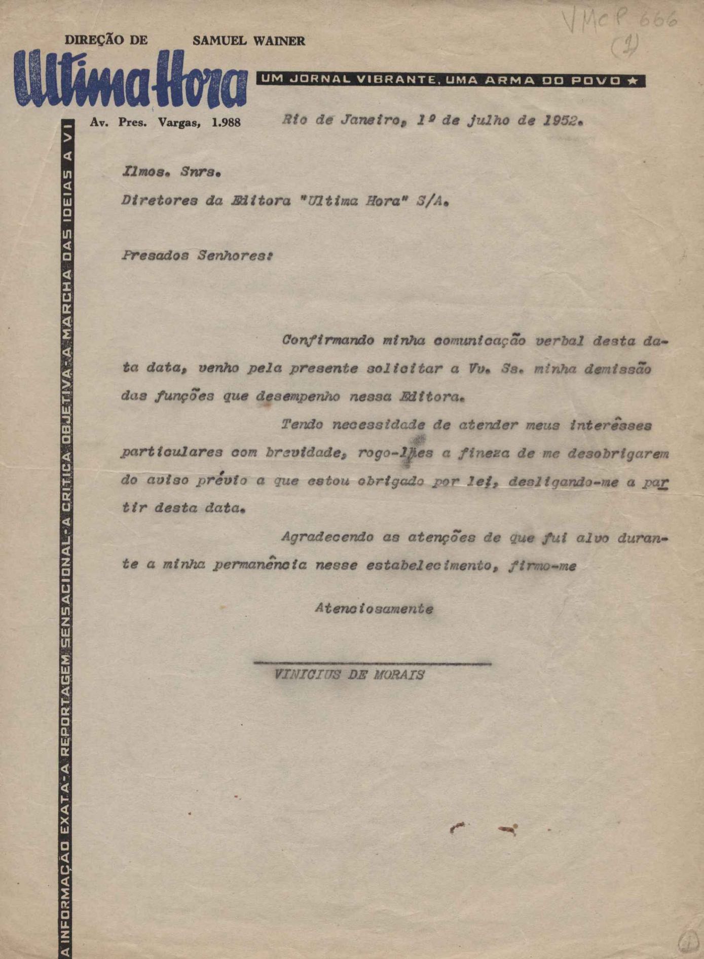 Pedido de demissão do jornal.