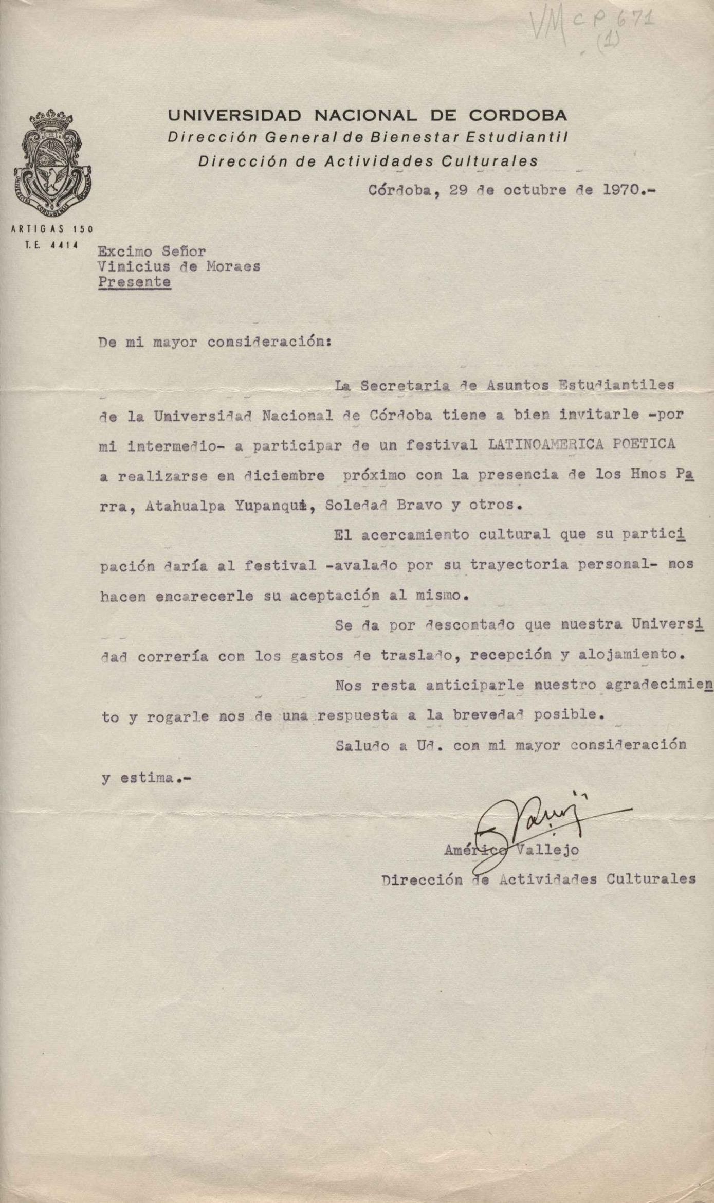 Convite para VM participar do Festival Latino-Americano de Poesia.