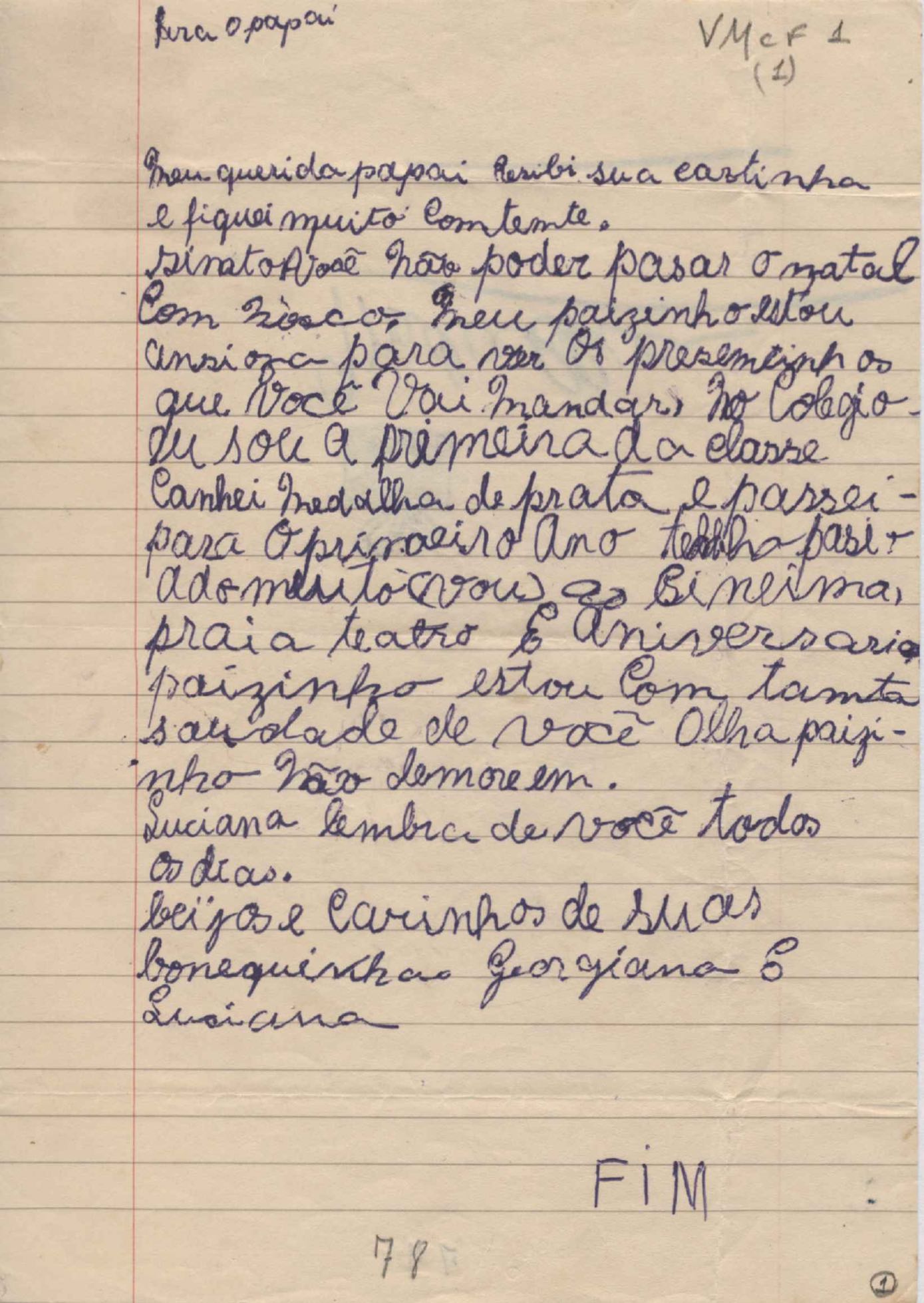 Lamento por VM não poder passar o Natal com as filhas. Notícias de sua vida escolar.