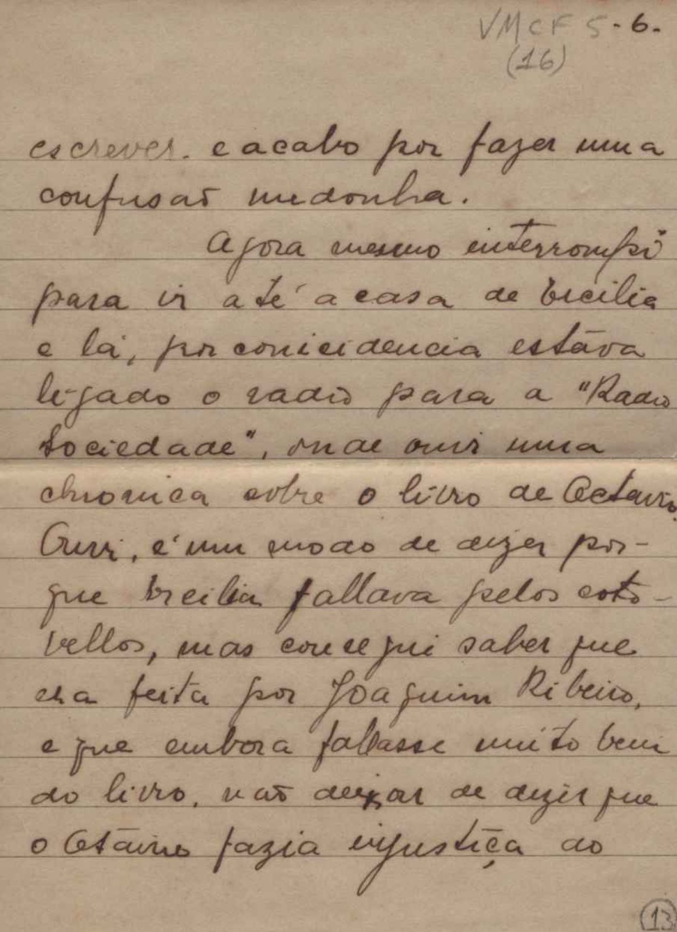 Notícias de Antônia Naves Vieira Machado. Menção à crônica de Joaquim Ribeiro sobre livro de Otávio de Faria.