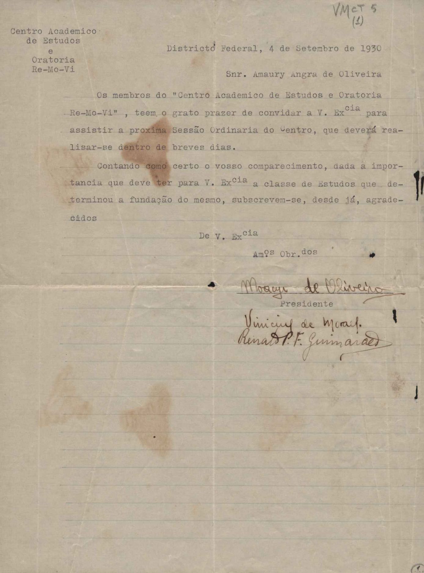 A carta é assinada por Renato P. F. Guimarães, Moacir de Oliveira e VM.