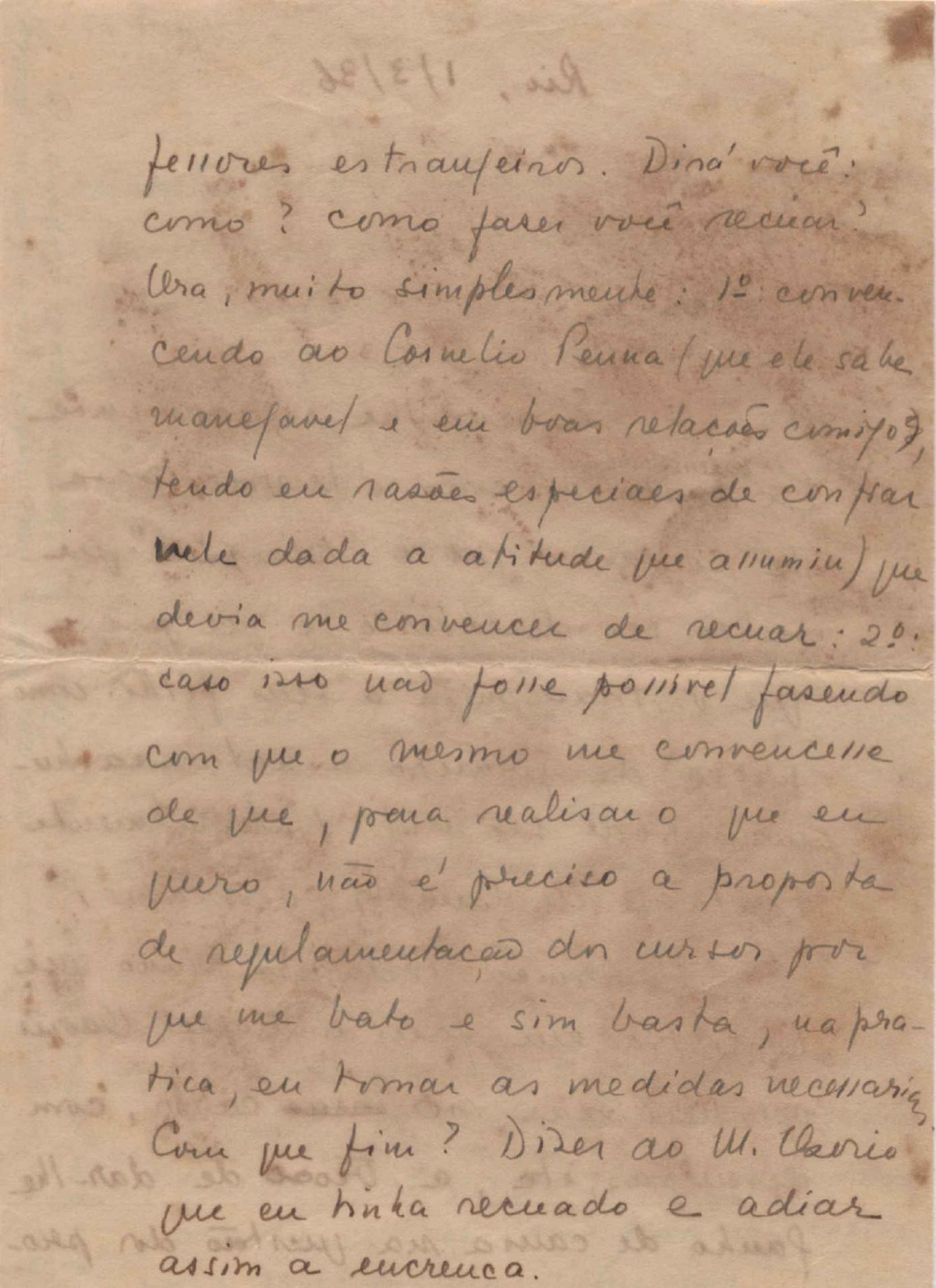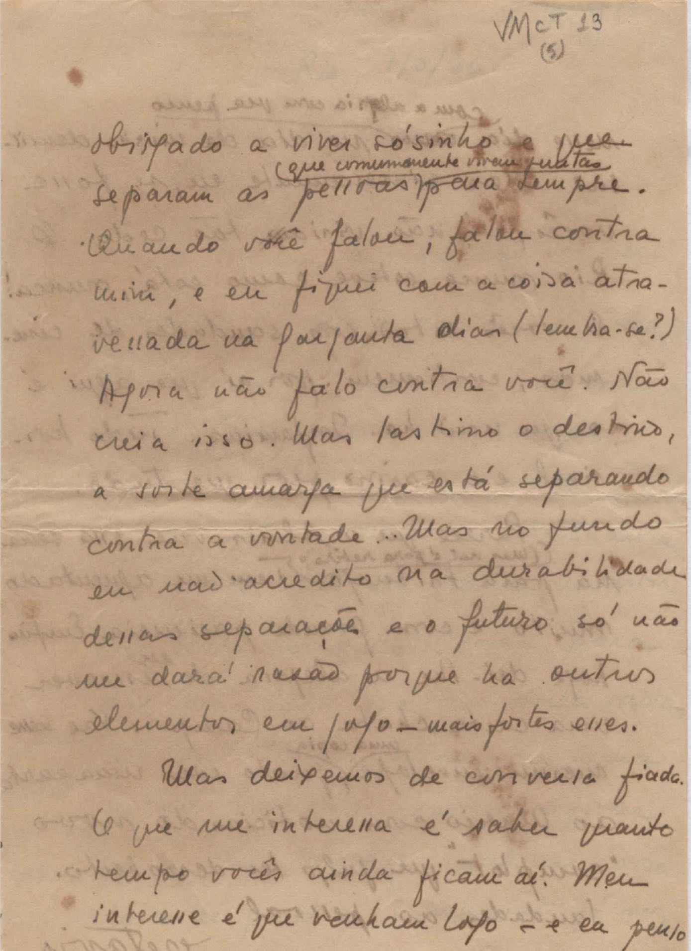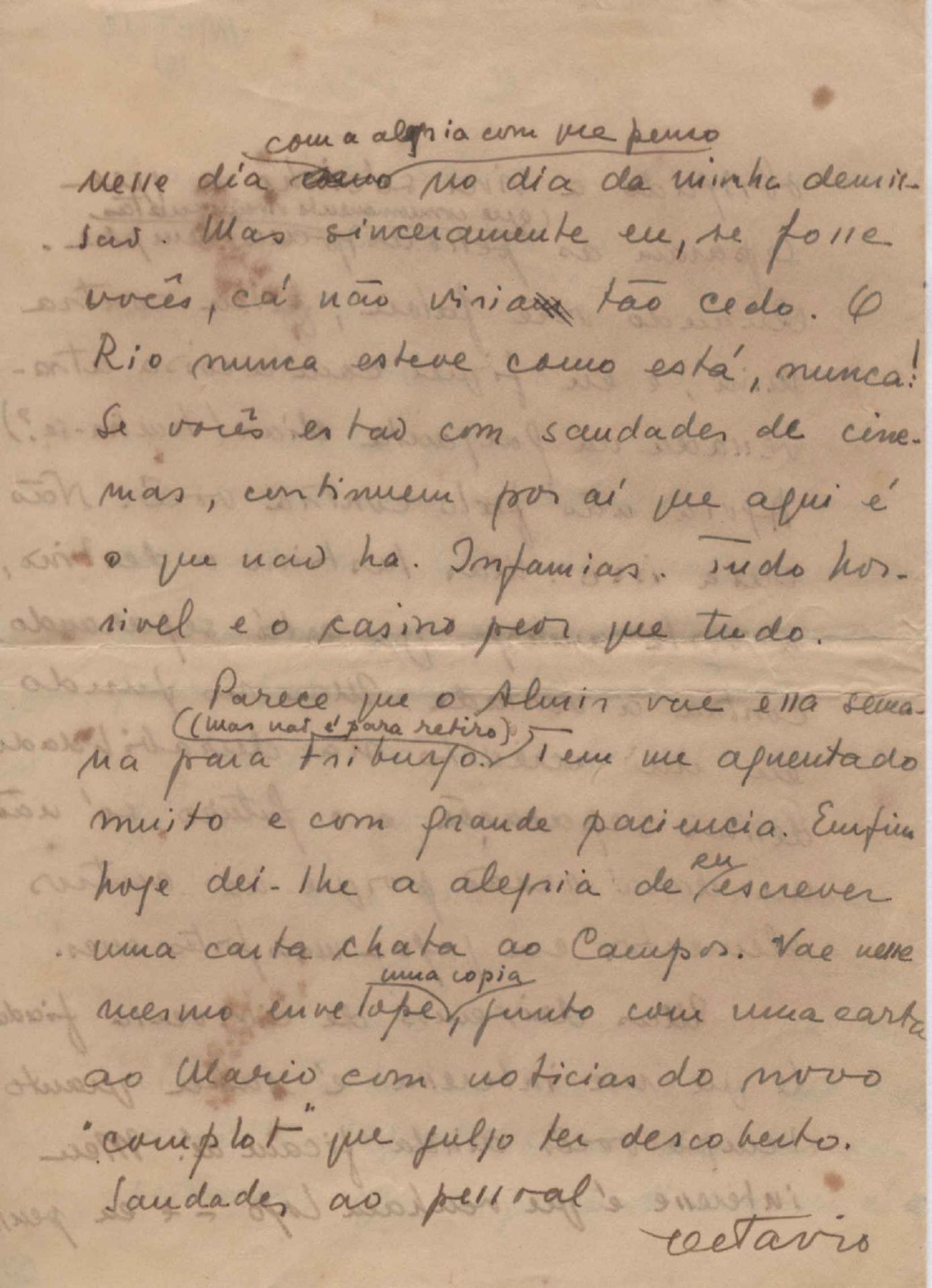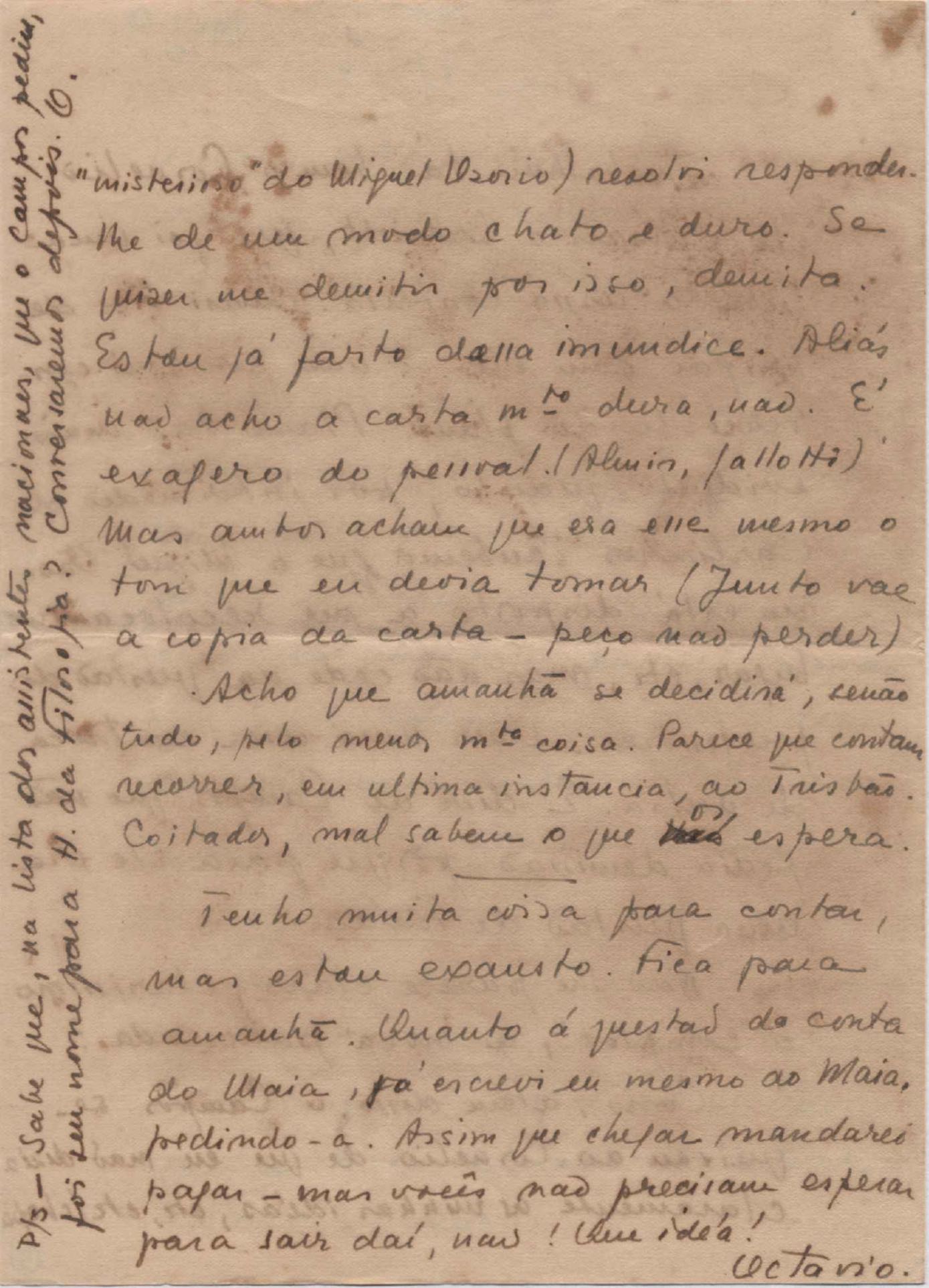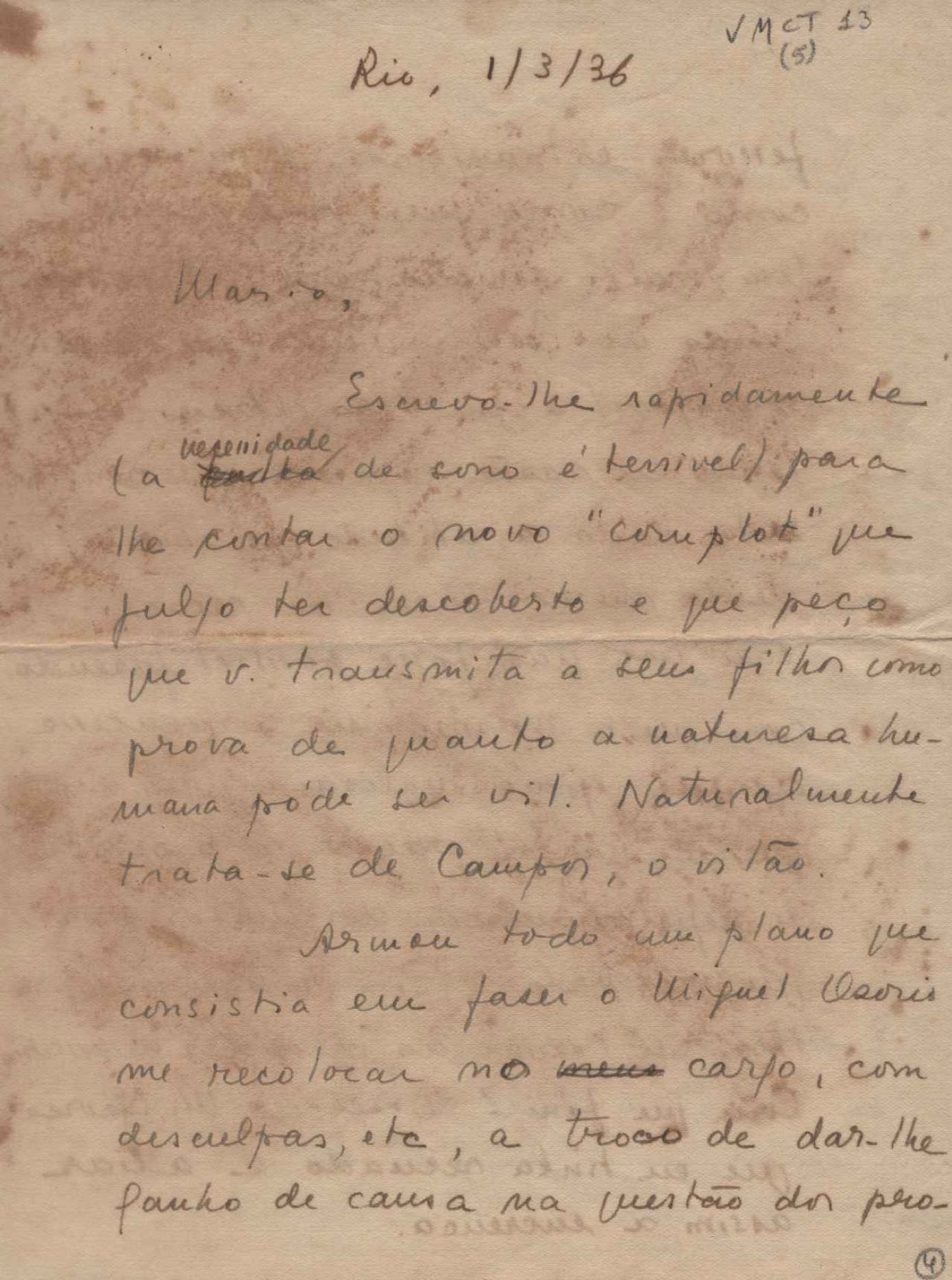 Comentário sobre emprego para José Artur. Considerações de ordem pessoal. Anexo: Carta a Mário [?].