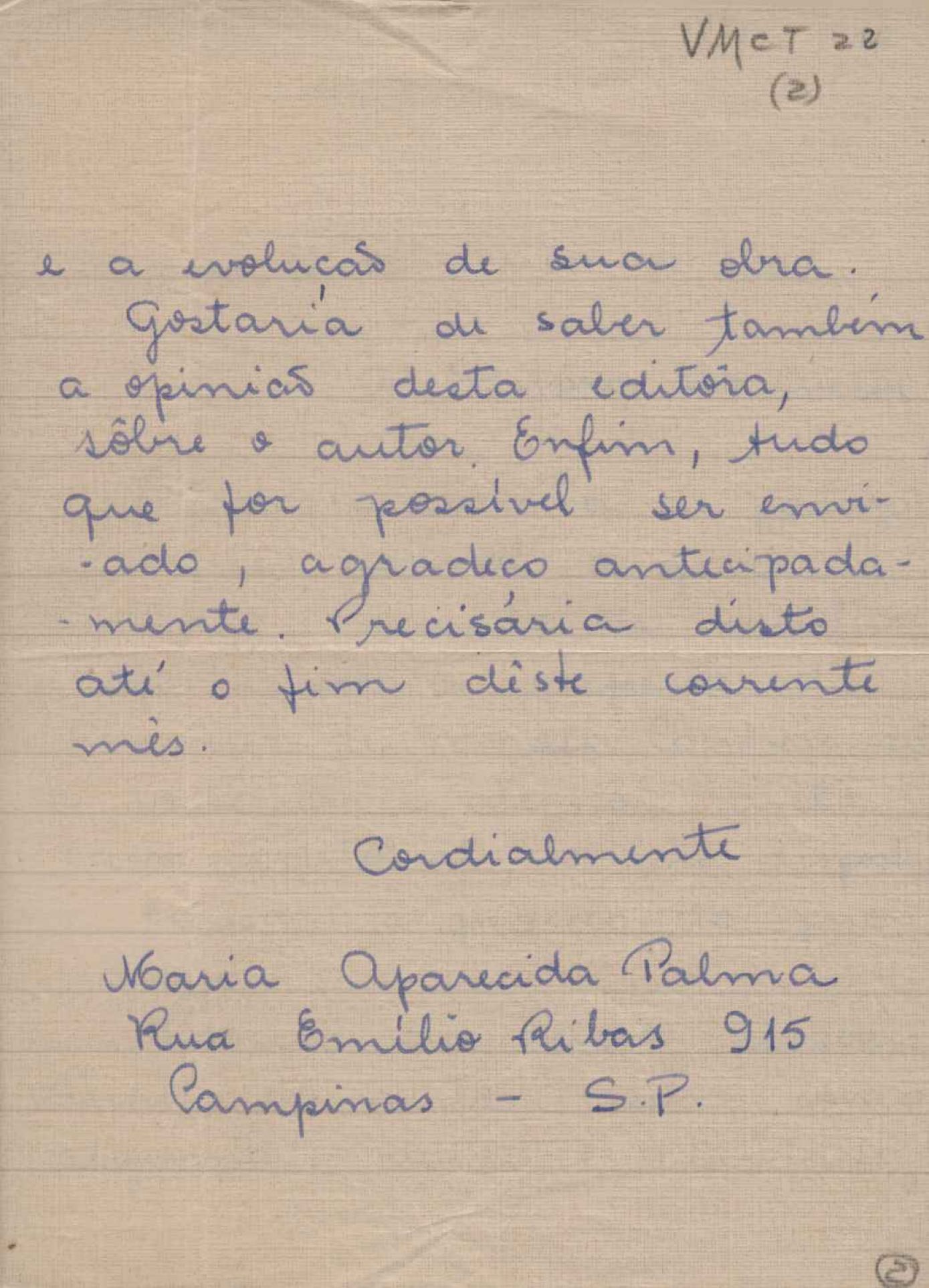 Carta à Editora do Autor