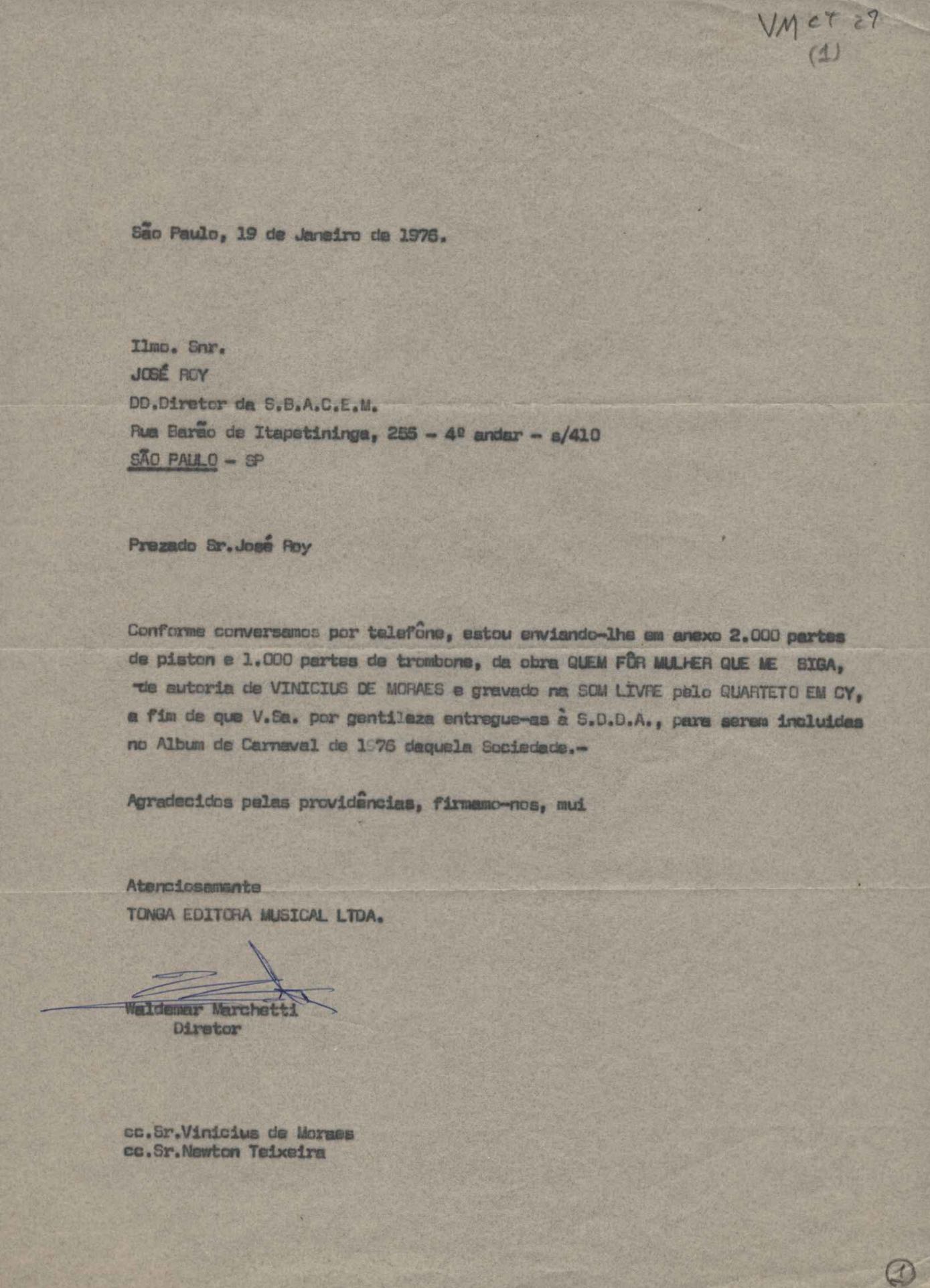 Remessa de gravação de "Quem for mulher me siga", de VM.
