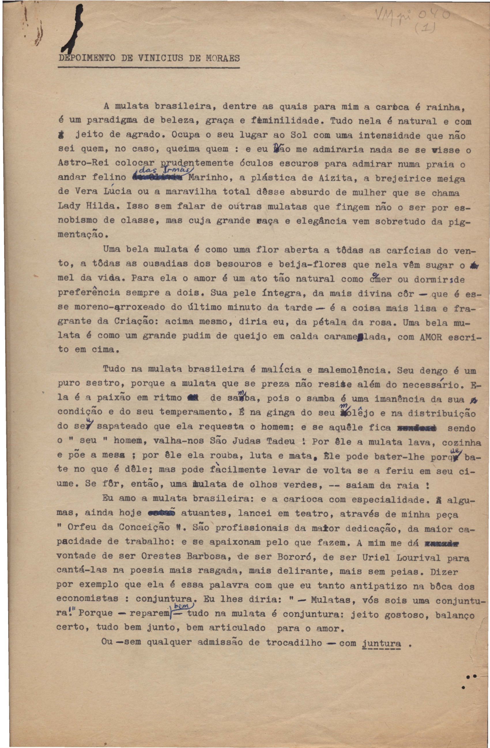"Depoimento de Vinicius de Moraes"