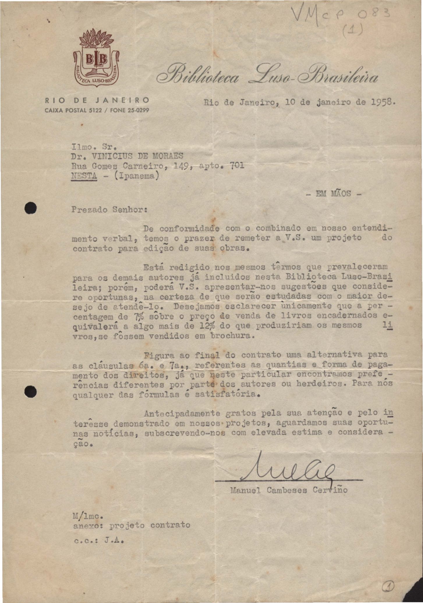 Remessa de projeto para contrato de edição.