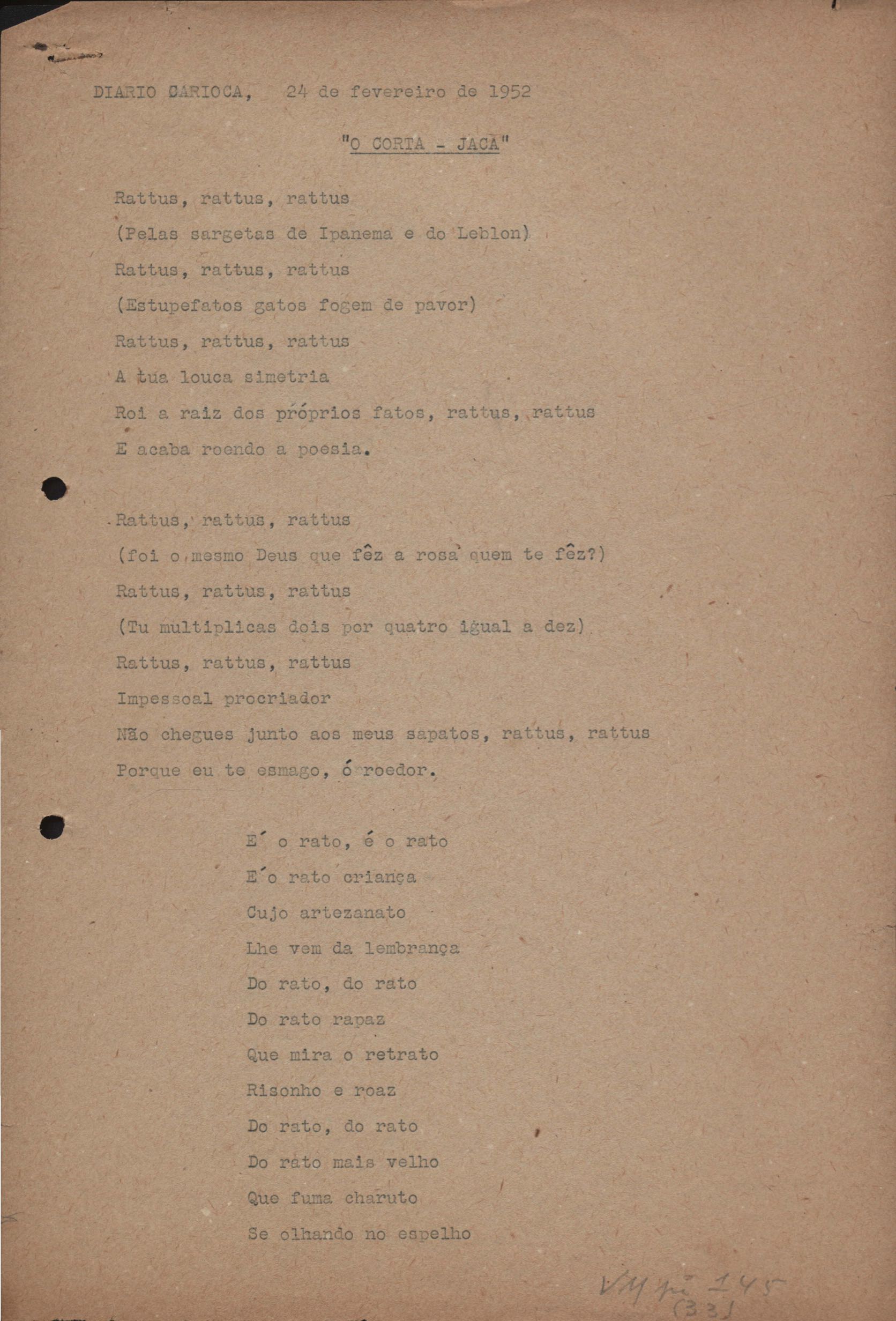 Publicado no periódico O Diário Carioca.