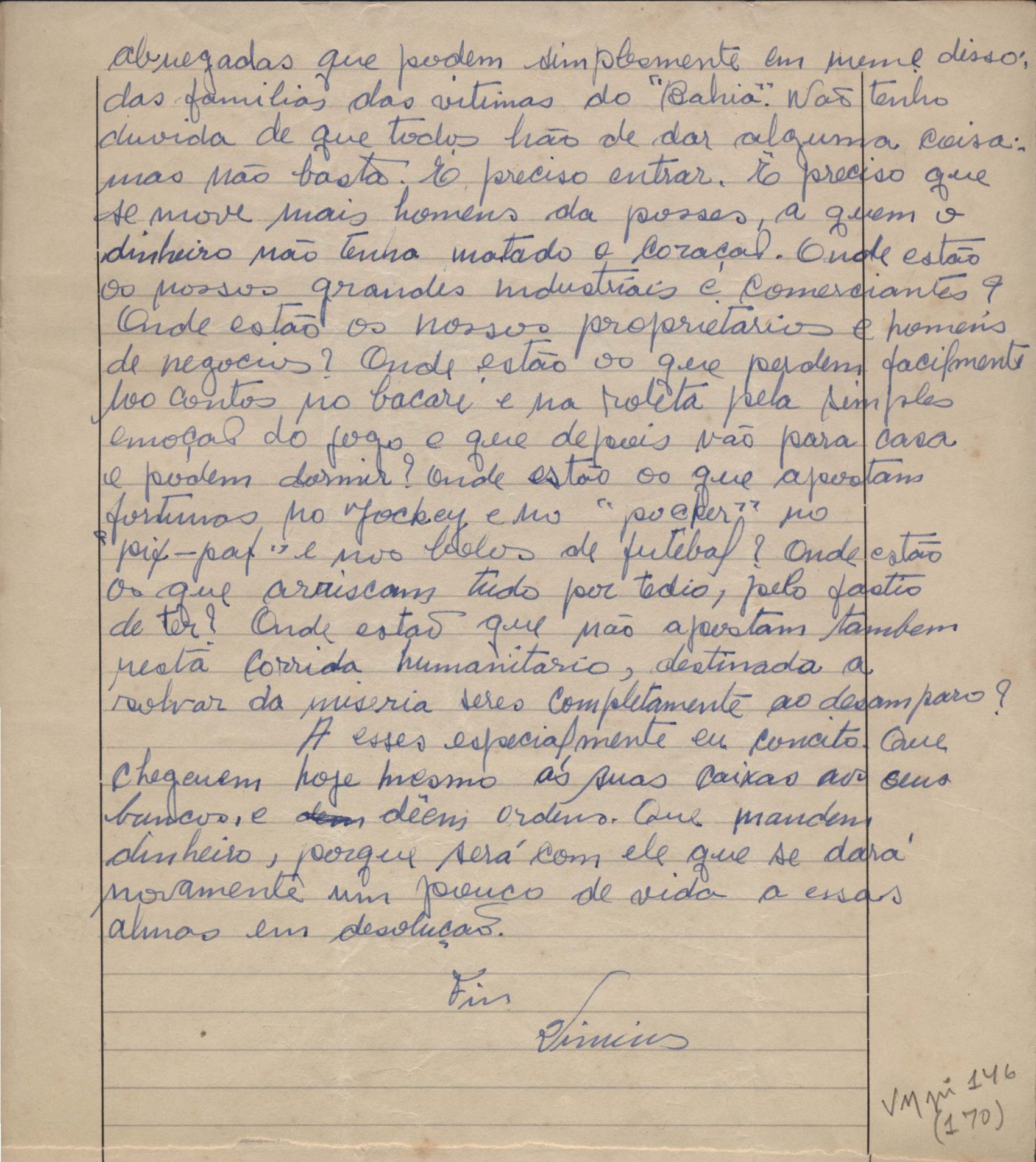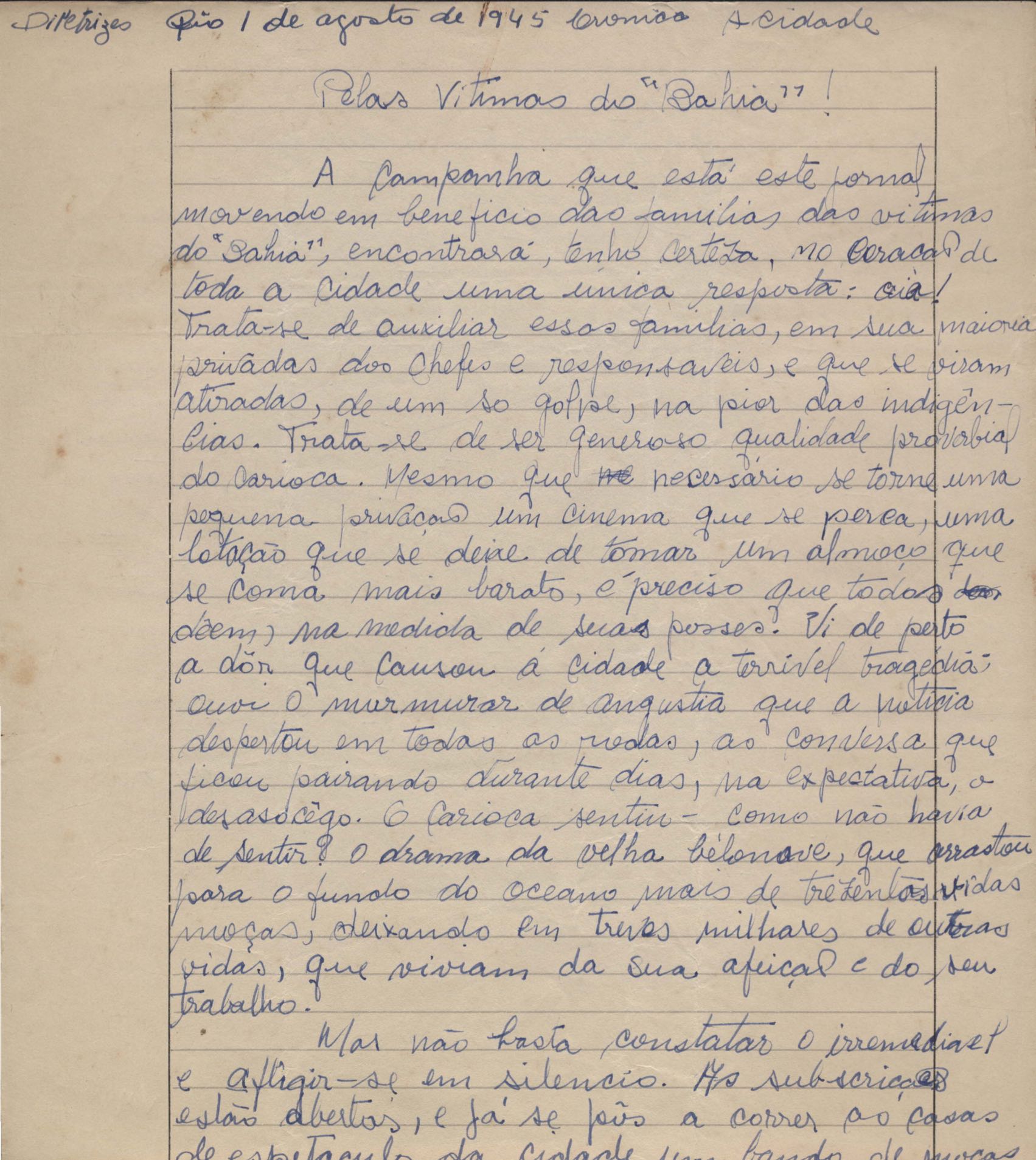 "Pelas vítimas do 'Bahia'"