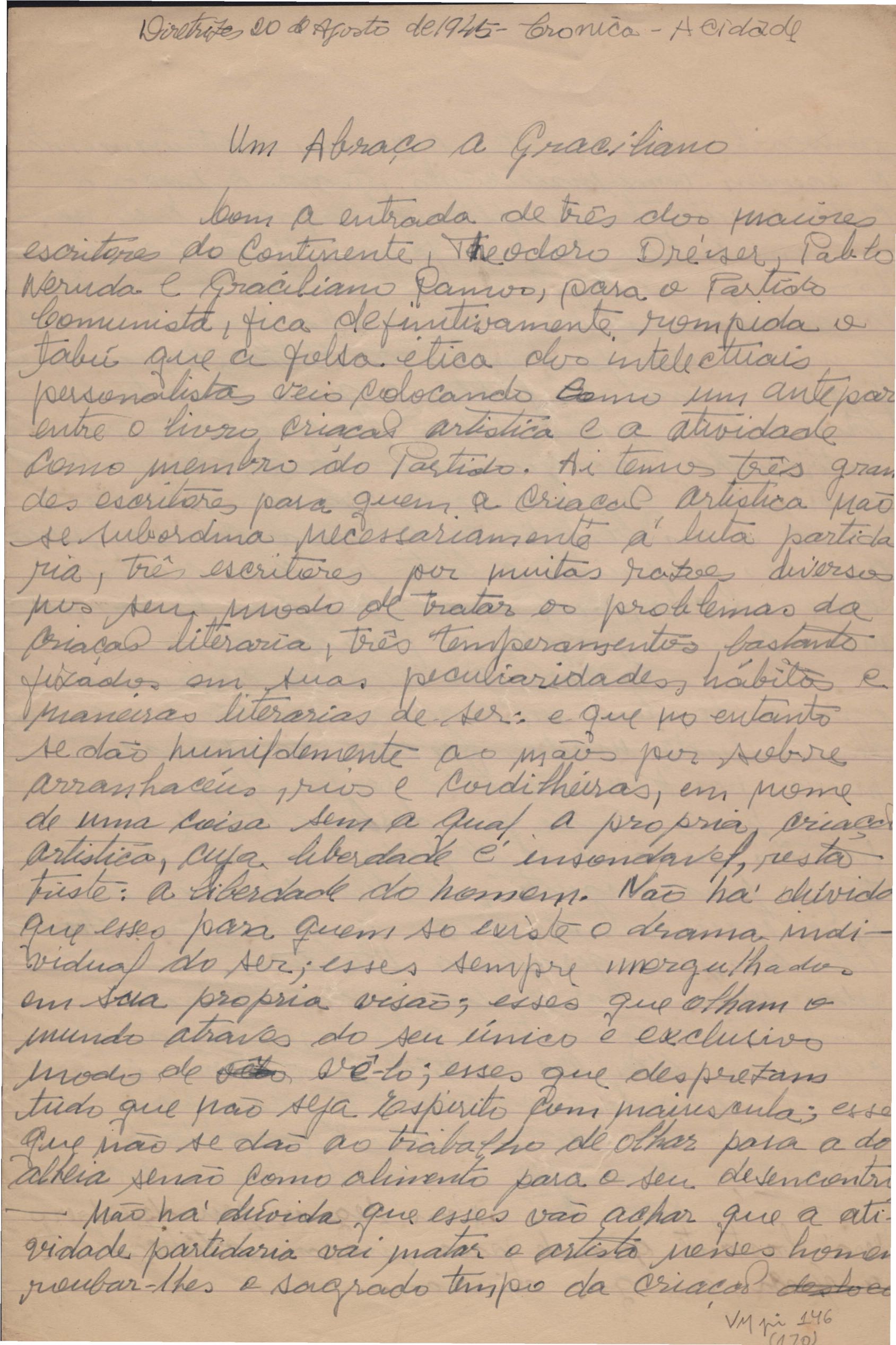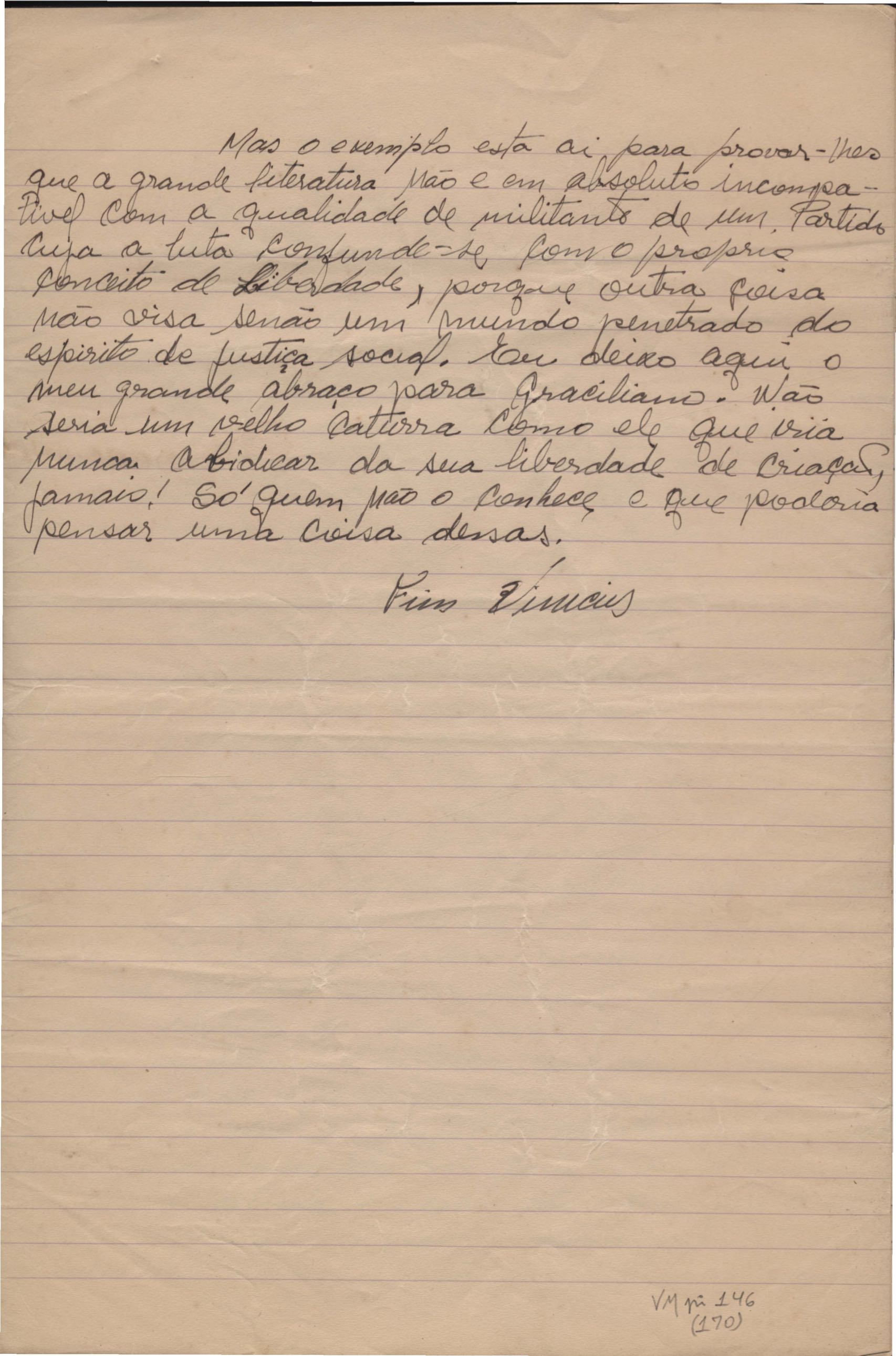 "Um abraço a Graciliano"