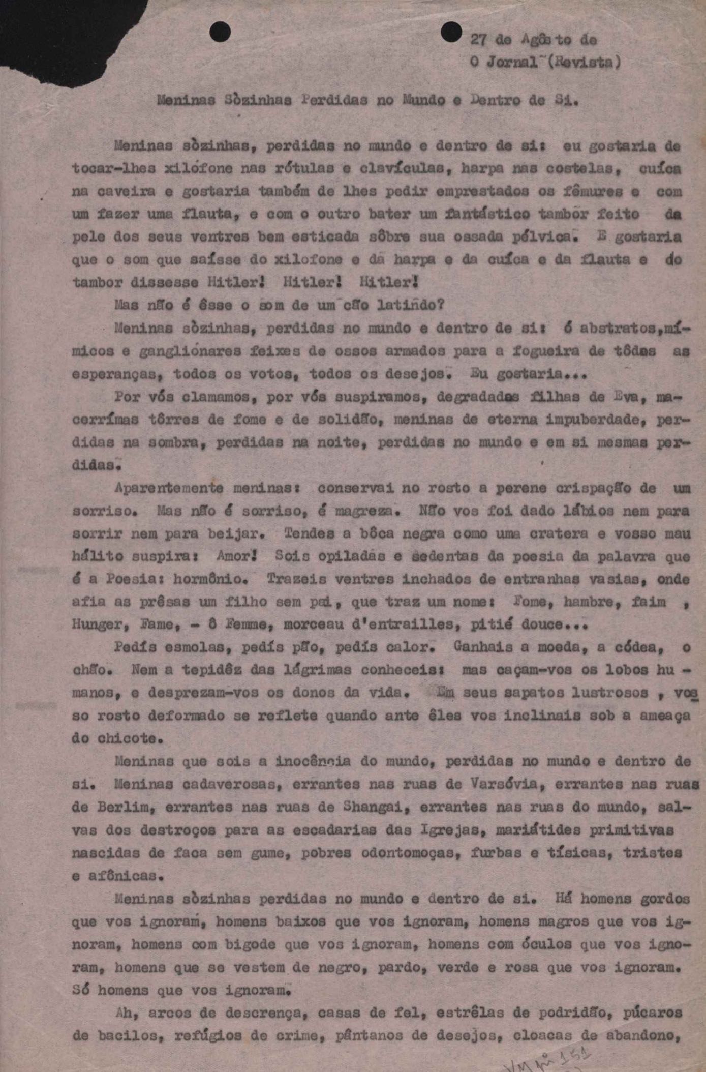 "Meninas sozinhas perdidas no mundo e dentro de si"
