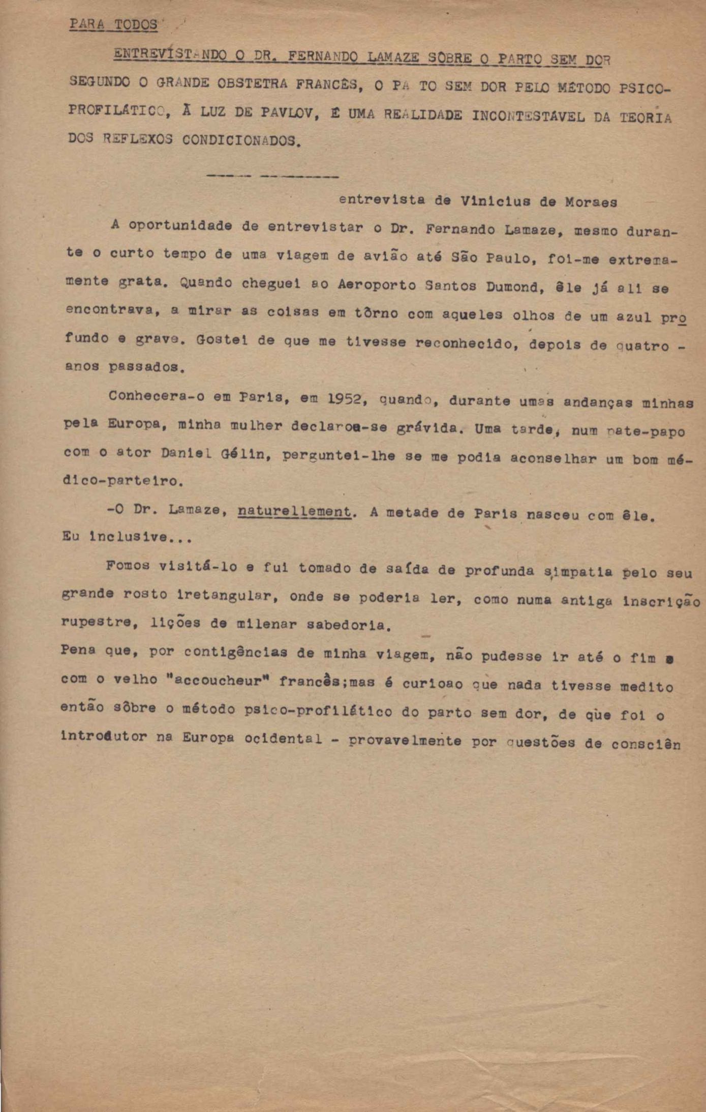 "Entrevistando o Dr. Fernand Lamaze sobre o parto sem dor"