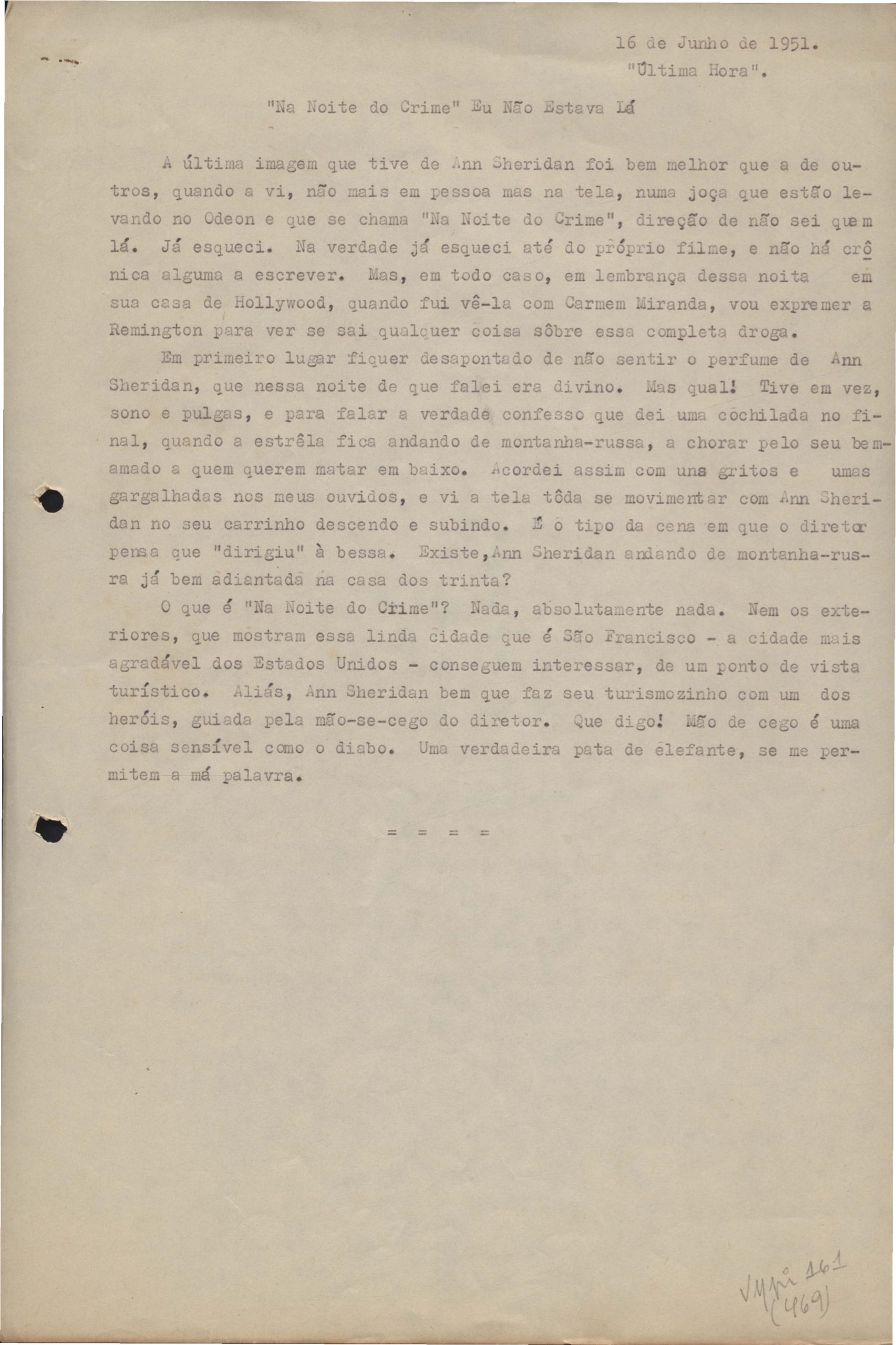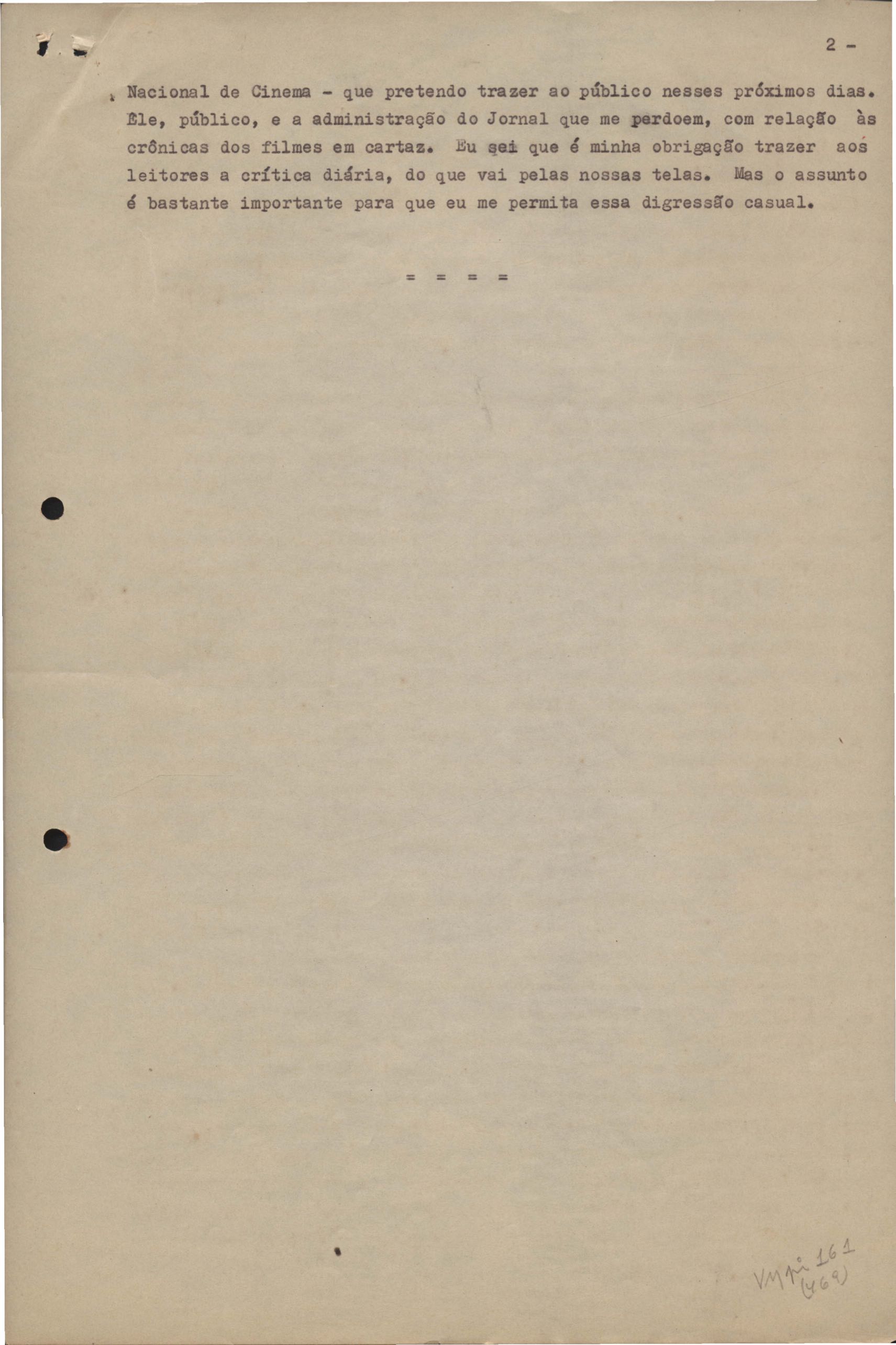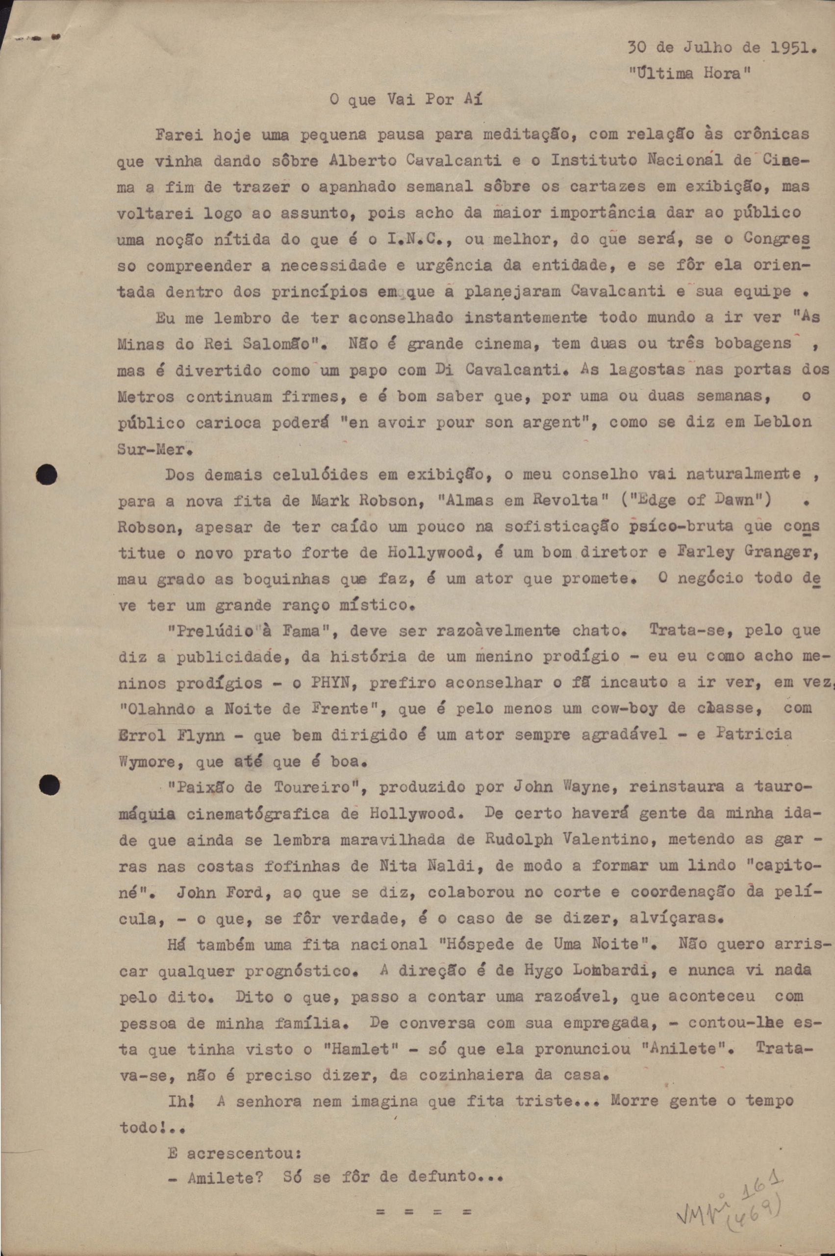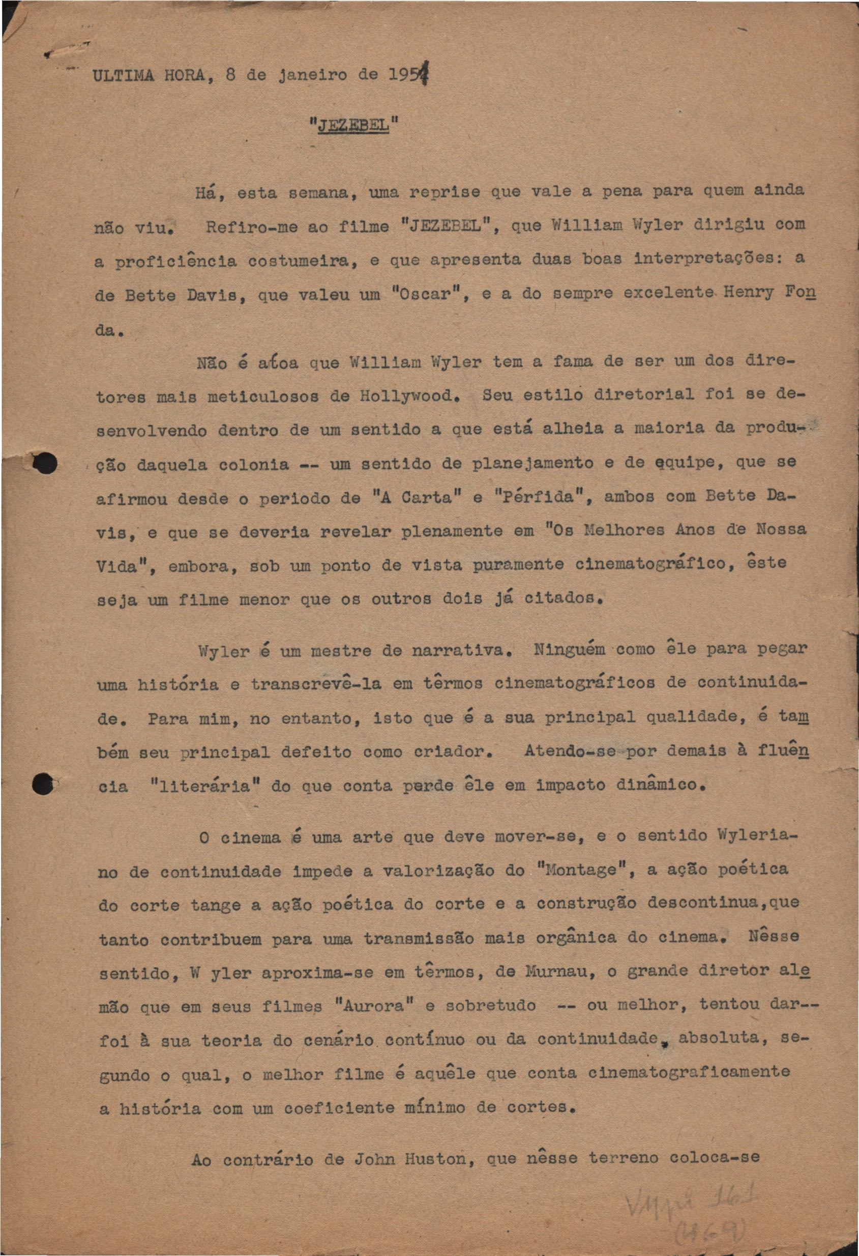 "Punta del Este", "Jezebel", "Tela em branco", "Sansão Mature e Dalila Lamarr", "O direito de matar", "Deu terra?", "Na noite do crime eu não estava lá", "Nada de novo no front (I)", "Nada de novo no front (II)", "A vingança da porta", "Nem ninfa, nem nua", "Rumores nos estúdios", "O ódio é cego", "Smorgasbord", "Coisas que incomodam", "O cavaleiro de Sherwood", "A semana cinematográfica", "A terra é sempre terra", "A terra é sempre terra (II)", "O clamor humano", "Nasci para bailar", "Experiência em Macabro", "Prognósticos da semana", "A coisa marcha", "Cartas venenosas", "Esta semana", "Núpcias reais", "Correio do inferno", "Gilberto Souto", "Quando a noite desce", "Vai-se outra, mais outra e enfim dezenas", "A Vênus do ano", "Alberto Cavalcanti e o I.N.C. (I)", "Alberto Cavalcanti e o I.N.C. (II)", "O que vai por aí" e "Alberto Cavalcanti e o I.N.C. (III)"
