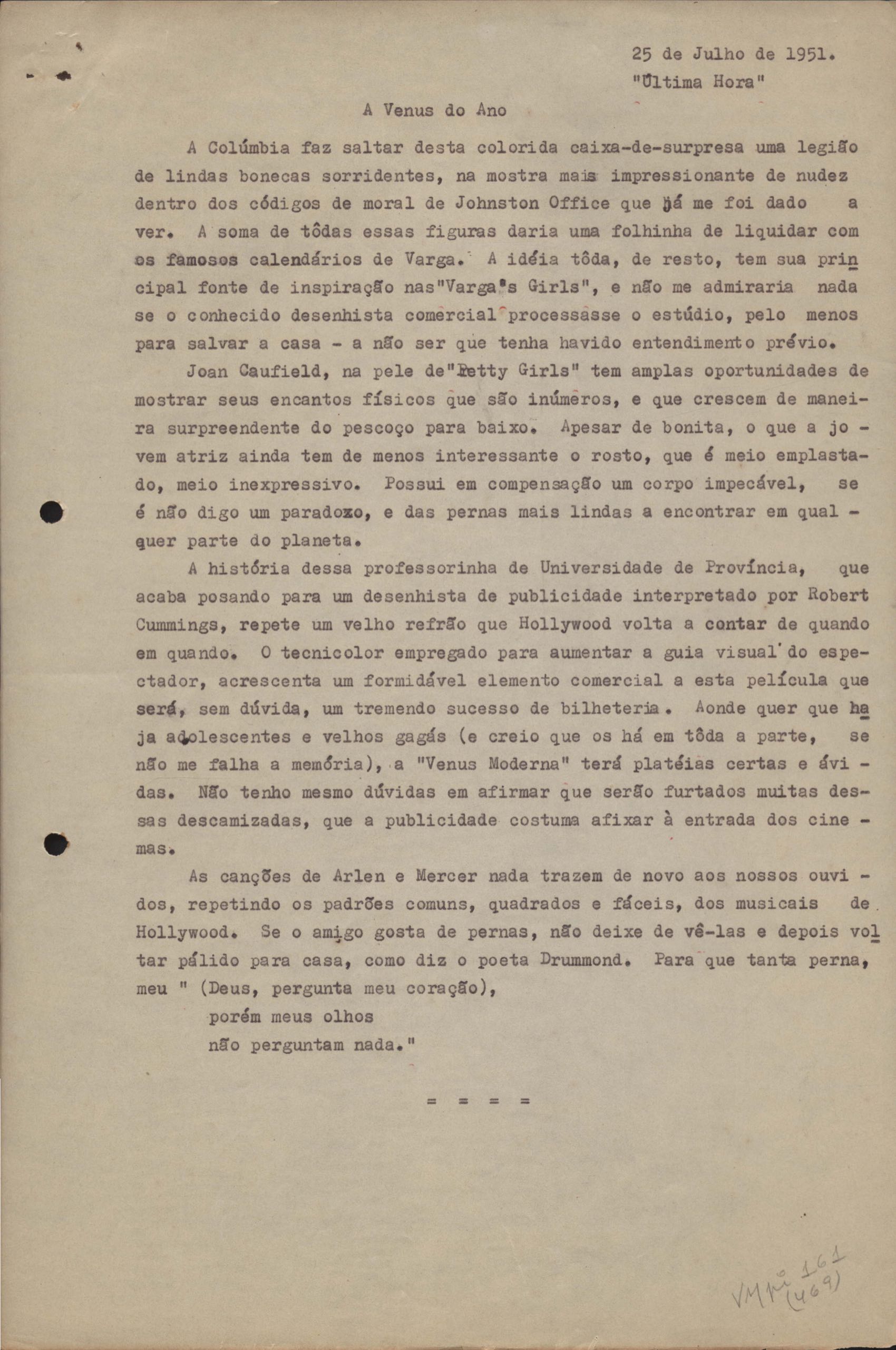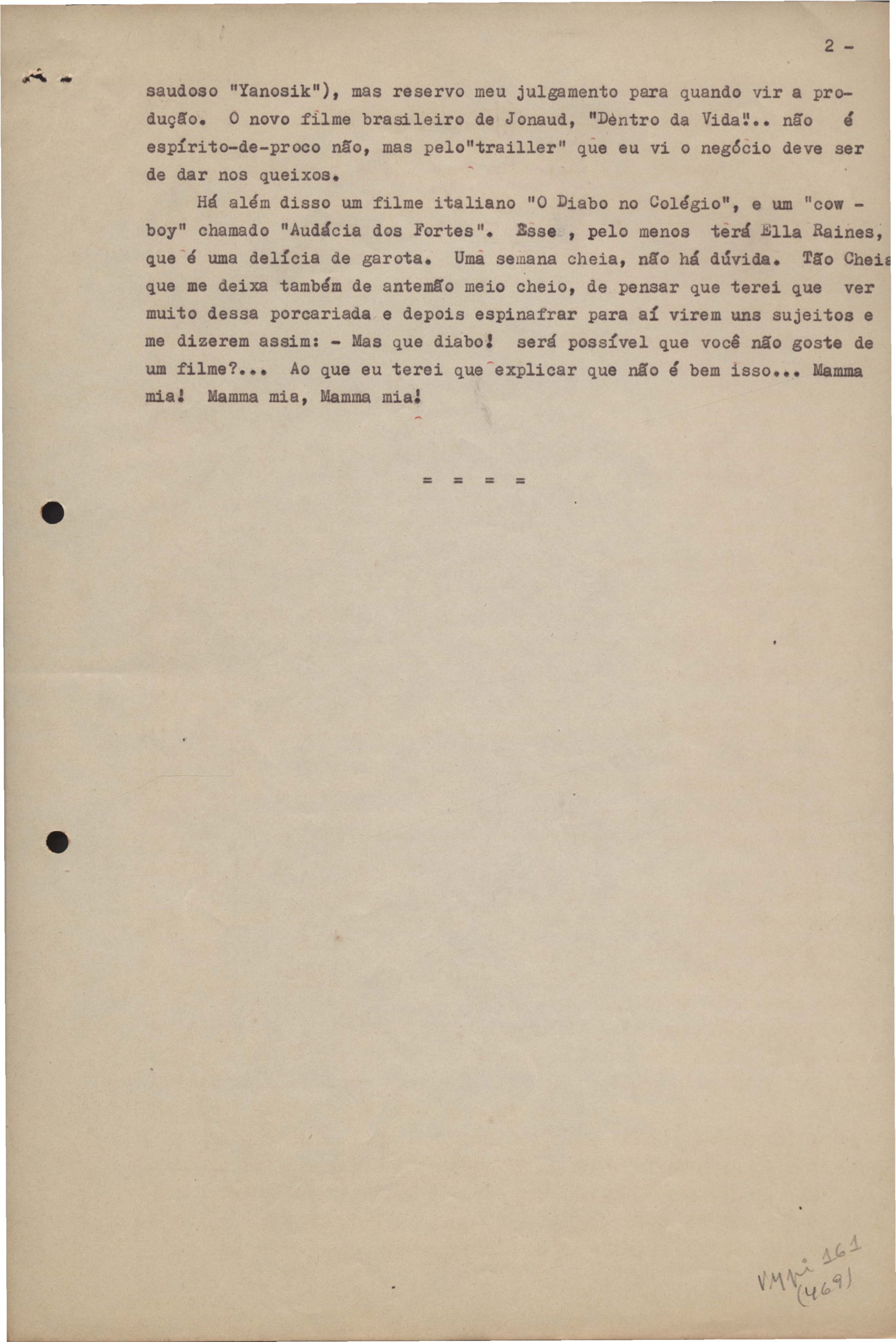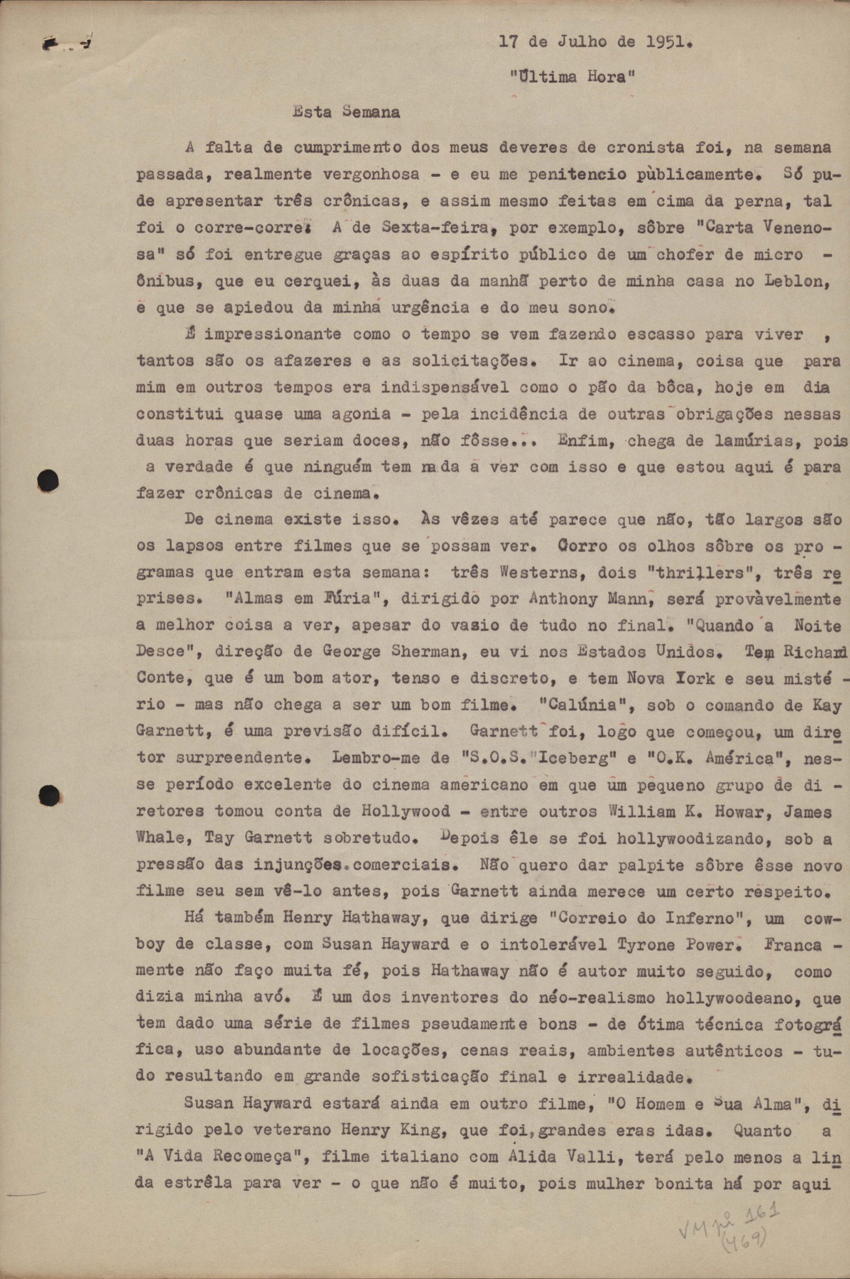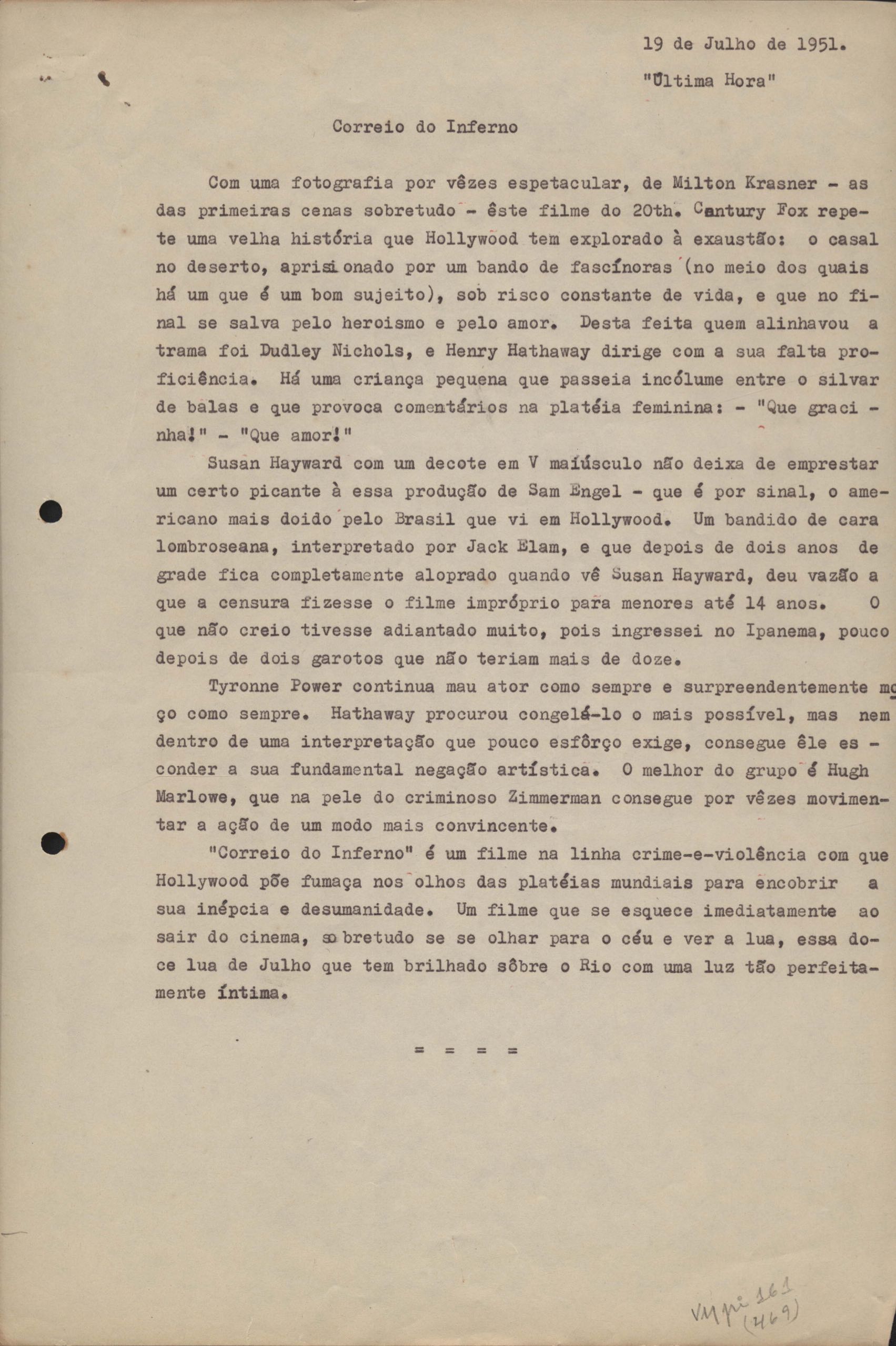 "Punta del Este", "Jezebel", "Tela em branco", "Sansão Mature e Dalila Lamarr", "O direito de matar", "Deu terra?", "Na noite do crime eu não estava lá", "Nada de novo no front (I)", "Nada de novo no front (II)", "A vingança da porta", "Nem ninfa, nem nua", "Rumores nos estúdios", "O ódio é cego", "Smorgasbord", "Coisas que incomodam", "O cavaleiro de Sherwood", "A semana cinematográfica", "A terra é sempre terra", "A terra é sempre terra (II)", "O clamor humano", "Nasci para bailar", "Experiência em Macabro", "Prognósticos da semana", "A coisa marcha", "Cartas venenosas", "Esta semana", "Núpcias reais", "Correio do inferno", "Gilberto Souto", "Quando a noite desce", "Vai-se outra, mais outra e enfim dezenas", "A Vênus do ano", "Alberto Cavalcanti e o I.N.C. (I)", "Alberto Cavalcanti e o I.N.C. (II)", "O que vai por aí" e "Alberto Cavalcanti e o I.N.C. (III)"