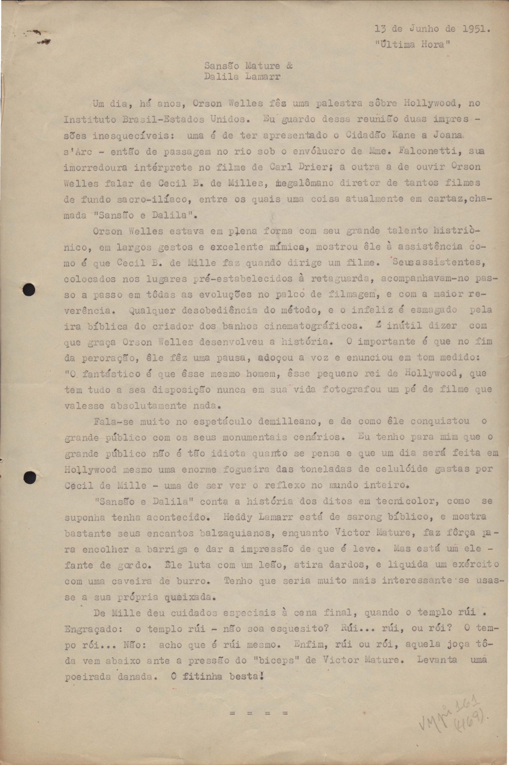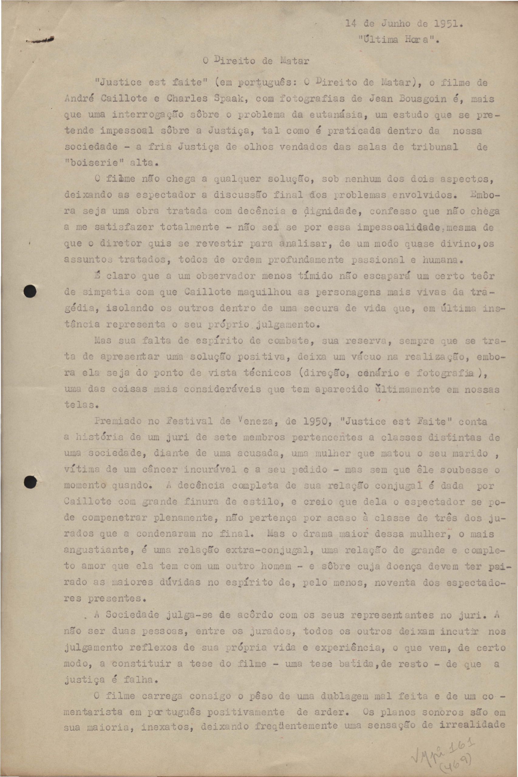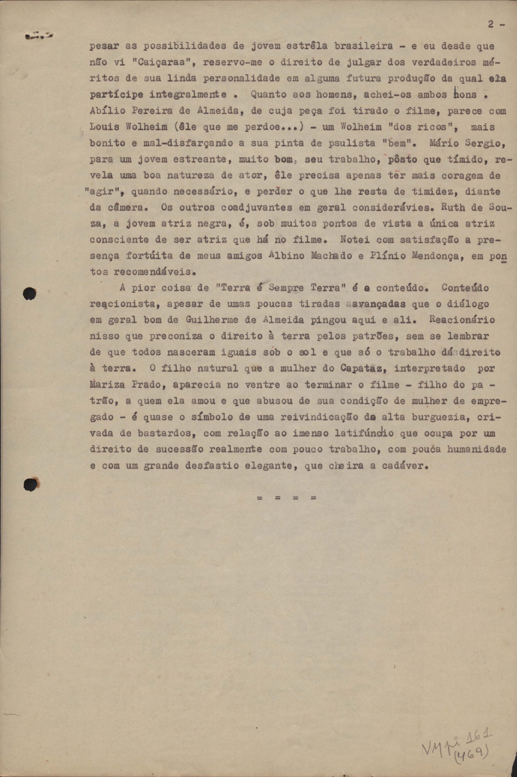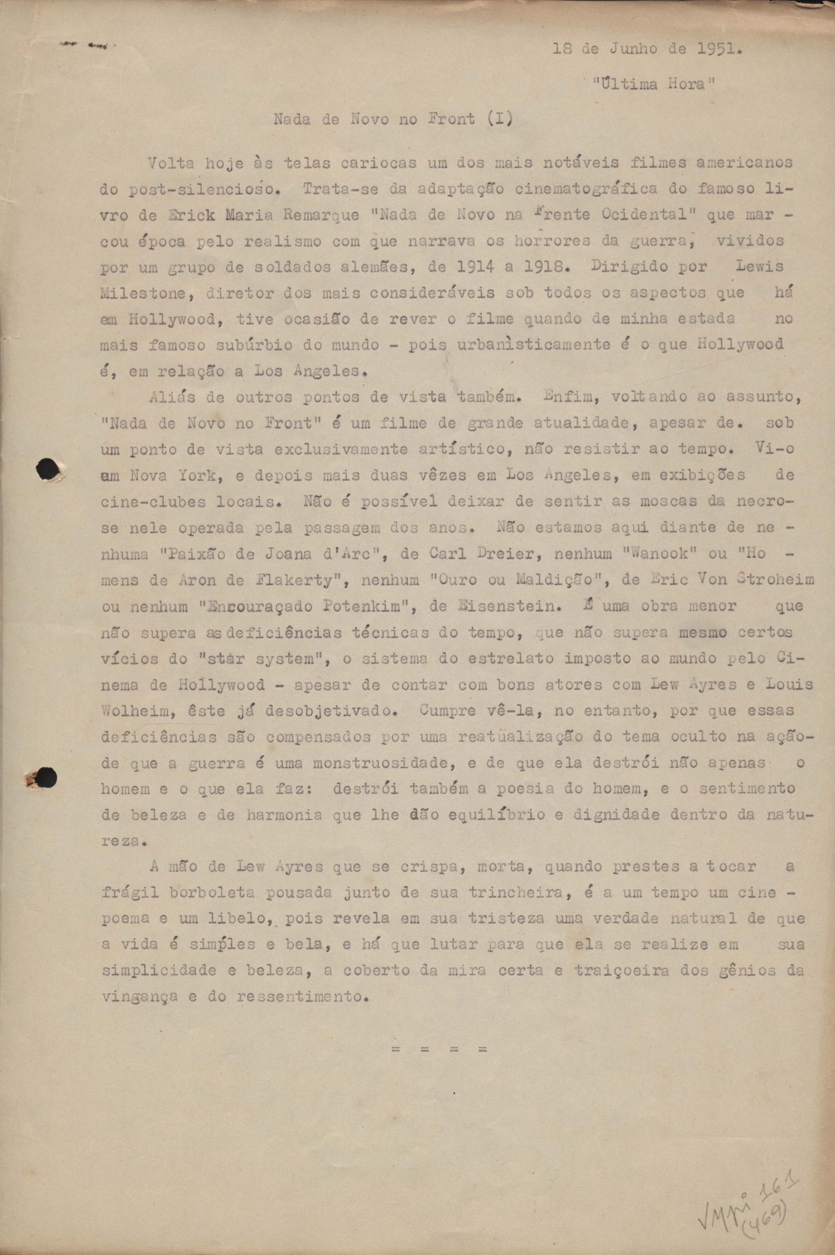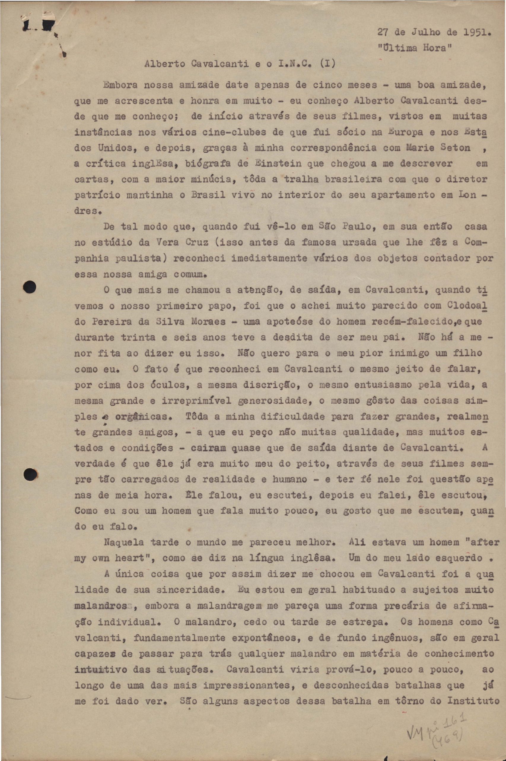 "Punta del Este", "Jezebel", "Tela em branco", "Sansão Mature e Dalila Lamarr", "O direito de matar", "Deu terra?", "Na noite do crime eu não estava lá", "Nada de novo no front (I)", "Nada de novo no front (II)", "A vingança da porta", "Nem ninfa, nem nua", "Rumores nos estúdios", "O ódio é cego", "Smorgasbord", "Coisas que incomodam", "O cavaleiro de Sherwood", "A semana cinematográfica", "A terra é sempre terra", "A terra é sempre terra (II)", "O clamor humano", "Nasci para bailar", "Experiência em Macabro", "Prognósticos da semana", "A coisa marcha", "Cartas venenosas", "Esta semana", "Núpcias reais", "Correio do inferno", "Gilberto Souto", "Quando a noite desce", "Vai-se outra, mais outra e enfim dezenas", "A Vênus do ano", "Alberto Cavalcanti e o I.N.C. (I)", "Alberto Cavalcanti e o I.N.C. (II)", "O que vai por aí" e "Alberto Cavalcanti e o I.N.C. (III)"