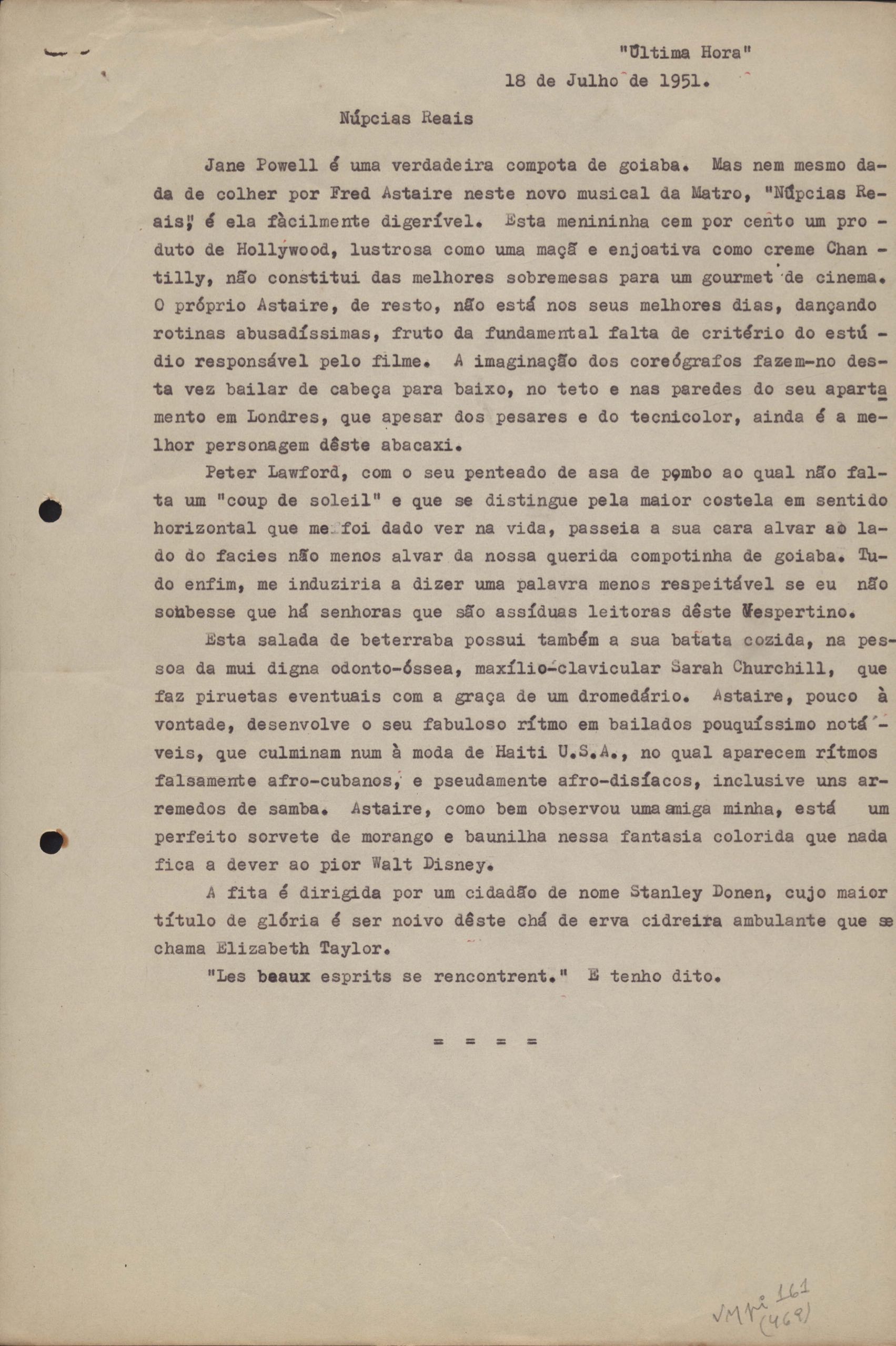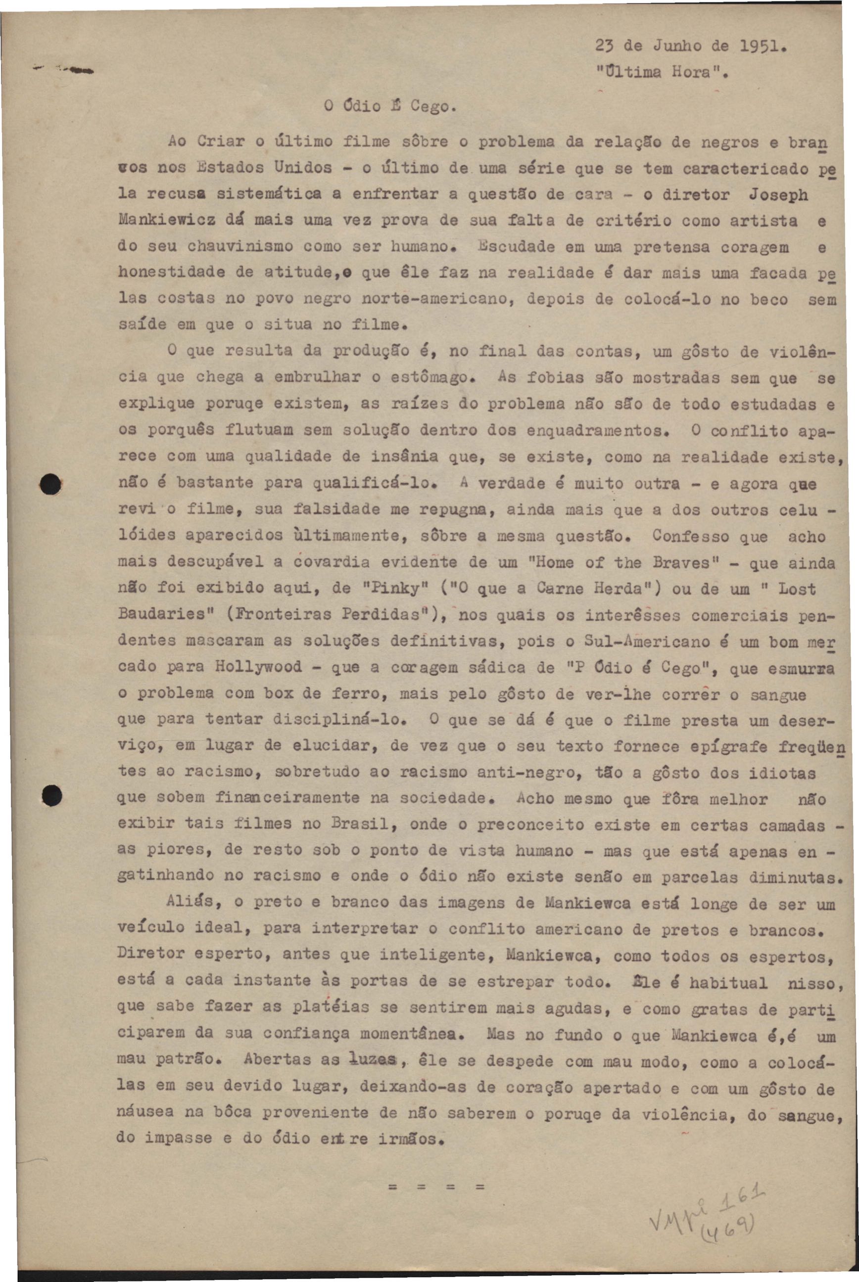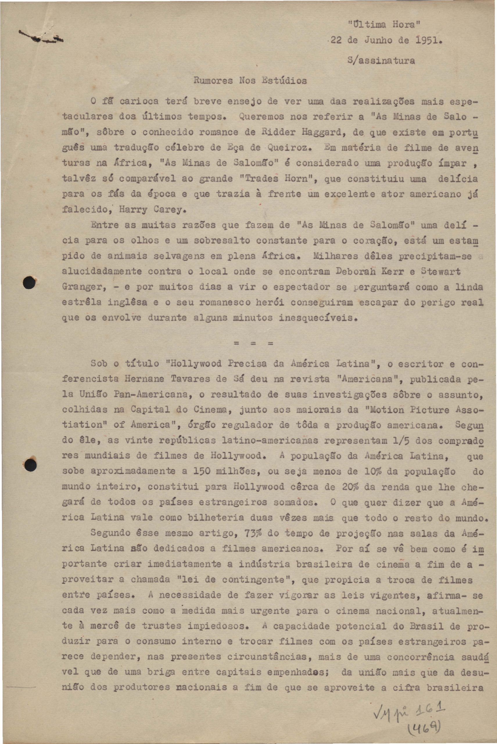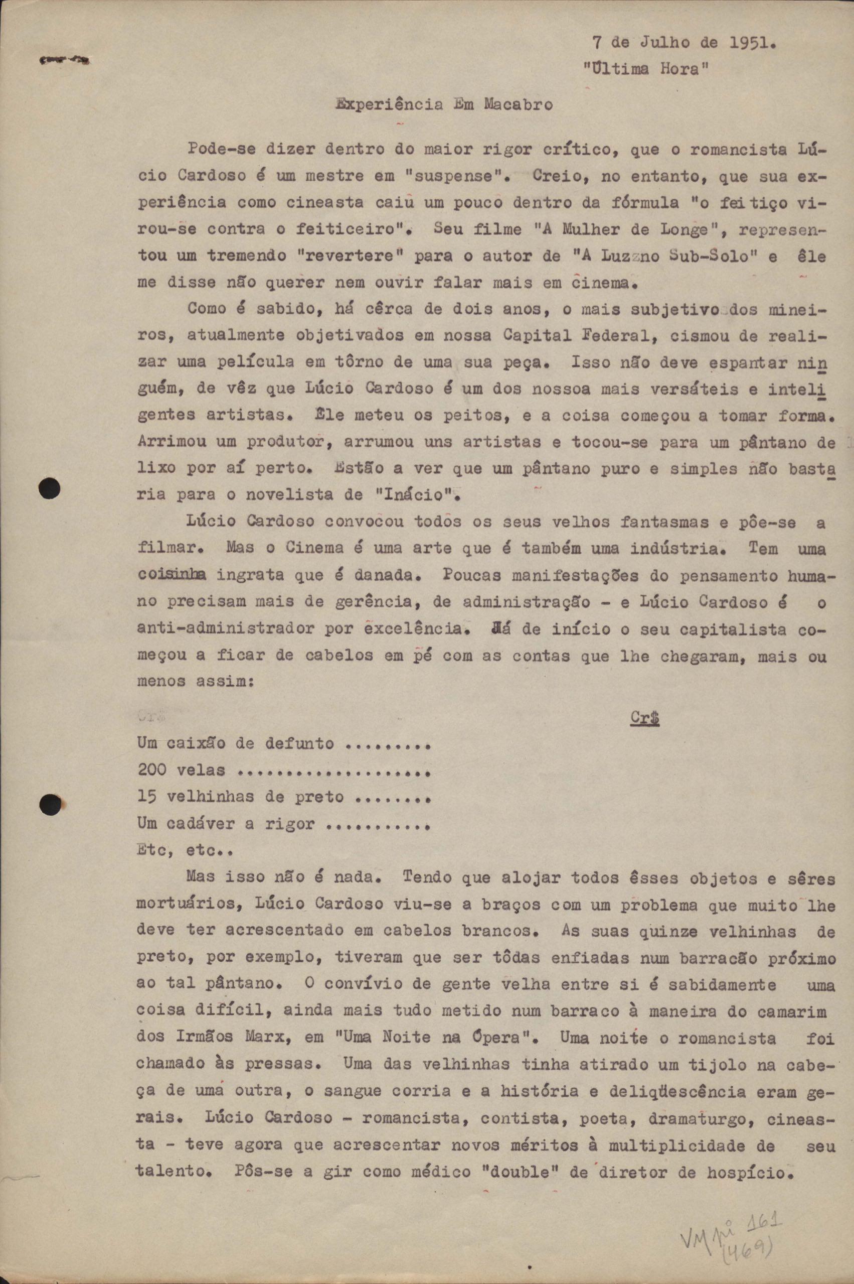 "Punta del Este", "Jezebel", "Tela em branco", "Sansão Mature e Dalila Lamarr", "O direito de matar", "Deu terra?", "Na noite do crime eu não estava lá", "Nada de novo no front (I)", "Nada de novo no front (II)", "A vingança da porta", "Nem ninfa, nem nua", "Rumores nos estúdios", "O ódio é cego", "Smorgasbord", "Coisas que incomodam", "O cavaleiro de Sherwood", "A semana cinematográfica", "A terra é sempre terra", "A terra é sempre terra (II)", "O clamor humano", "Nasci para bailar", "Experiência em Macabro", "Prognósticos da semana", "A coisa marcha", "Cartas venenosas", "Esta semana", "Núpcias reais", "Correio do inferno", "Gilberto Souto", "Quando a noite desce", "Vai-se outra, mais outra e enfim dezenas", "A Vênus do ano", "Alberto Cavalcanti e o I.N.C. (I)", "Alberto Cavalcanti e o I.N.C. (II)", "O que vai por aí" e "Alberto Cavalcanti e o I.N.C. (III)"