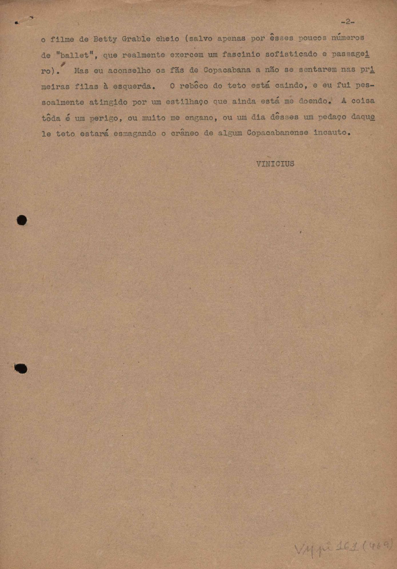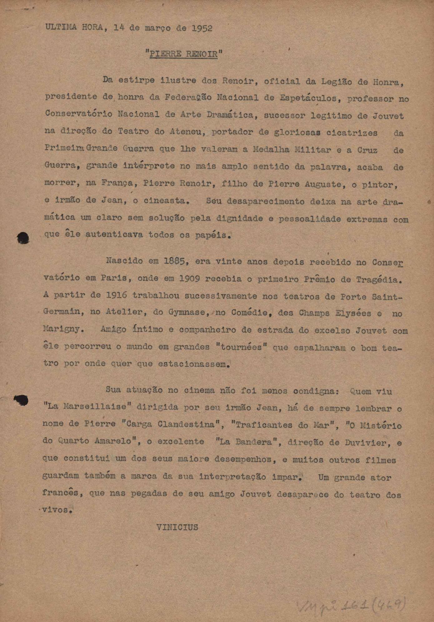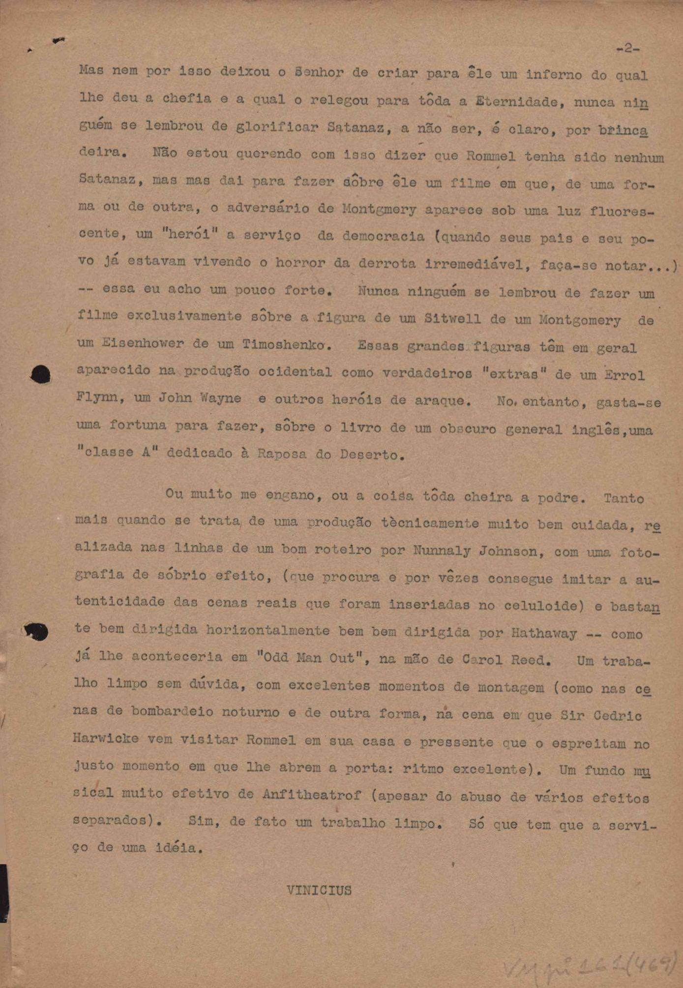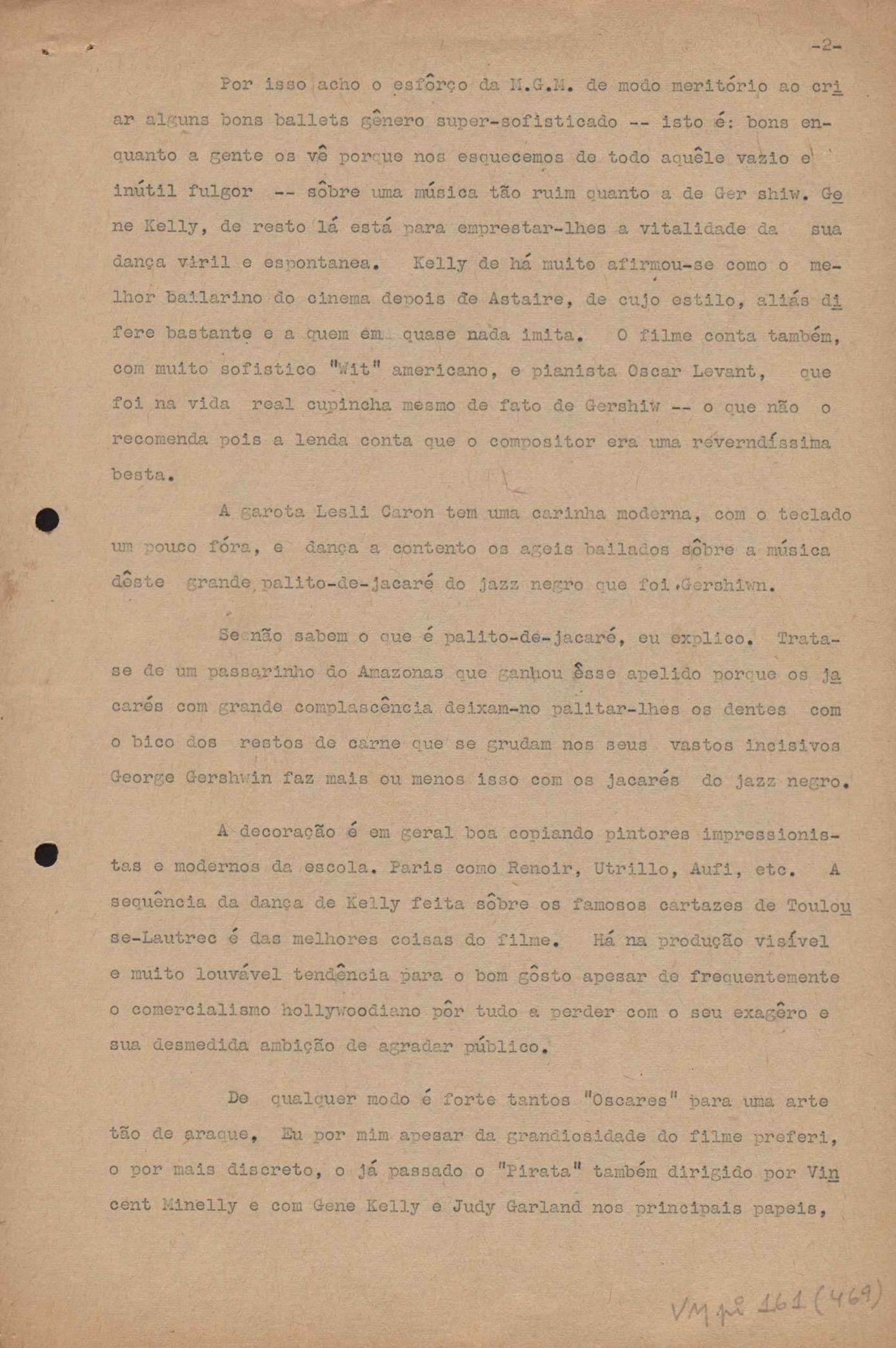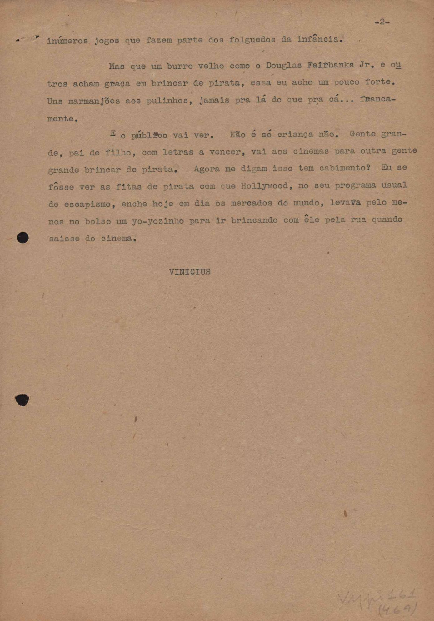 "A extinção do 'Crown Film Unit’ britânico", "Cavalcanti e a Kino Filmes", "Barnabés, Oscarito e Grande Otelo", "Ao cair do pano", "Sua última missão", "O brotinho e as respeitosas", "Eu sou o pirata da perna de pau... pau... pau... (a propósito de dois filmes em cartaz)", "Com sua permissão, Sir Lawrence Olivier", "Ambição mortal", "Rommel... ou Romeu?", "Pierre Renoir", "Como se faz um filme (I)", "Como se faz um filme (II)", "Como se faz um filme (V) - Águas mortíferas aos pés dos santos do Aleijadinho", "Espada contra espada", "Foi muito 'Oscar' demais" e "O Primeiro Festival Internacional de Cinema do Brasil"