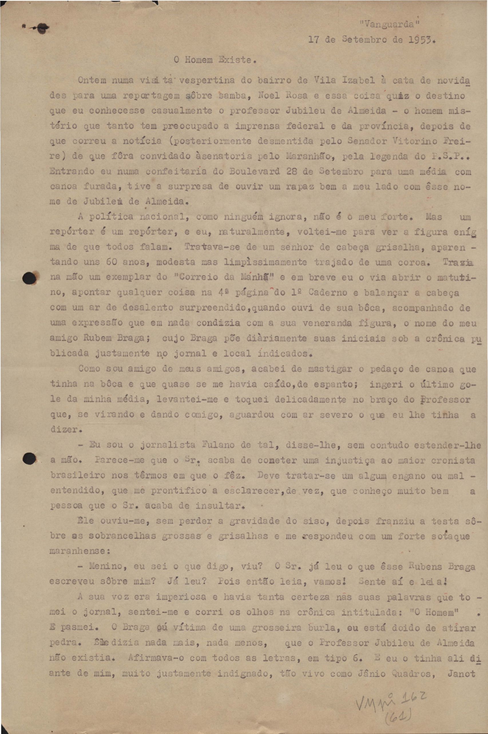 Publicado no periódico Vanguarda.