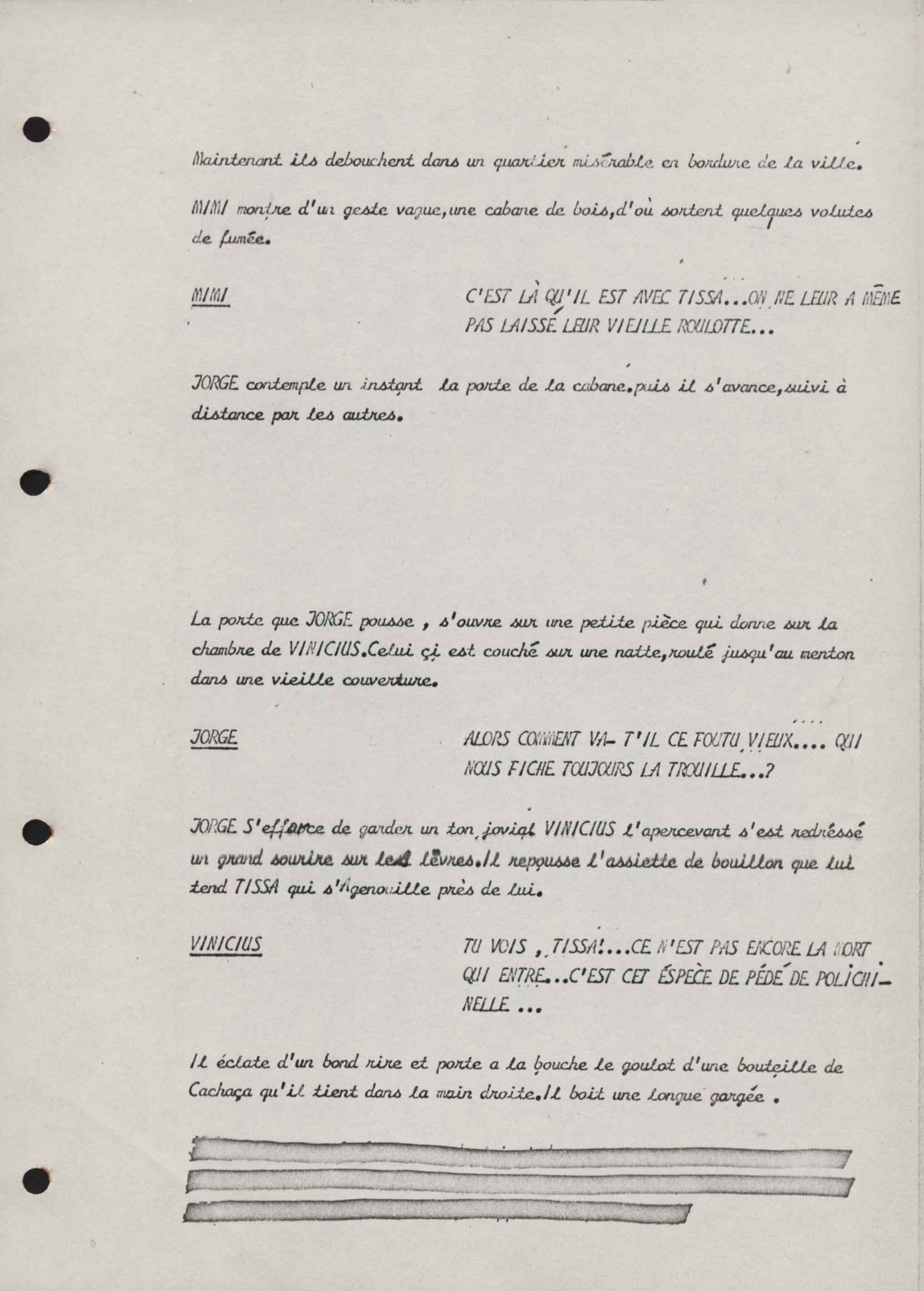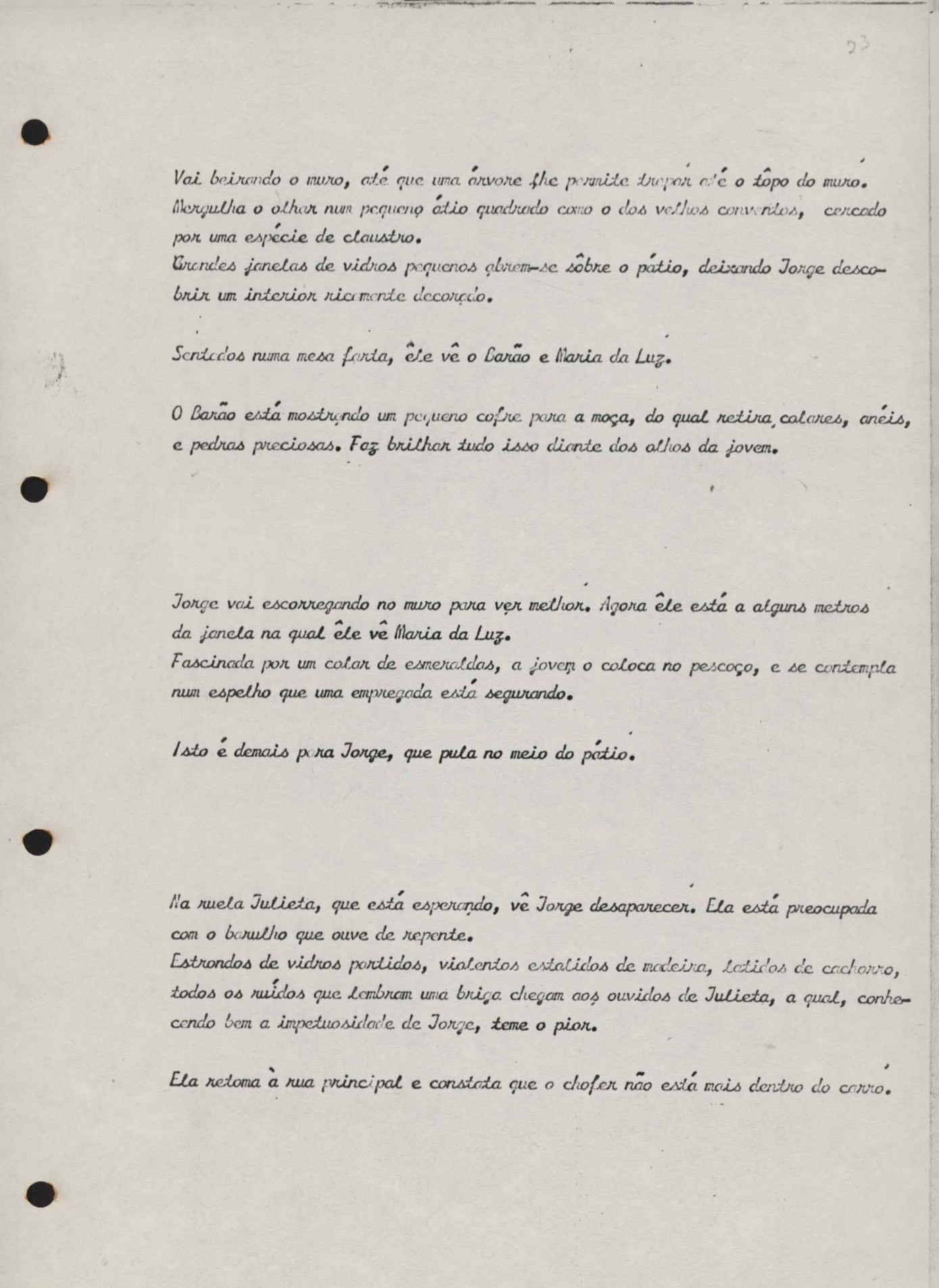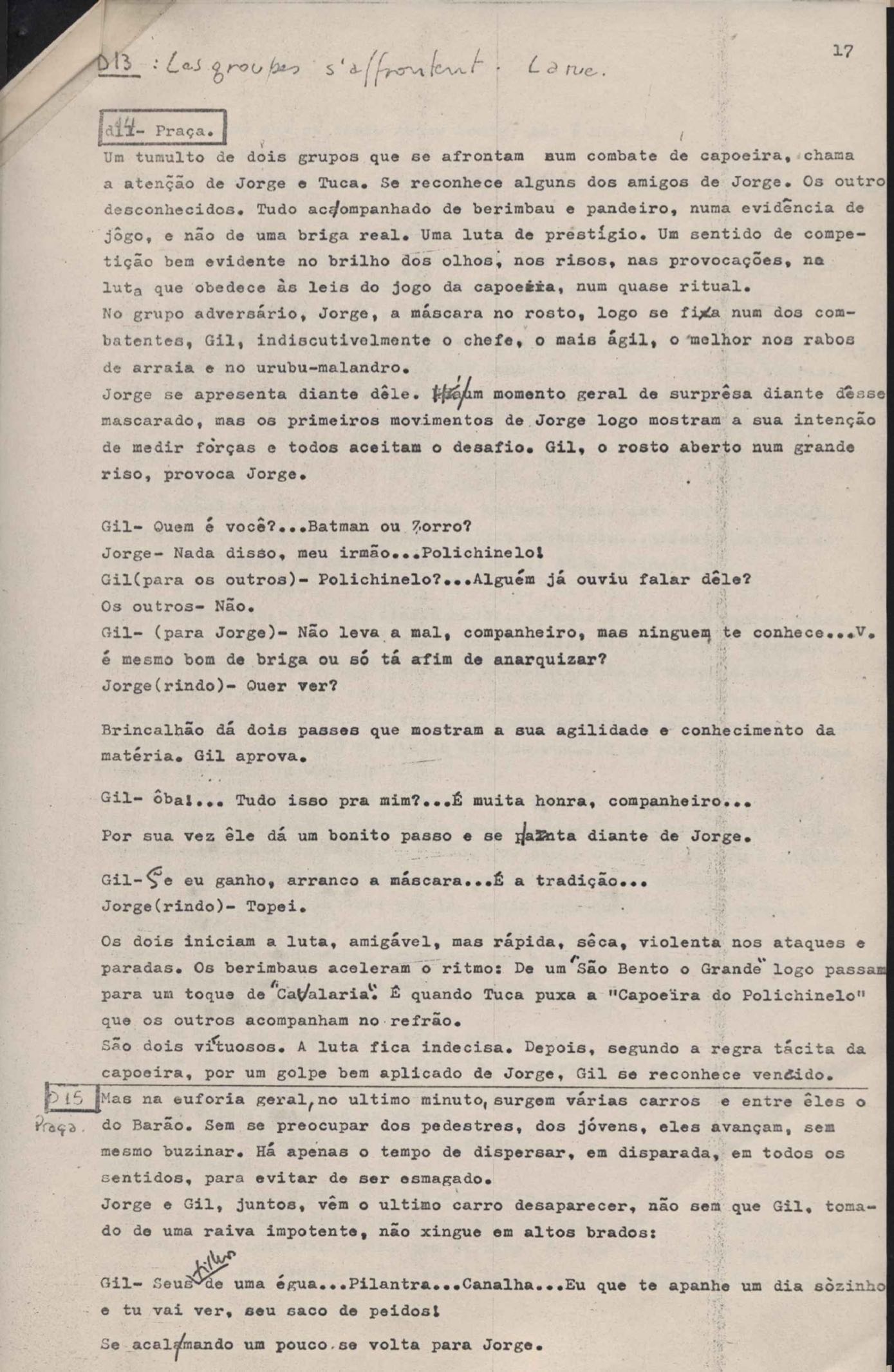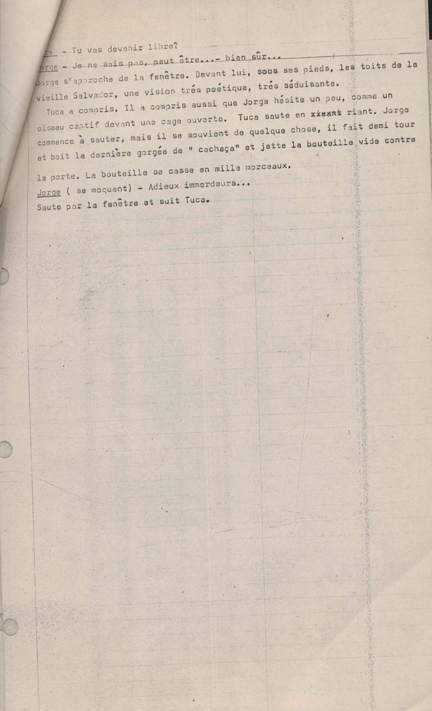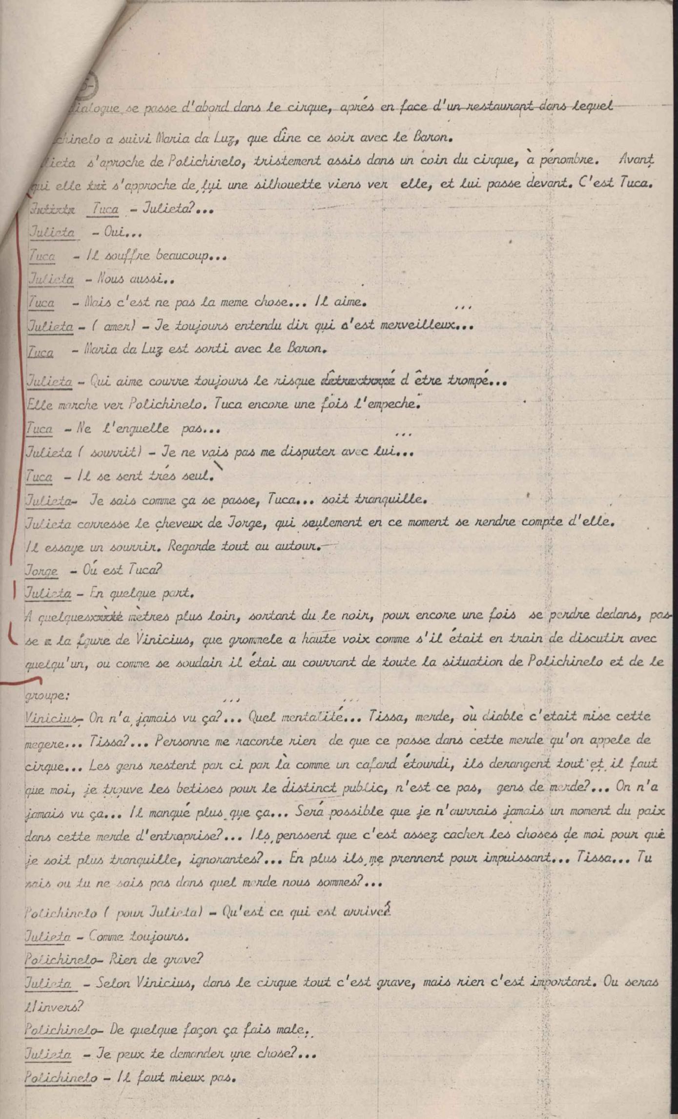 Roteiro cinematográfico (1). Anexo: 1. Duas versões manuscritas e datilografadas; 2. Roteiro decupado em francês; 3. Pulcinela, em francês; 4. "Xaxado de Polichinelo"; 5. Dispersos.