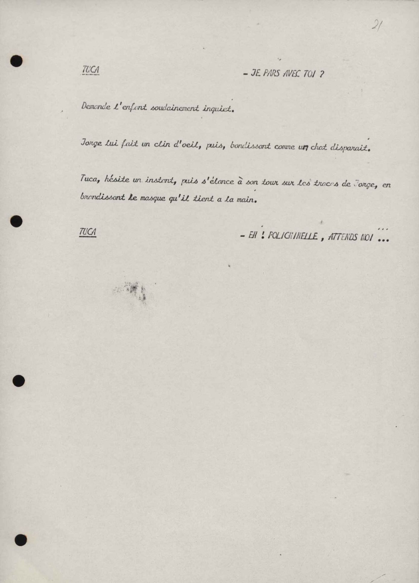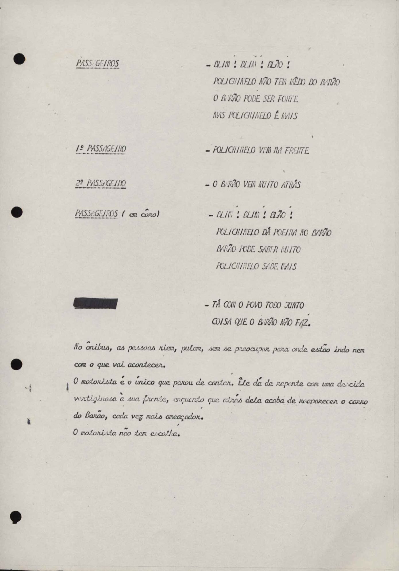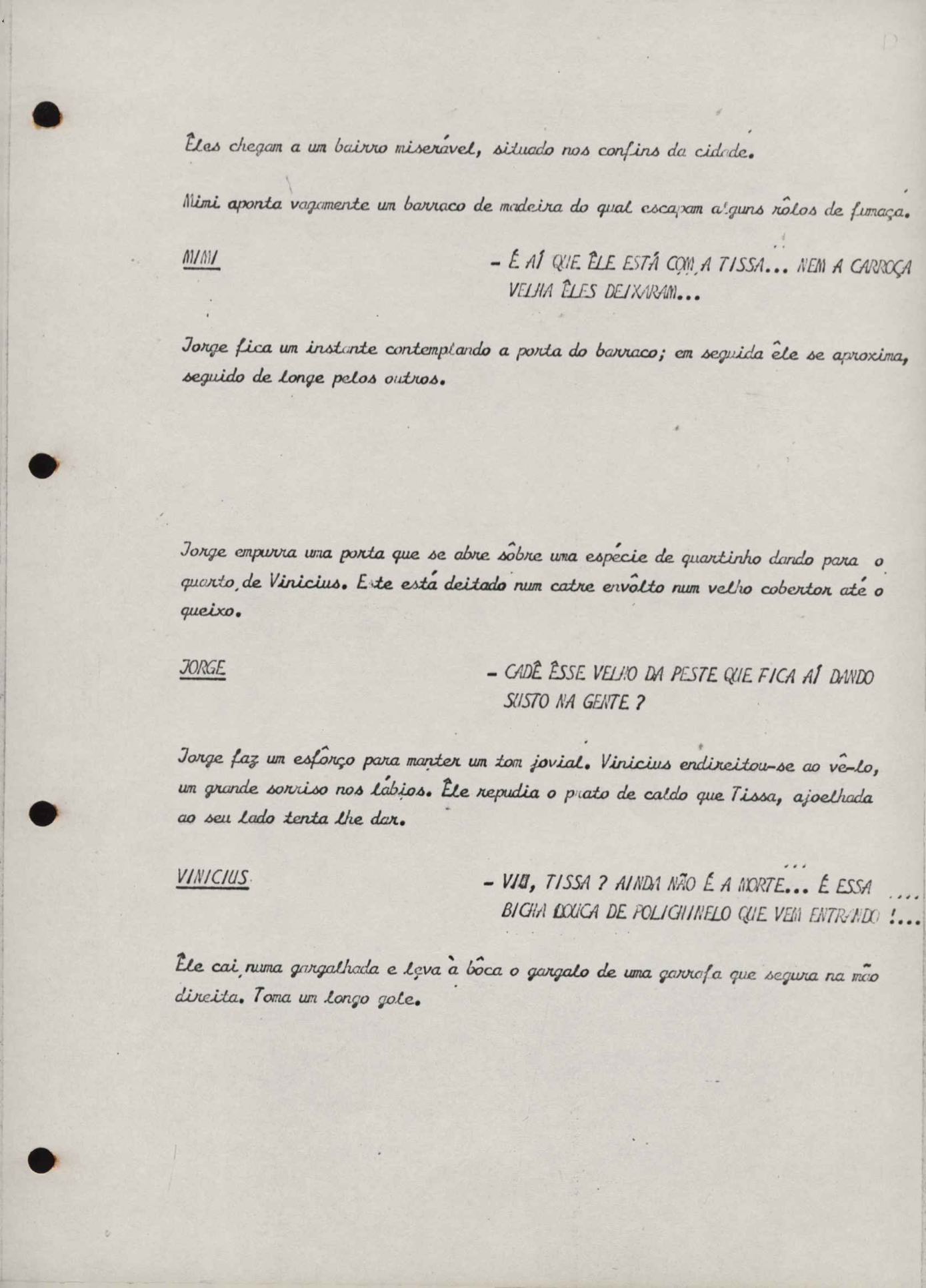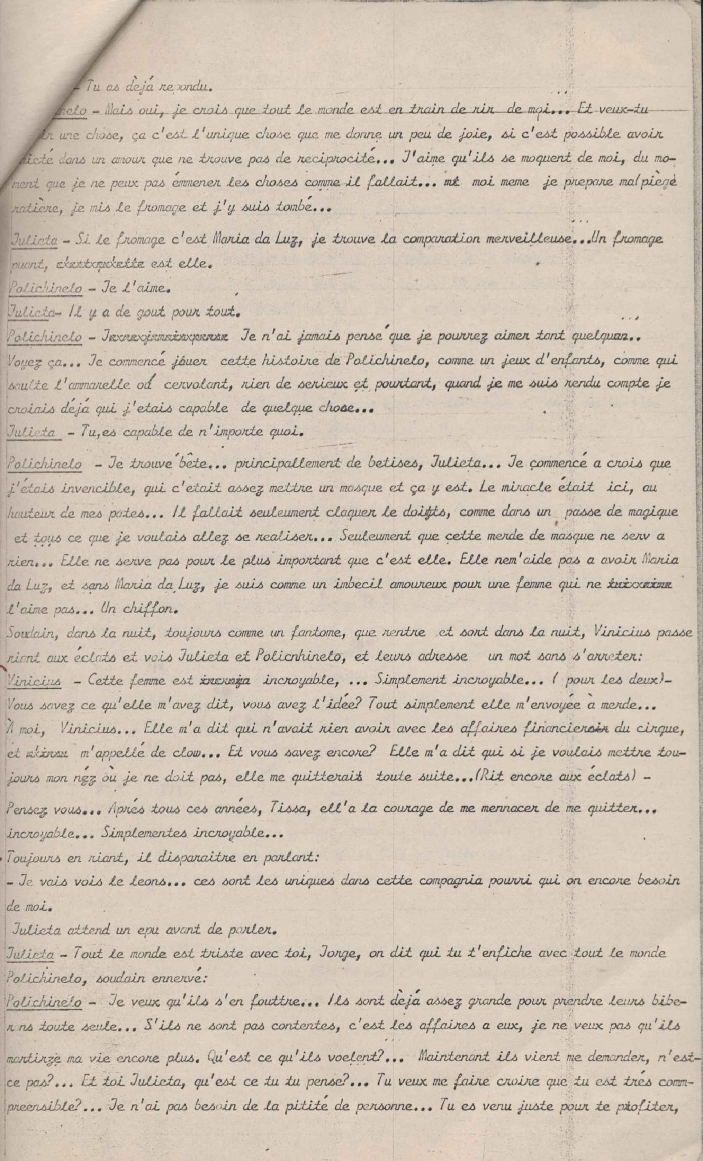 Roteiro cinematográfico (1). Anexo: 1. Duas versões manuscritas e datilografadas; 2. Roteiro decupado em francês; 3. Pulcinela, em francês; 4. "Xaxado de Polichinelo"; 5. Dispersos.