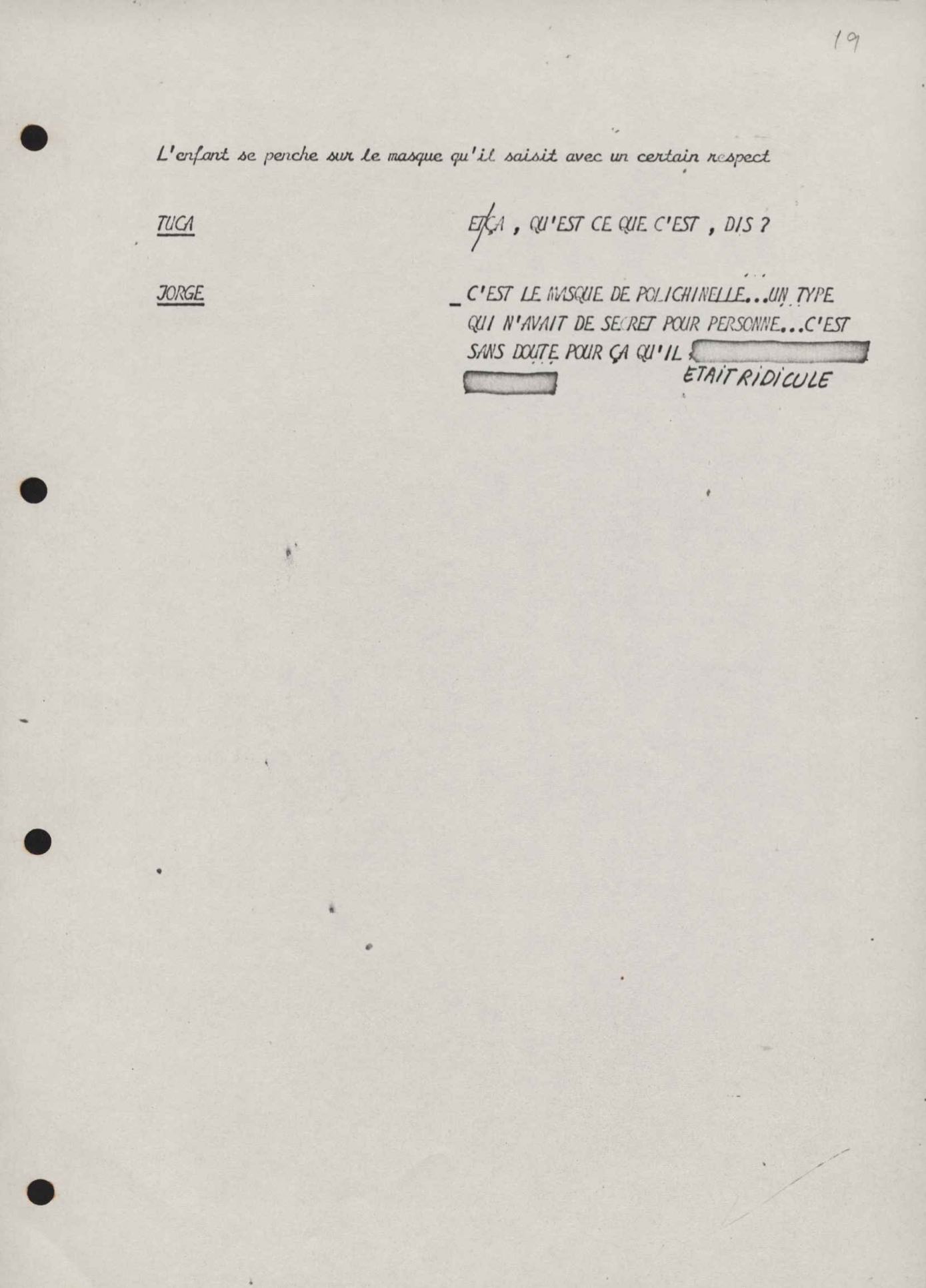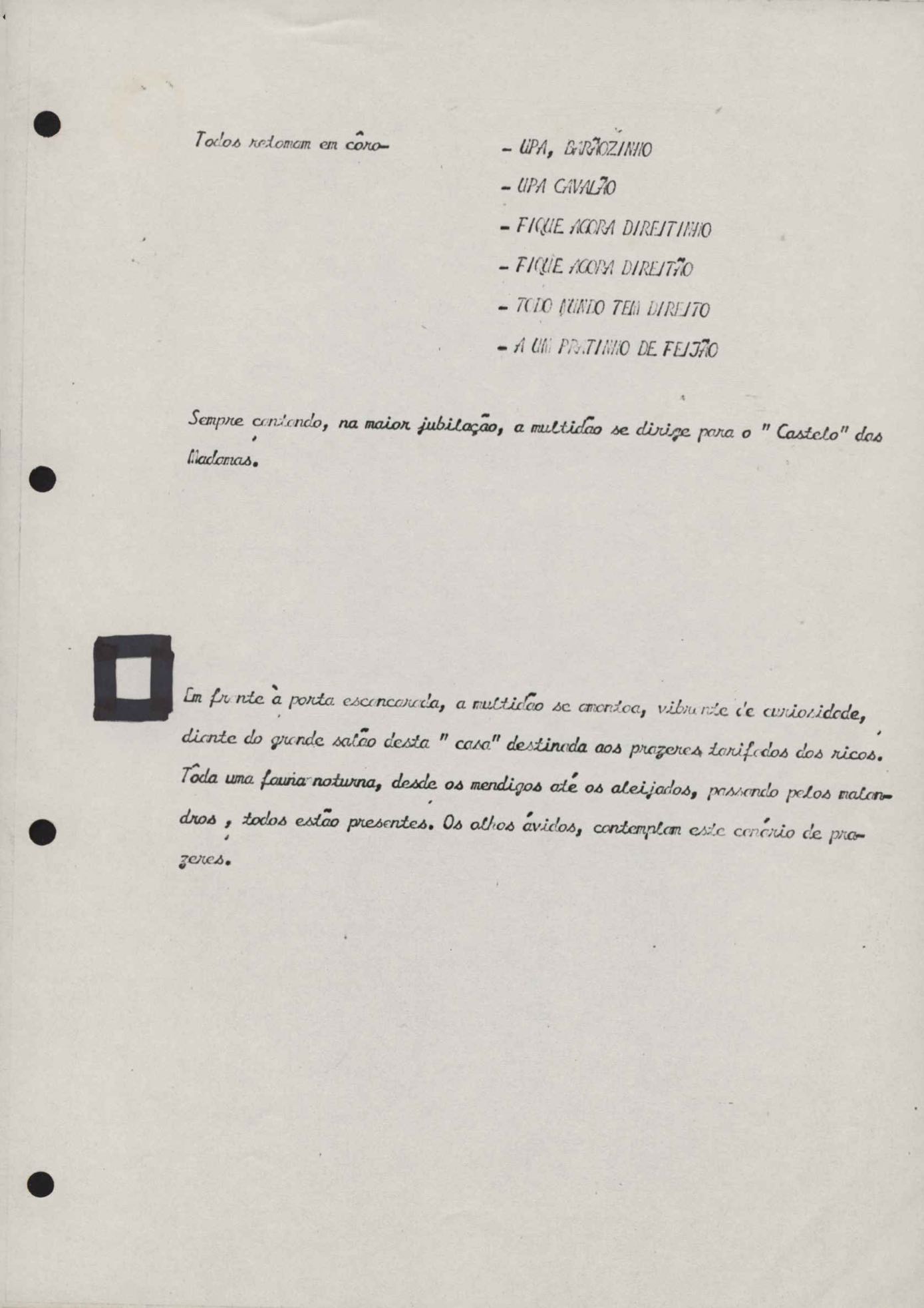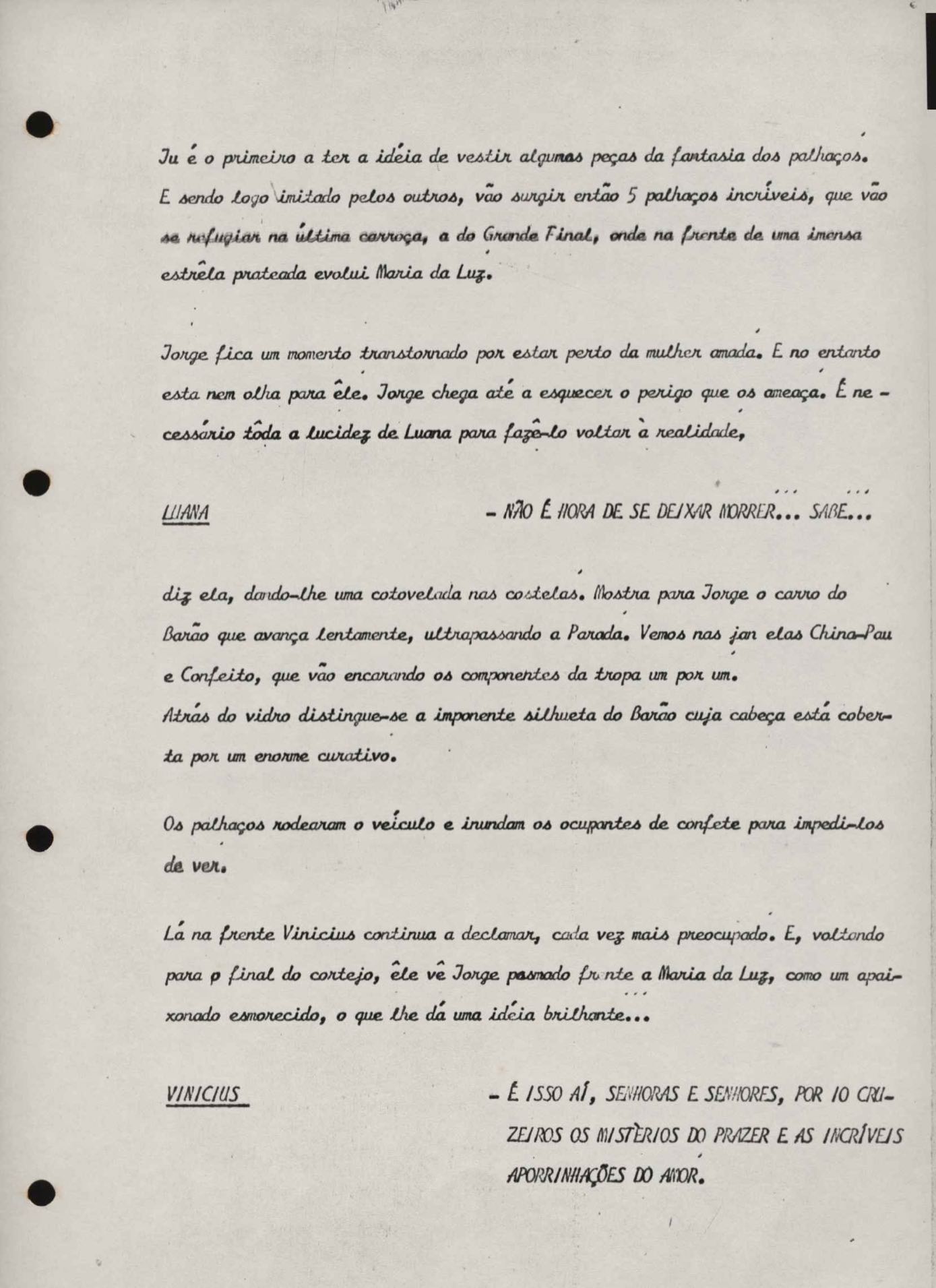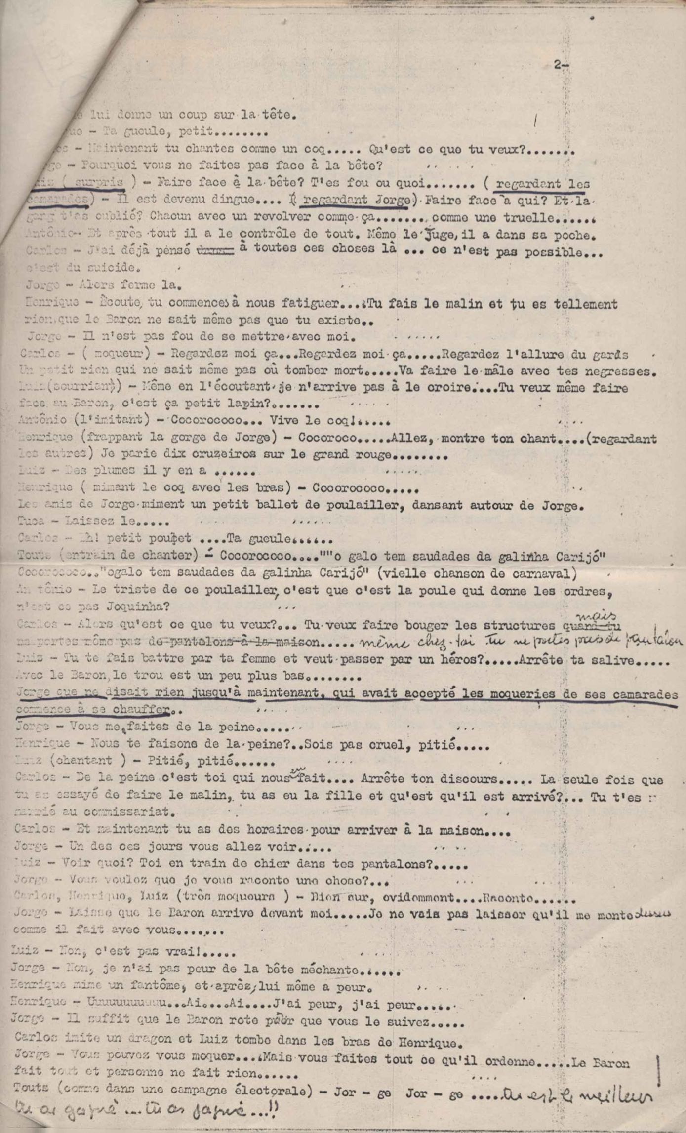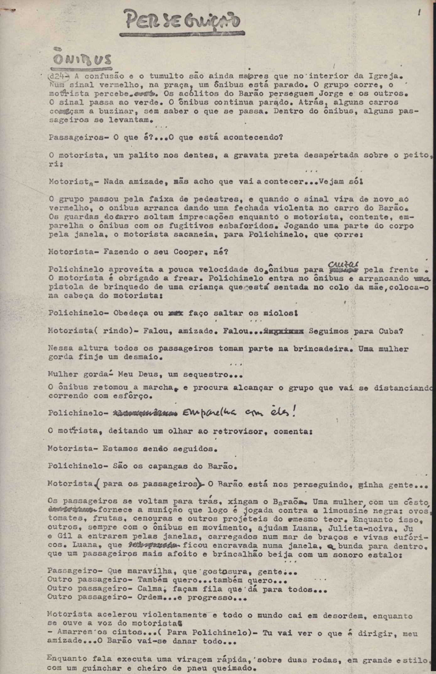 Roteiro cinematográfico (1). Anexo: 1. Duas versões manuscritas e datilografadas; 2. Roteiro decupado em francês; 3. Pulcinela, em francês; 4. "Xaxado de Polichinelo"; 5. Dispersos.