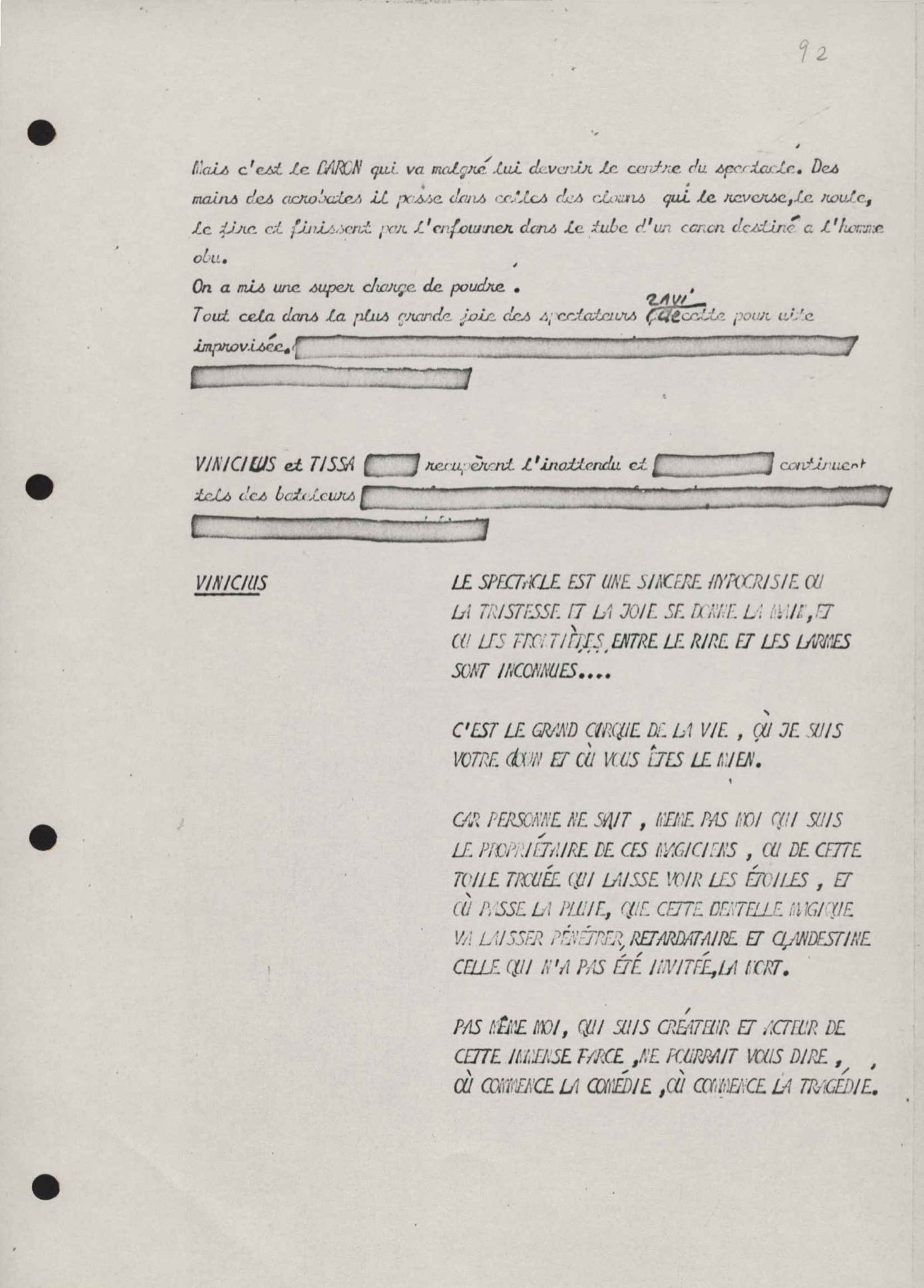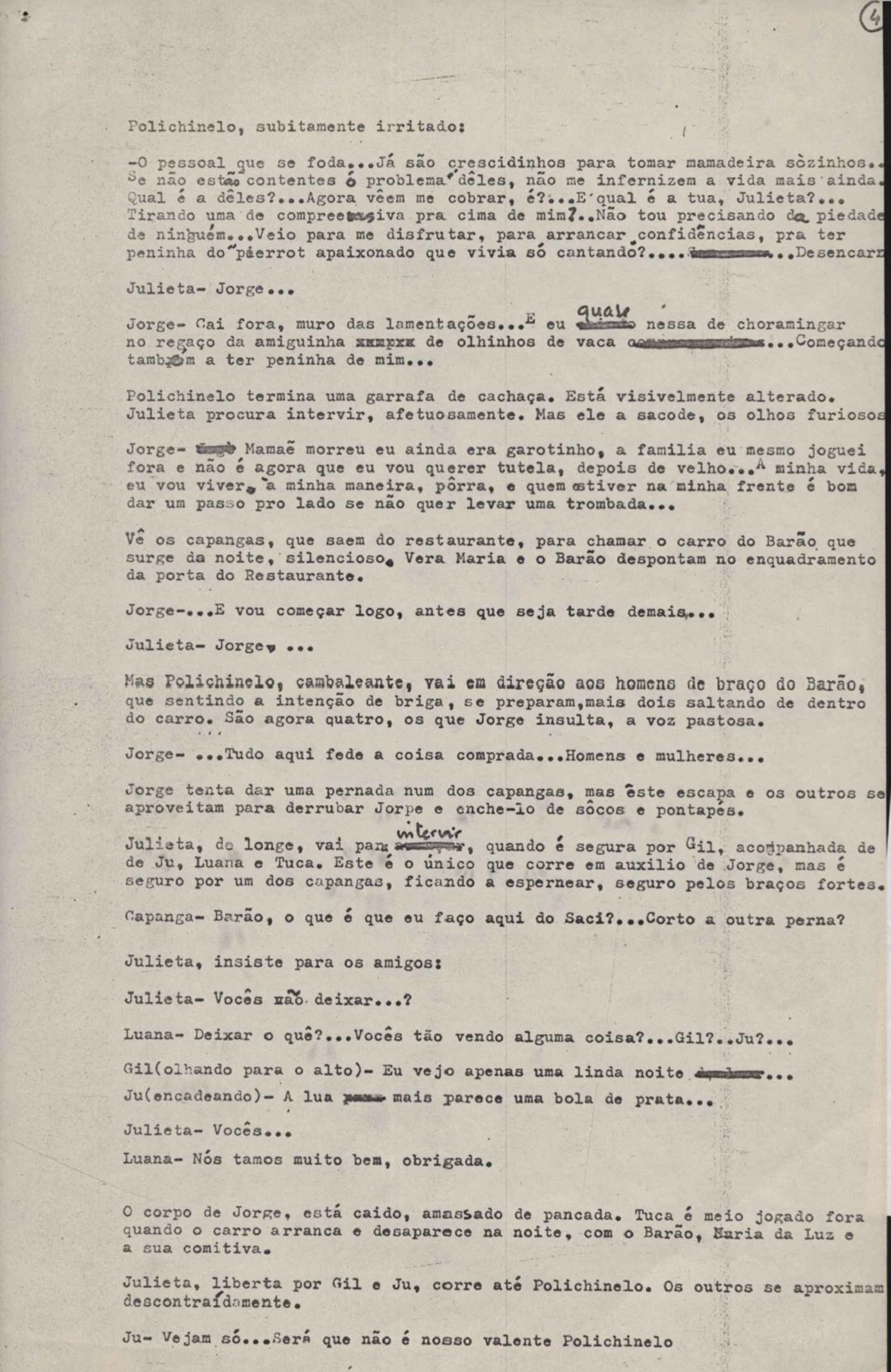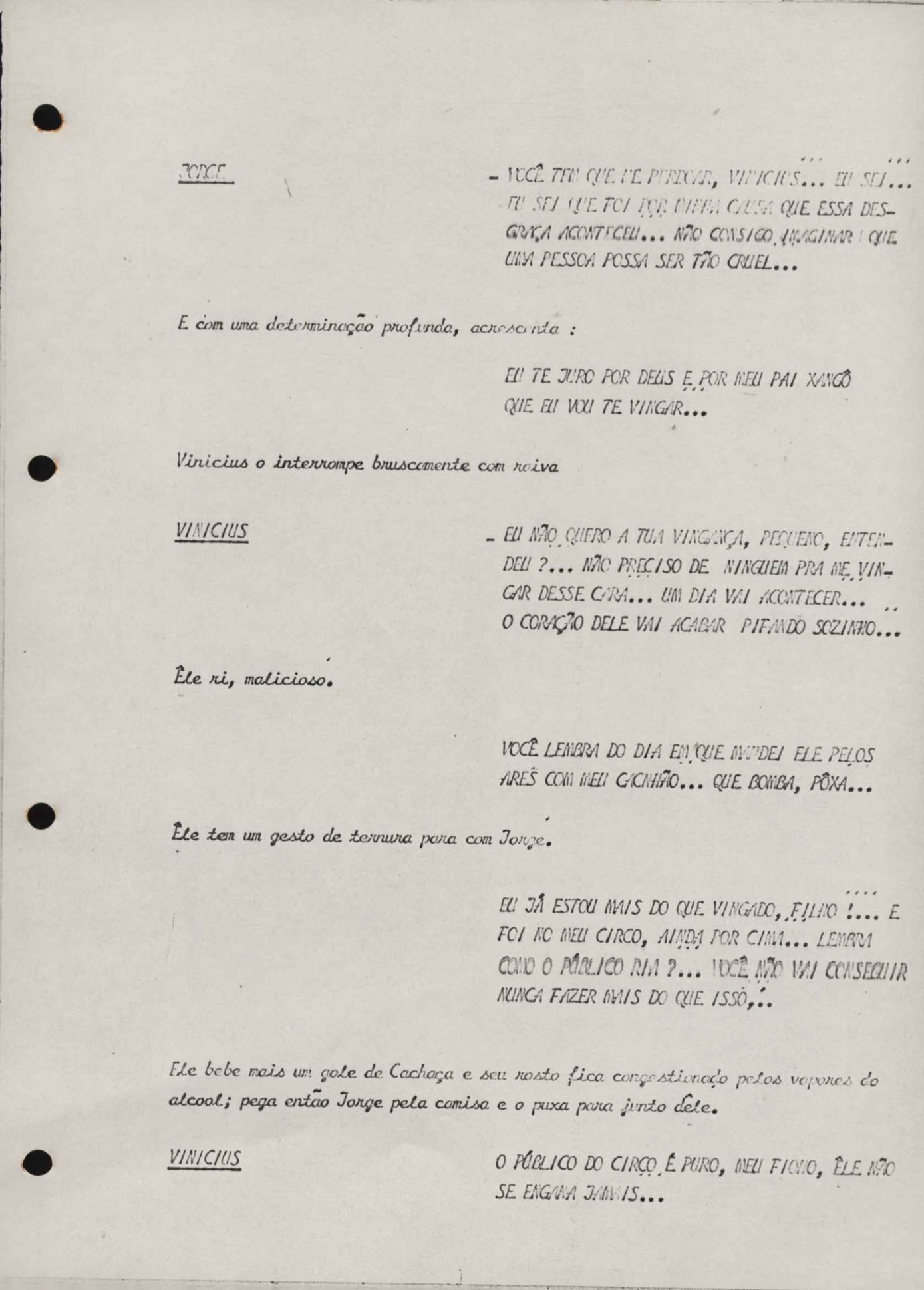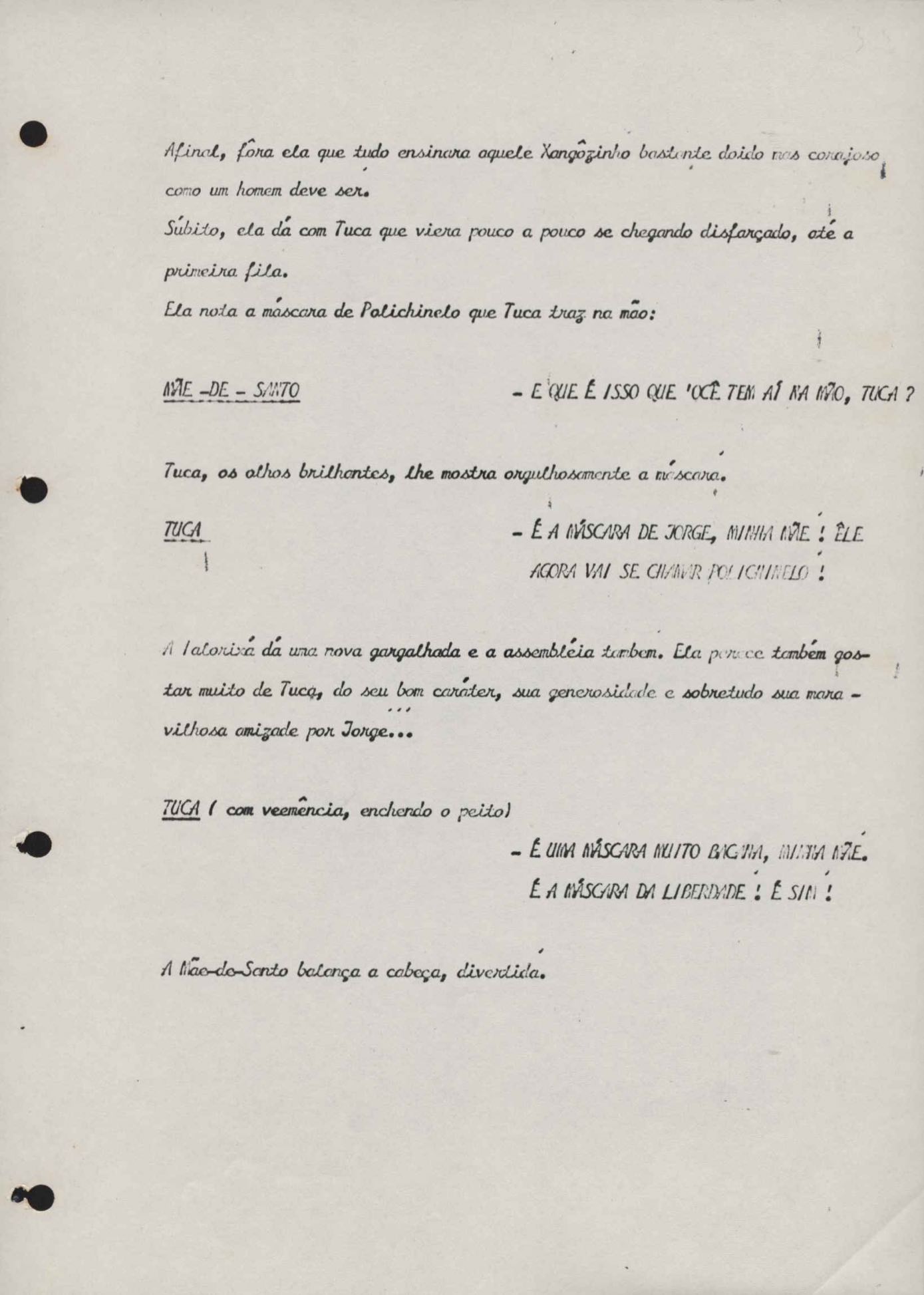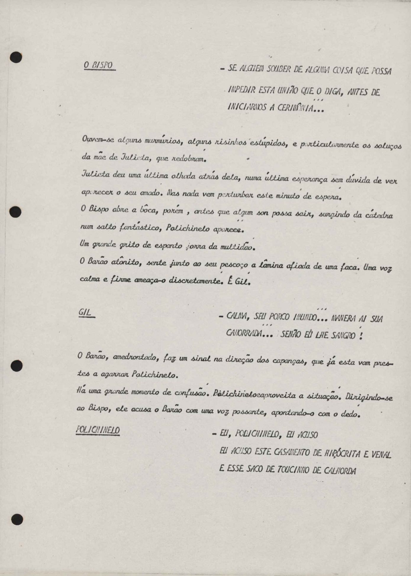 Roteiro cinematográfico (1). Anexo: 1. Duas versões manuscritas e datilografadas; 2. Roteiro decupado em francês; 3. Pulcinela, em francês; 4. "Xaxado de Polichinelo"; 5. Dispersos.