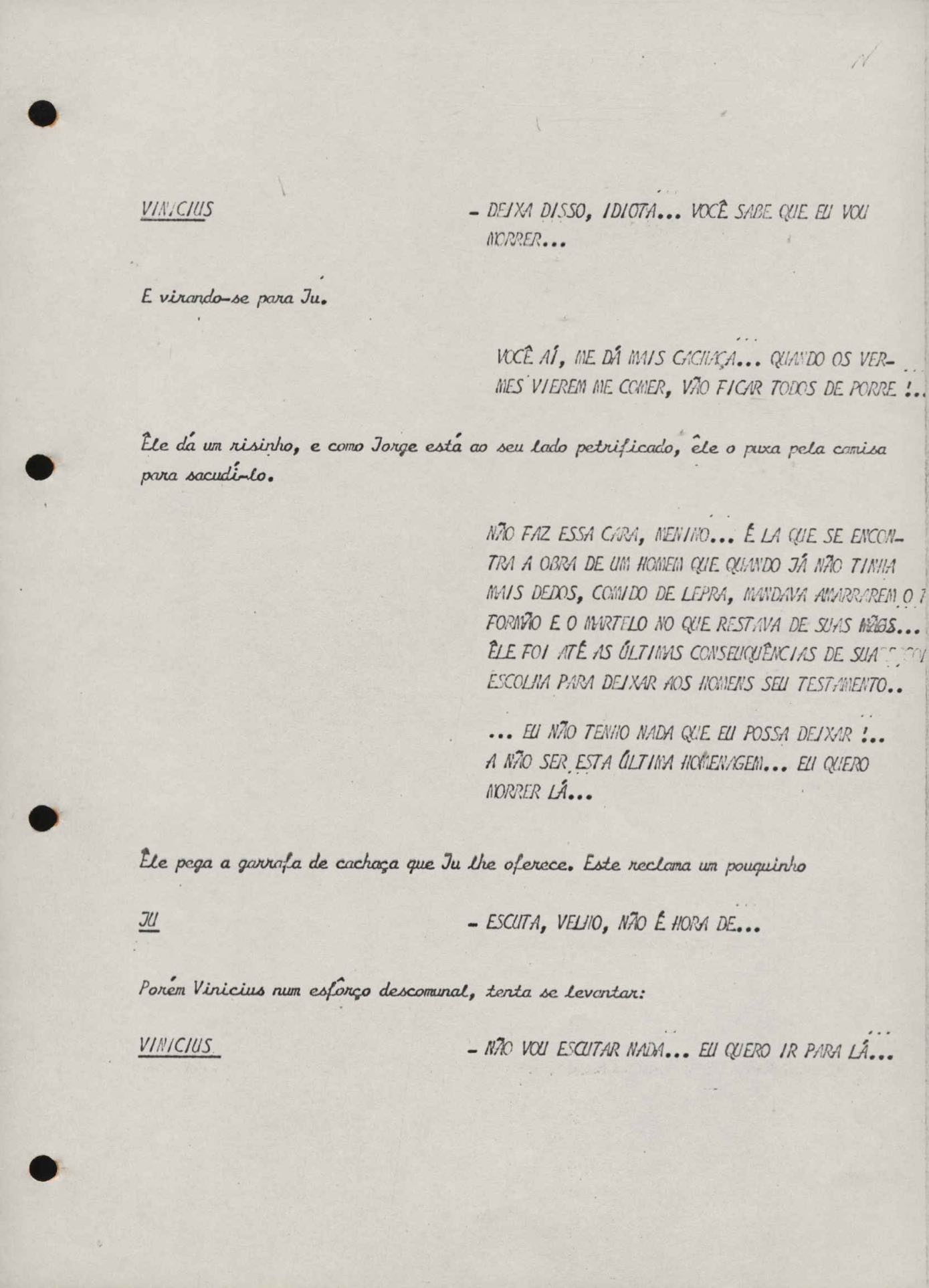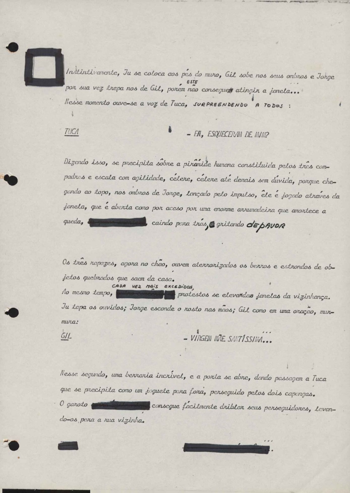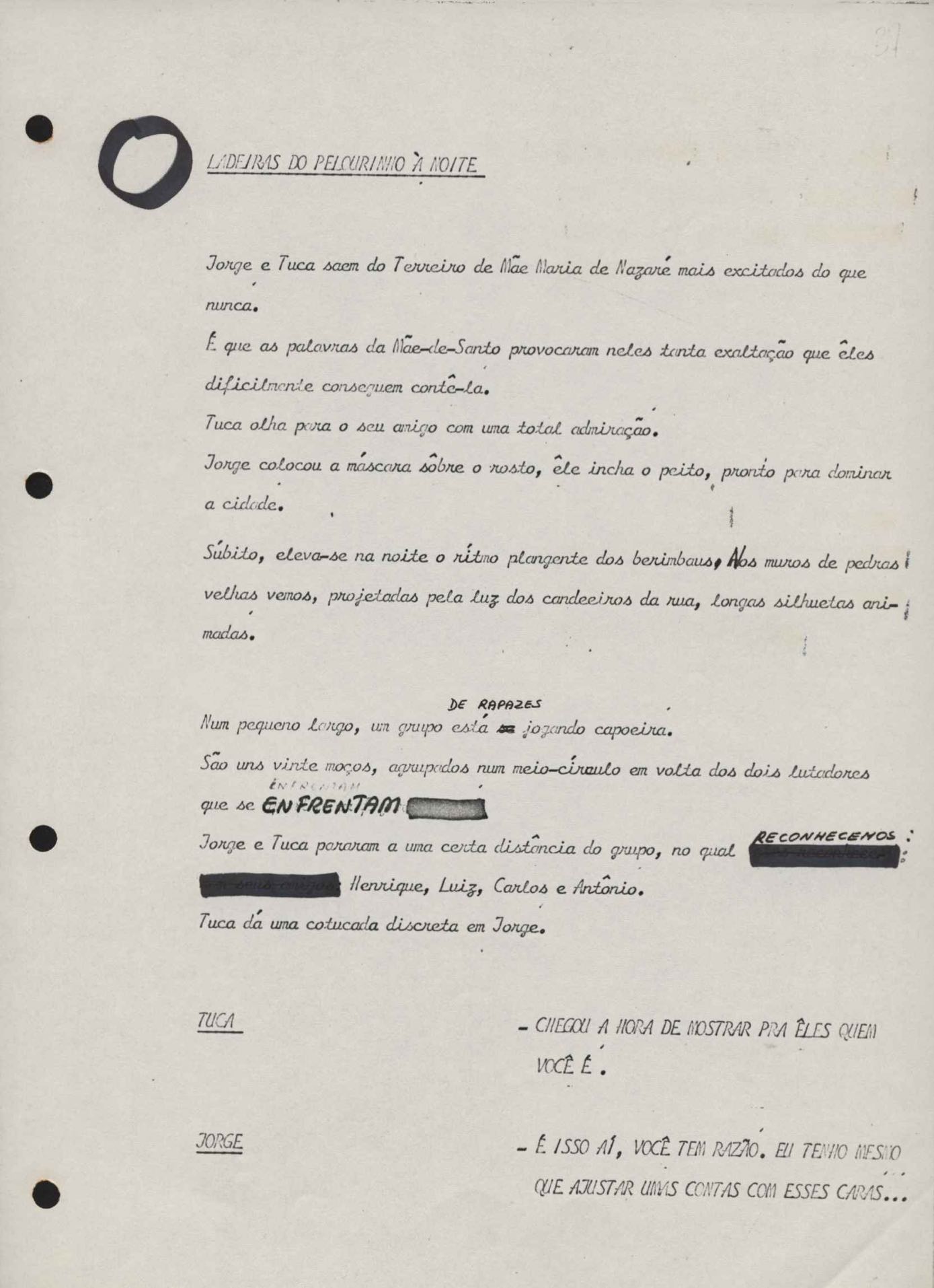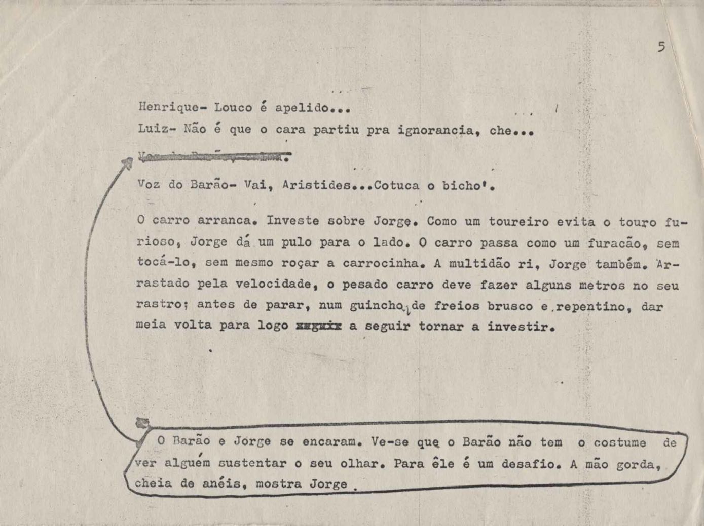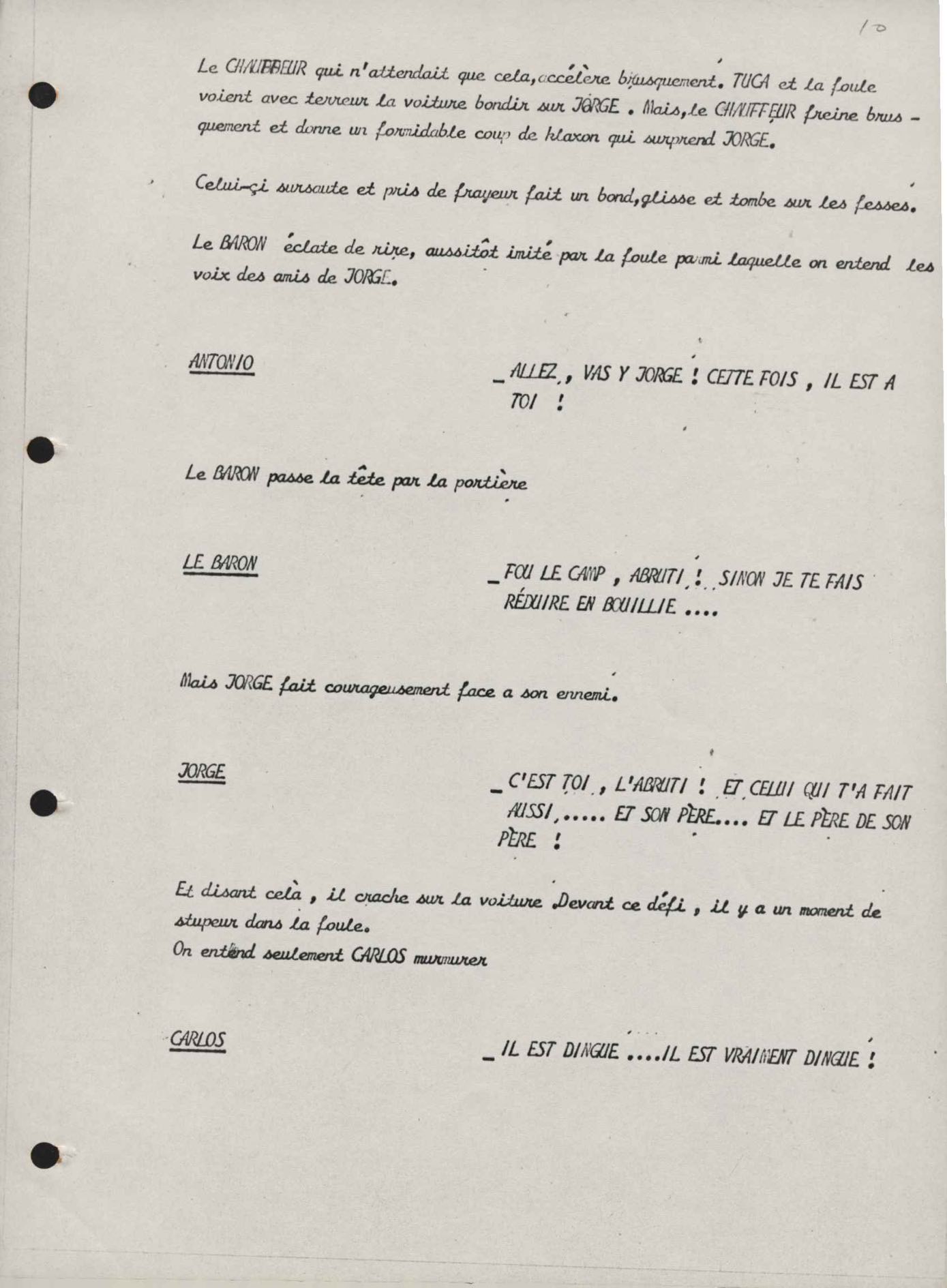 Roteiro cinematográfico (1). Anexo: 1. Duas versões manuscritas e datilografadas; 2. Roteiro decupado em francês; 3. Pulcinela, em francês; 4. "Xaxado de Polichinelo"; 5. Dispersos.