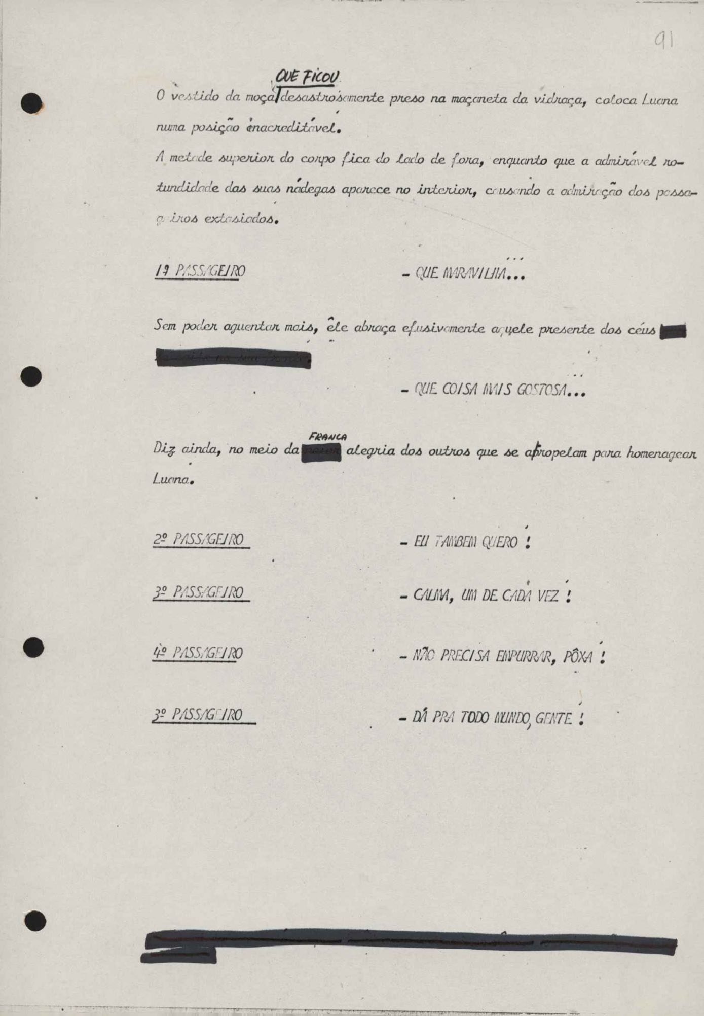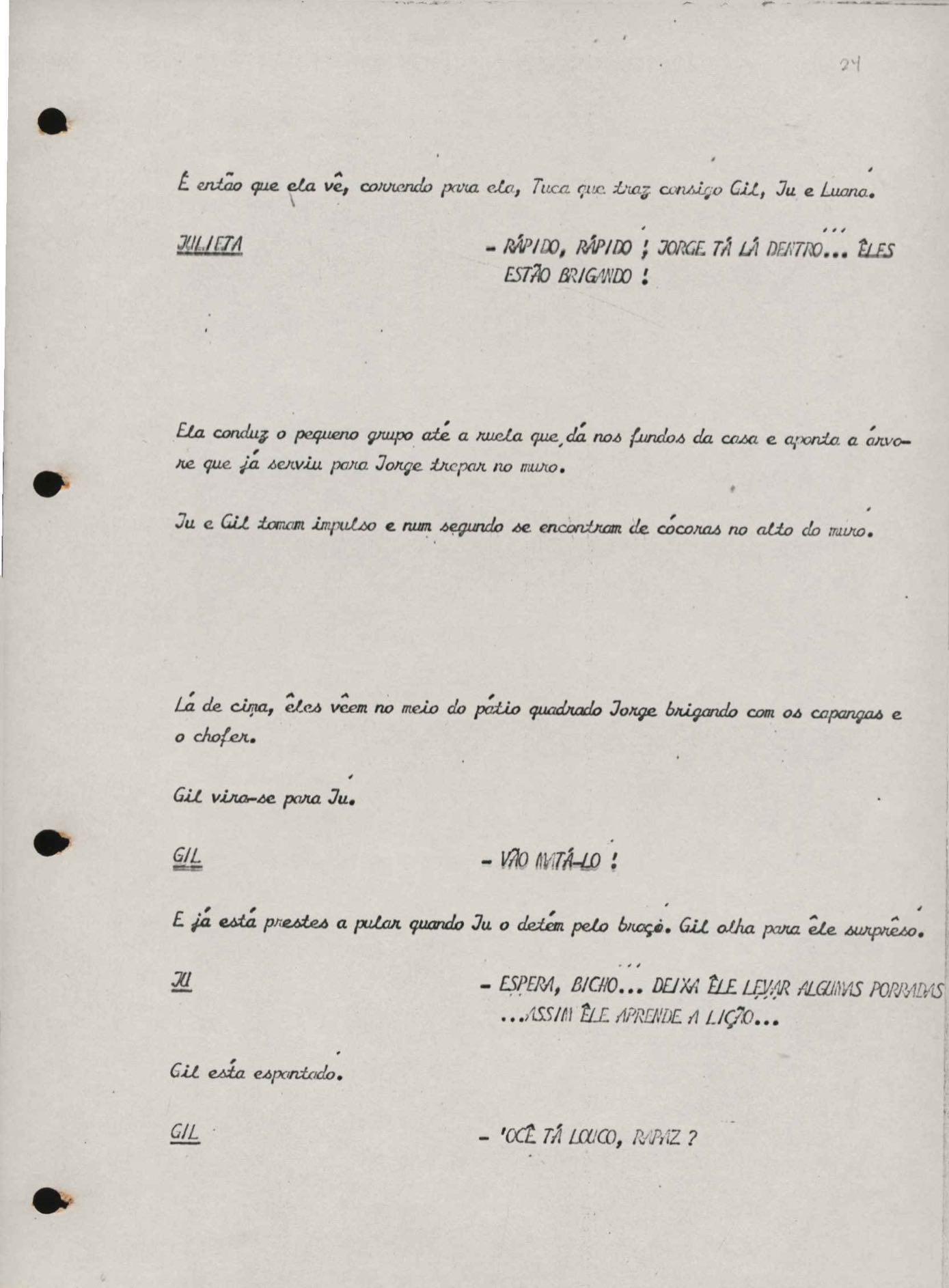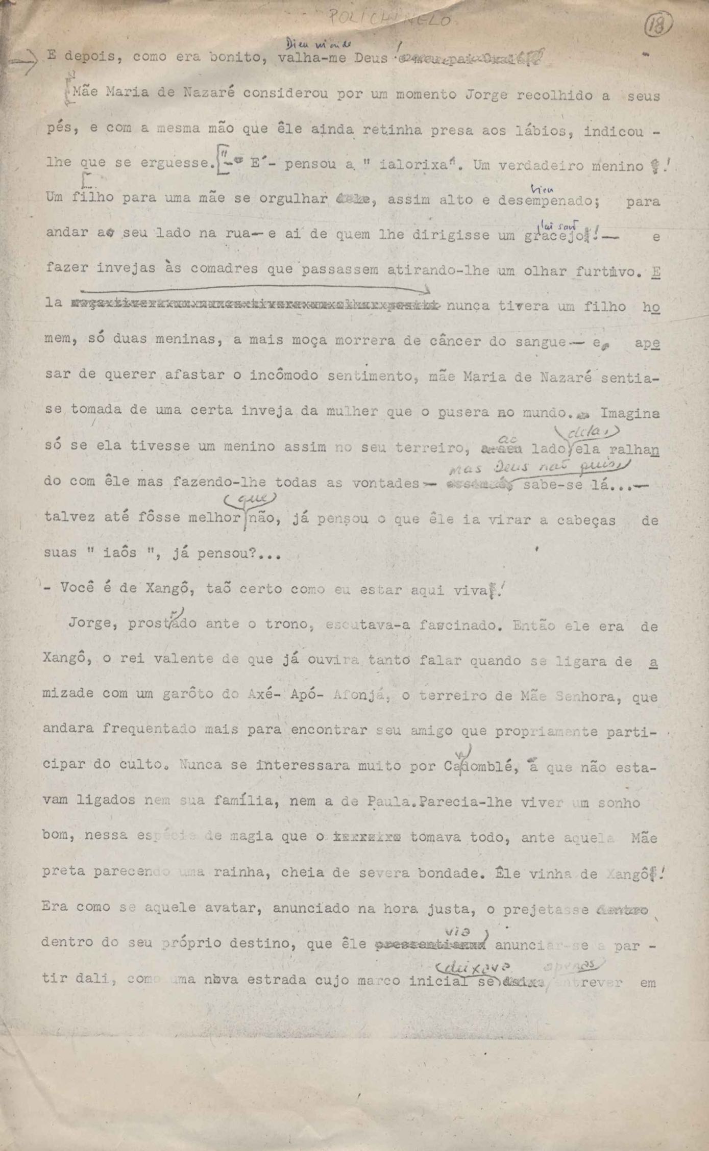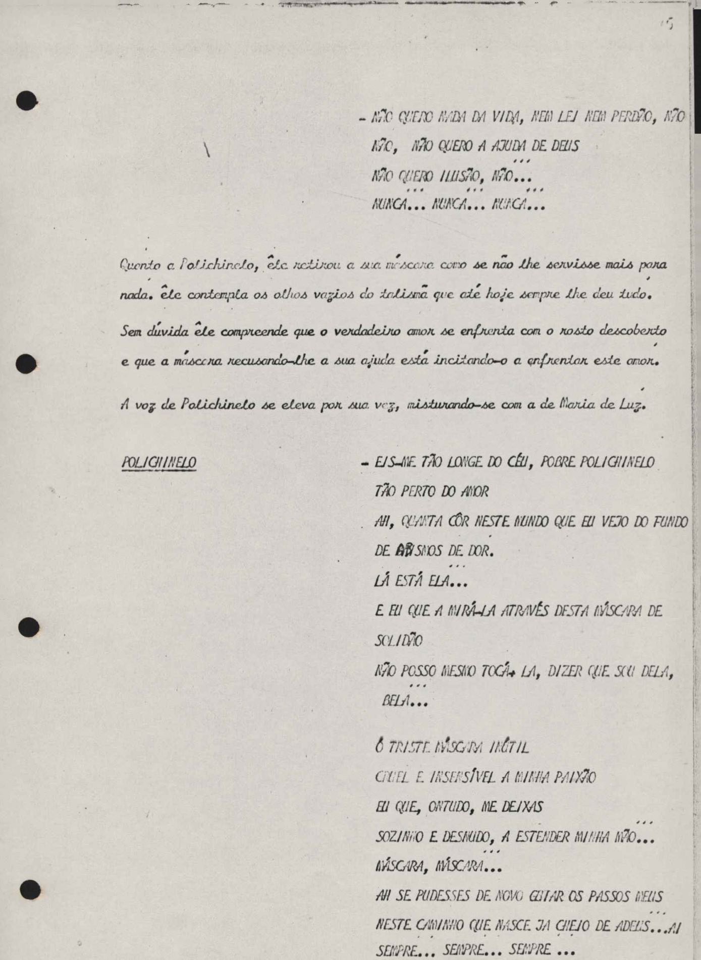 Roteiro cinematográfico (1). Anexo: 1. Duas versões manuscritas e datilografadas; 2. Roteiro decupado em francês; 3. Pulcinela, em francês; 4. "Xaxado de Polichinelo"; 5. Dispersos.
