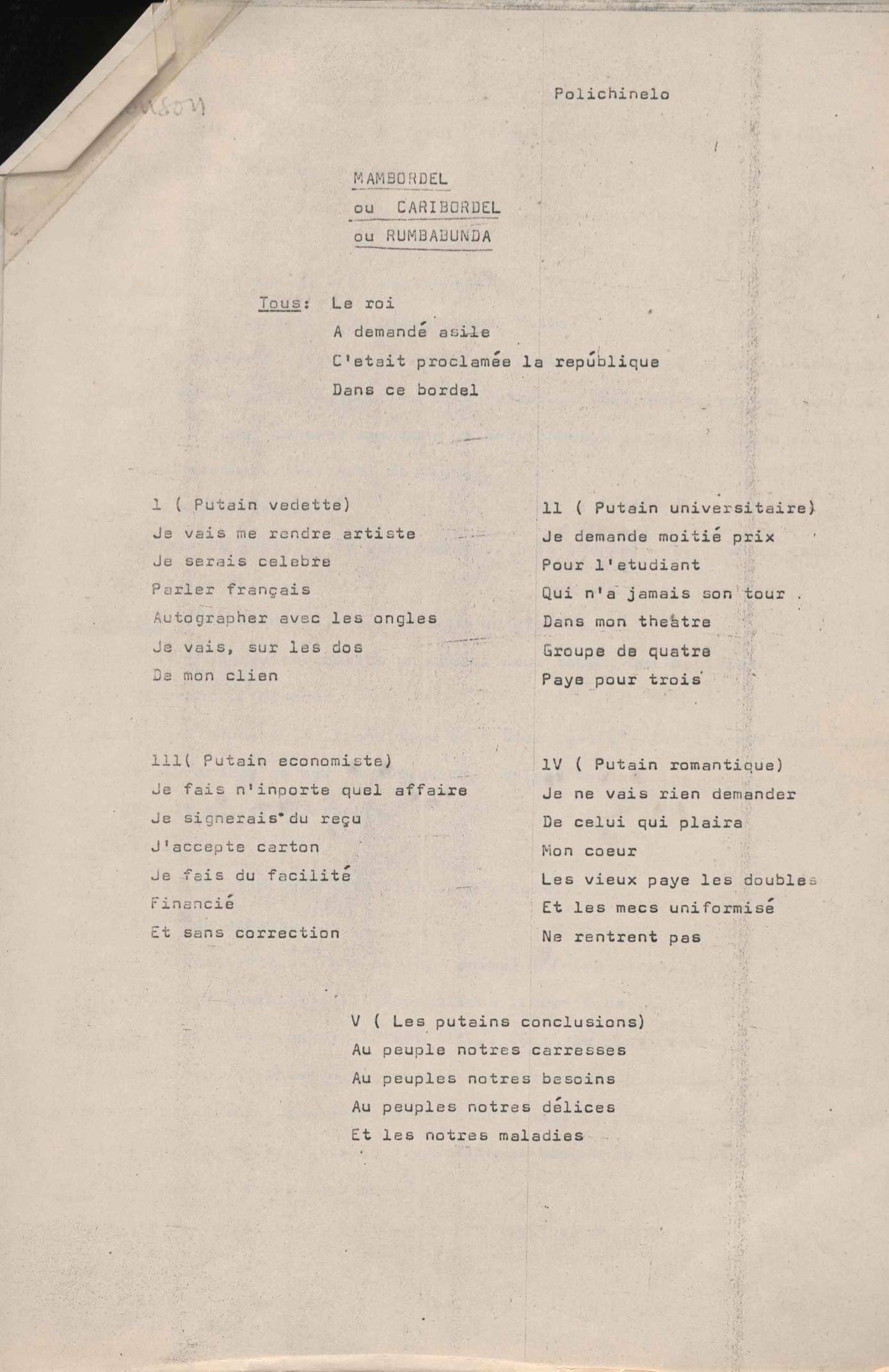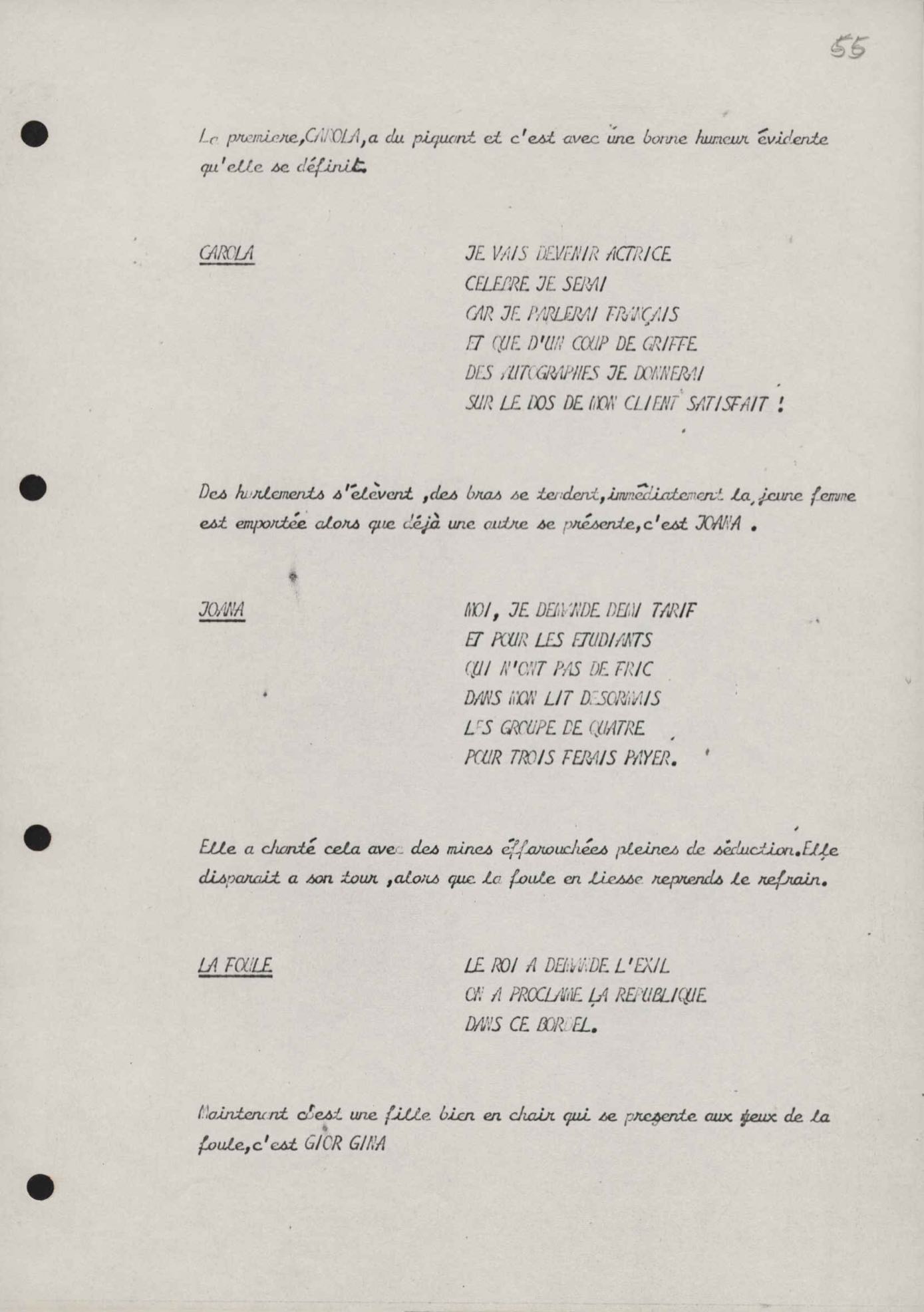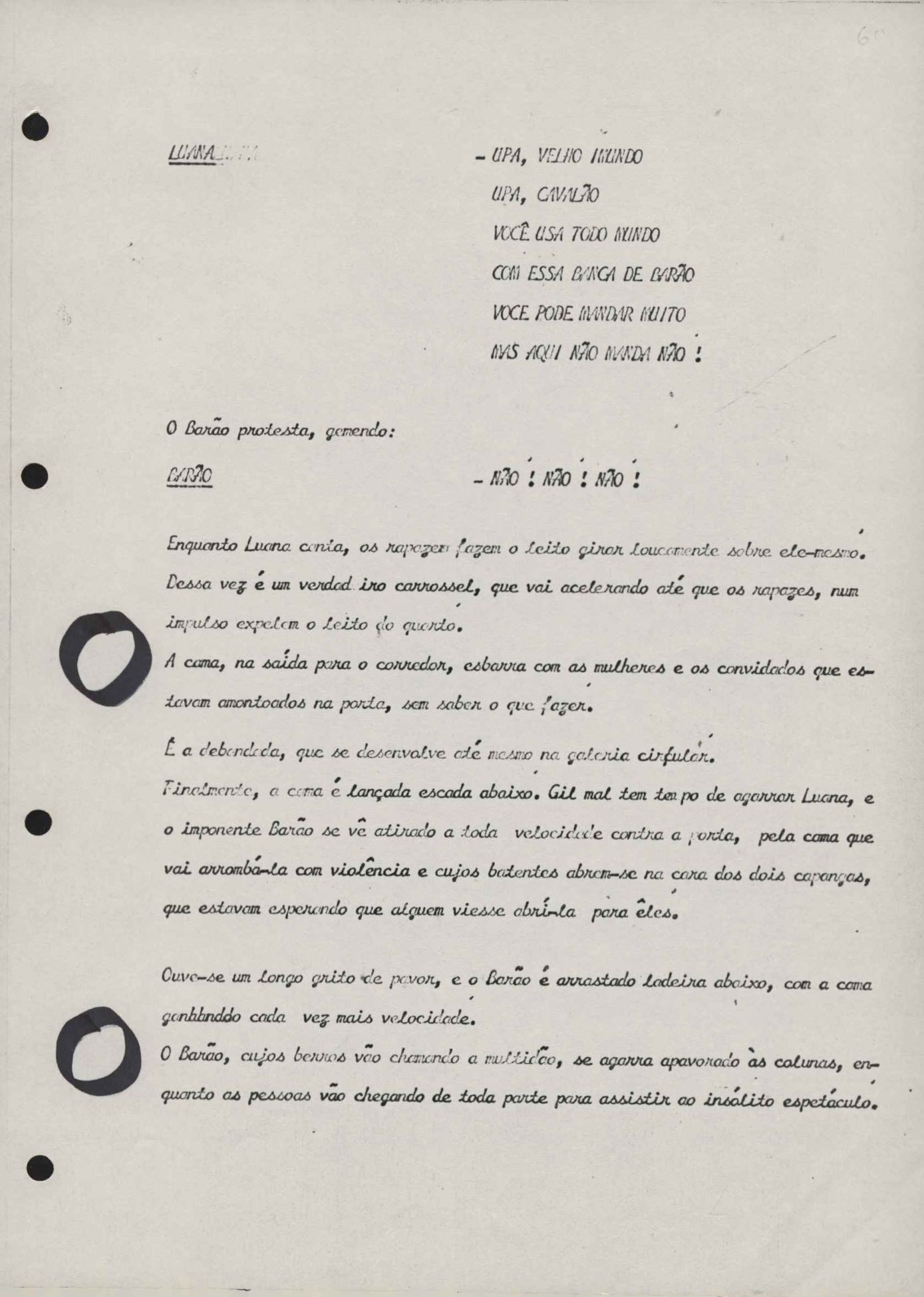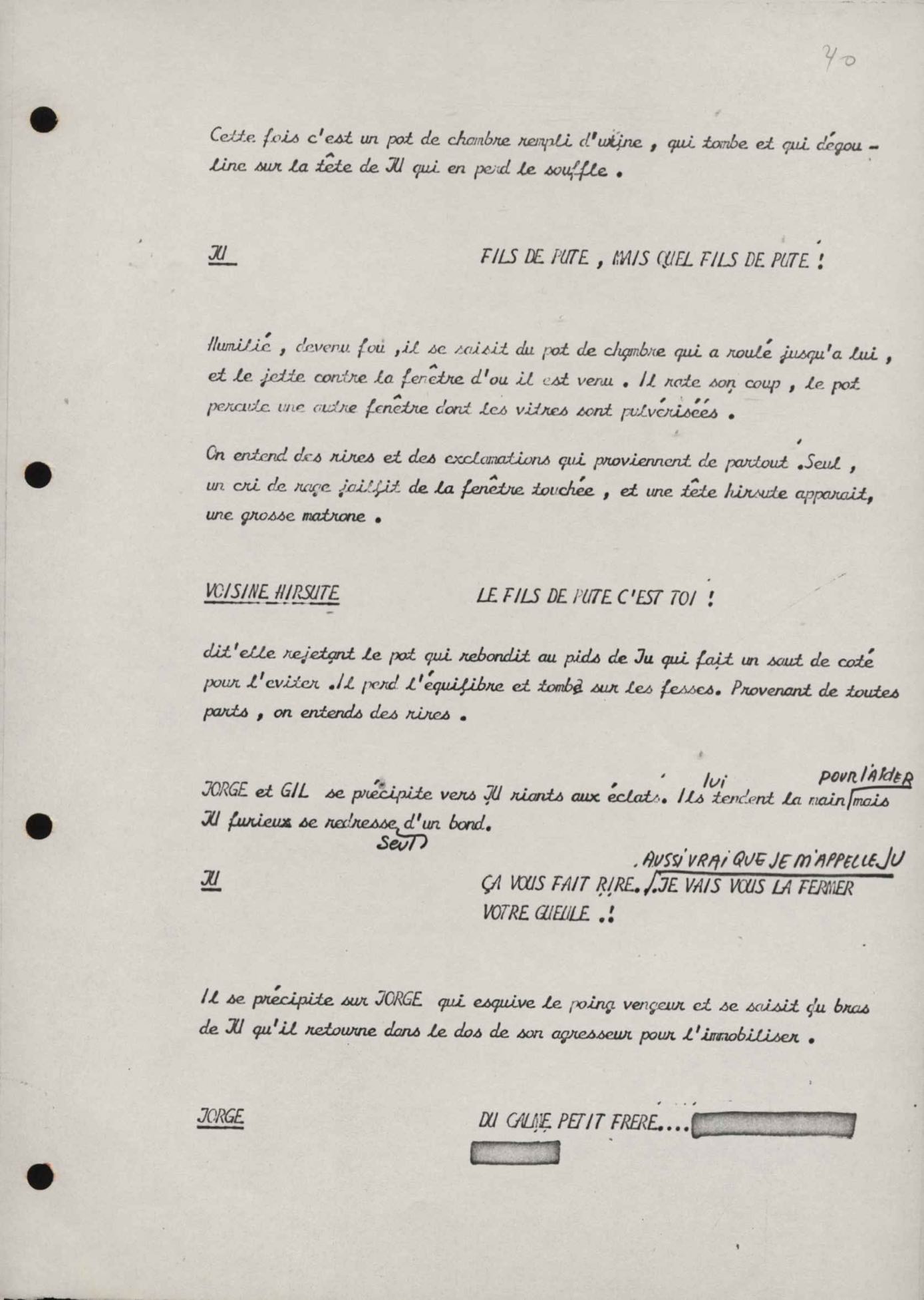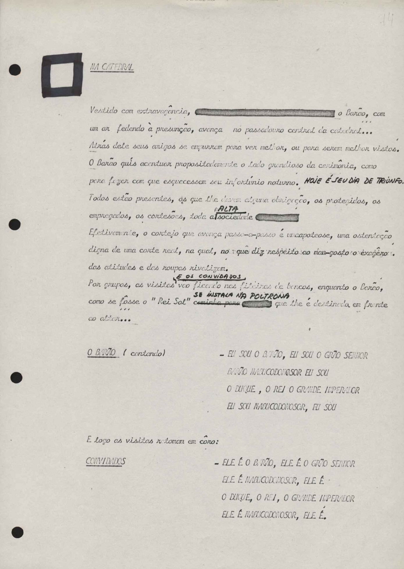 Roteiro cinematográfico (1). Anexo: 1. Duas versões manuscritas e datilografadas; 2. Roteiro decupado em francês; 3. Pulcinela, em francês; 4. "Xaxado de Polichinelo"; 5. Dispersos.