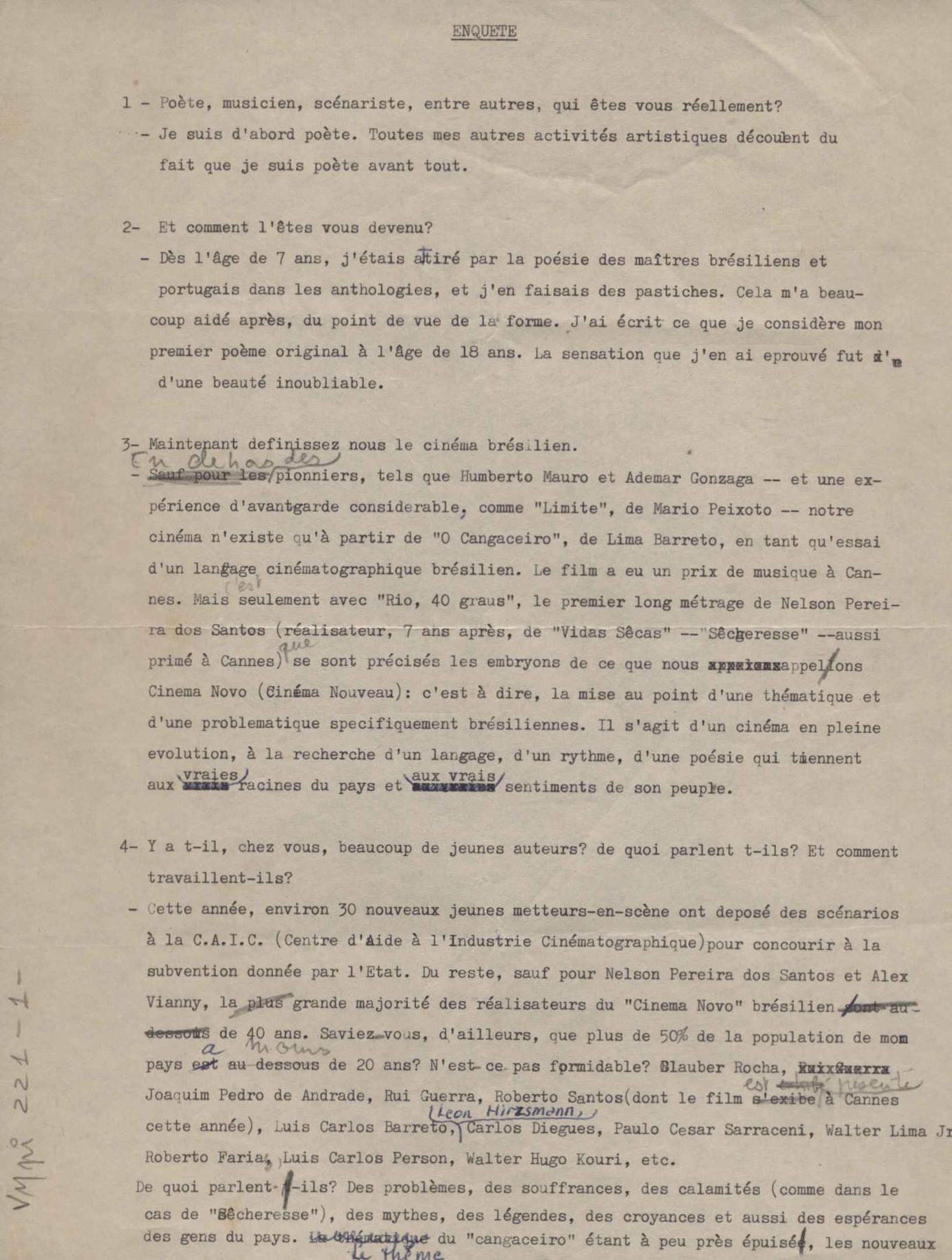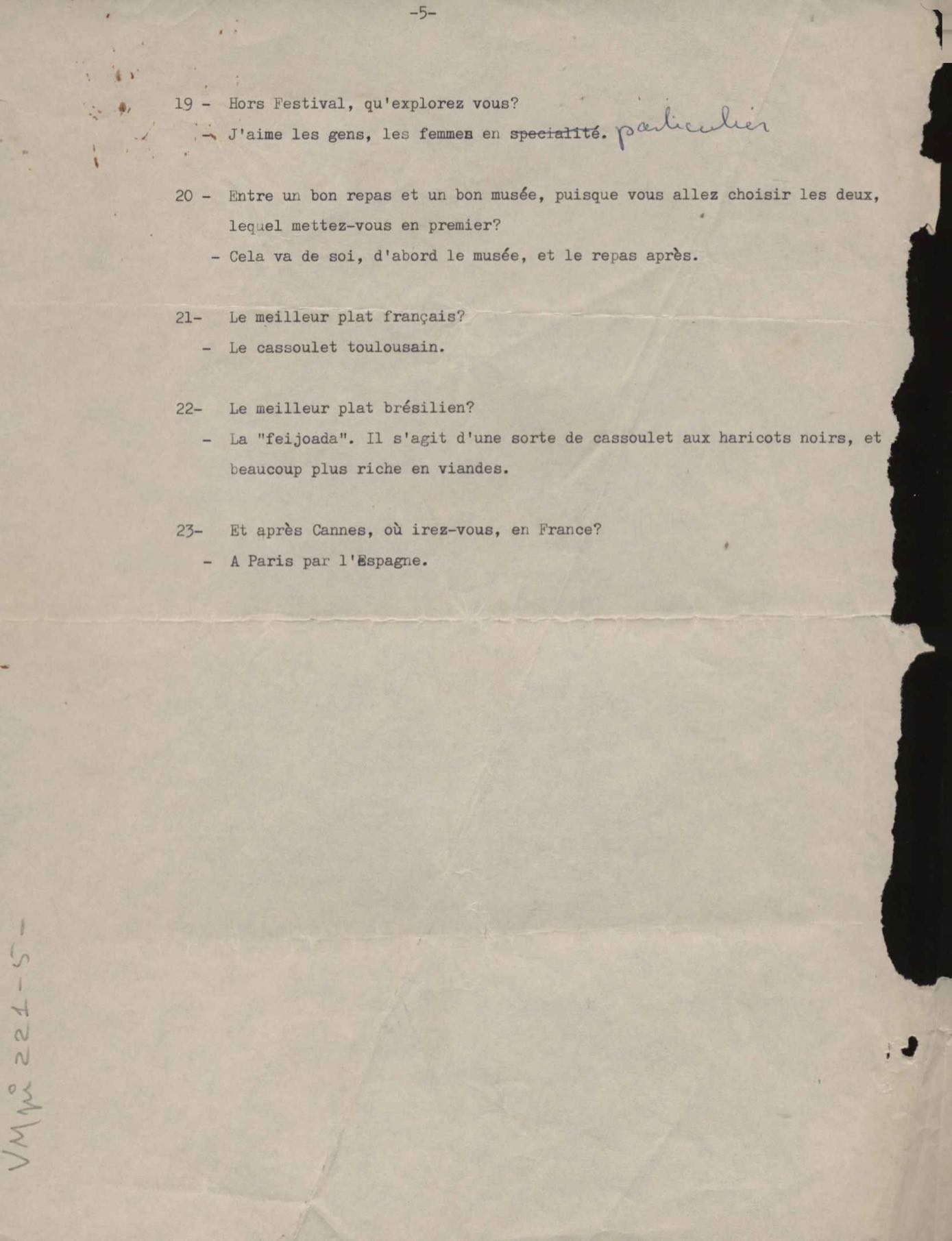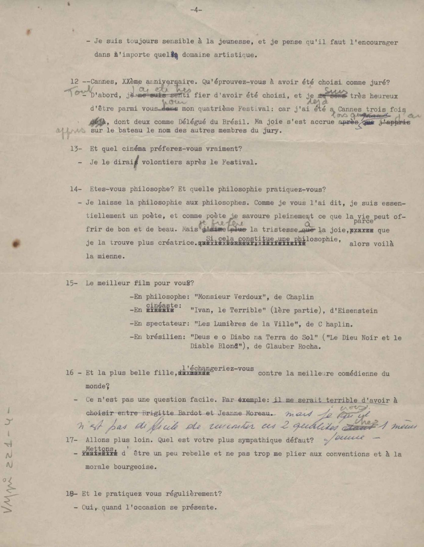 Publicada no Le Bulletin du Festival Internacional de Cannes, 19 maio 1966.