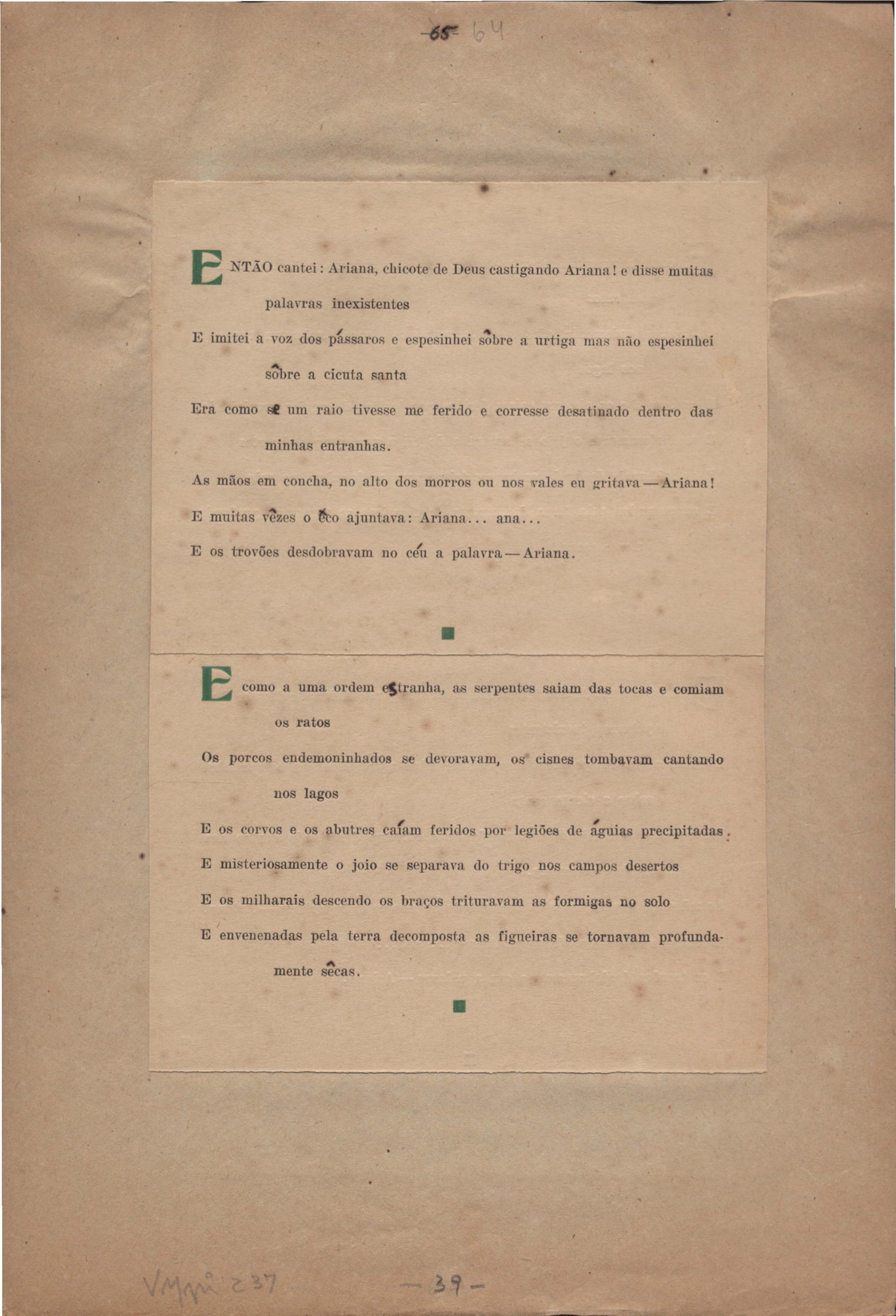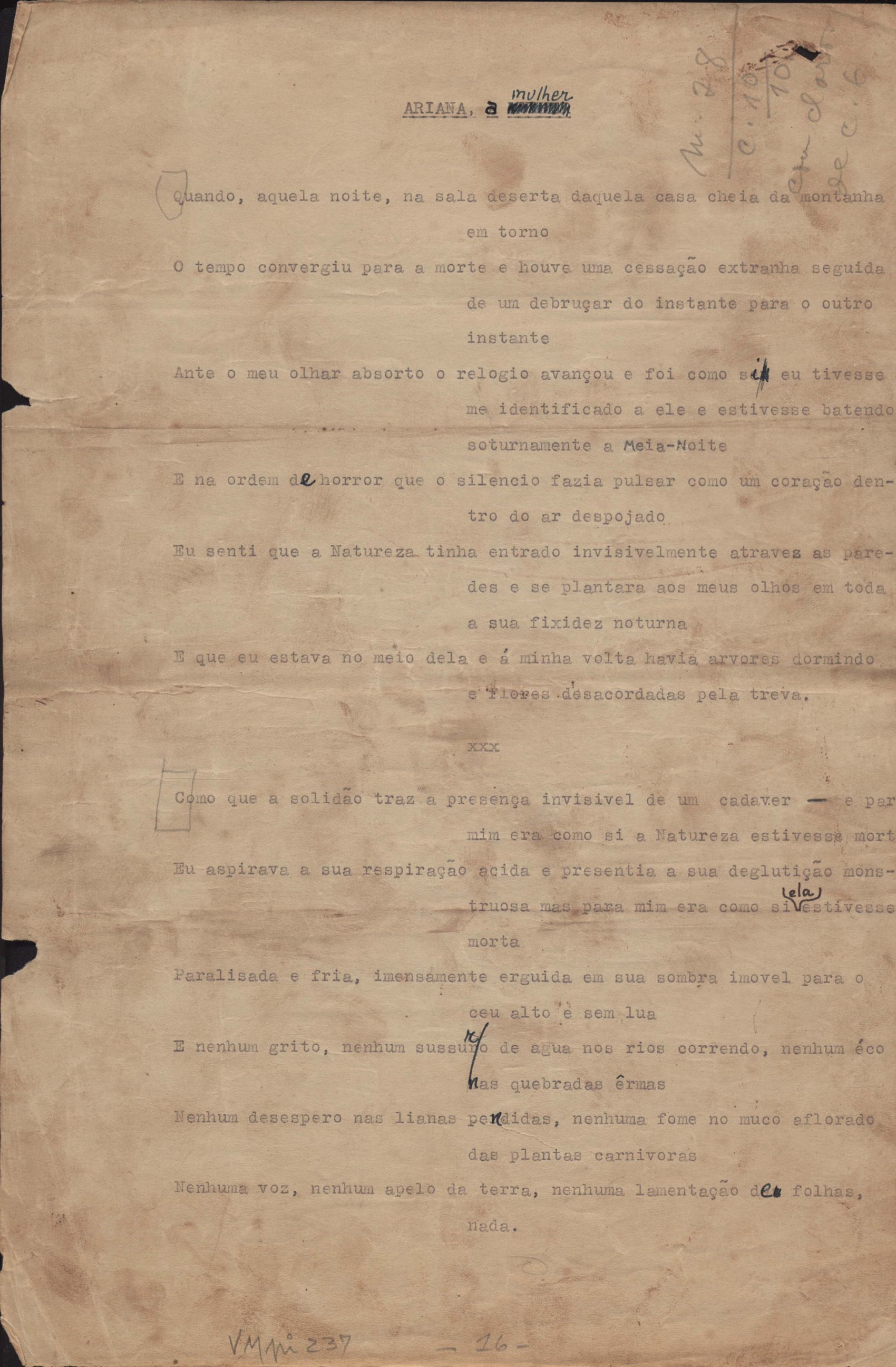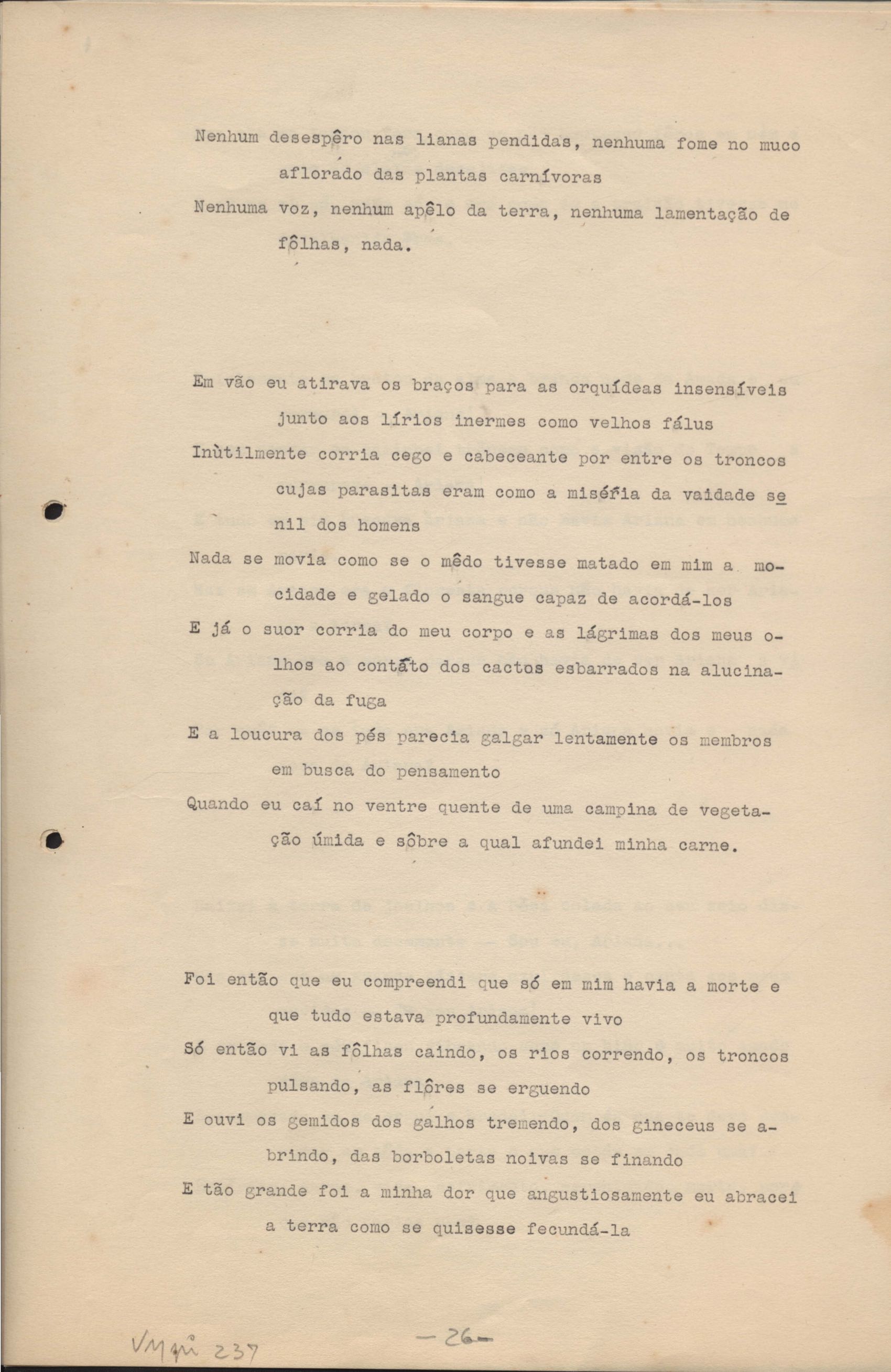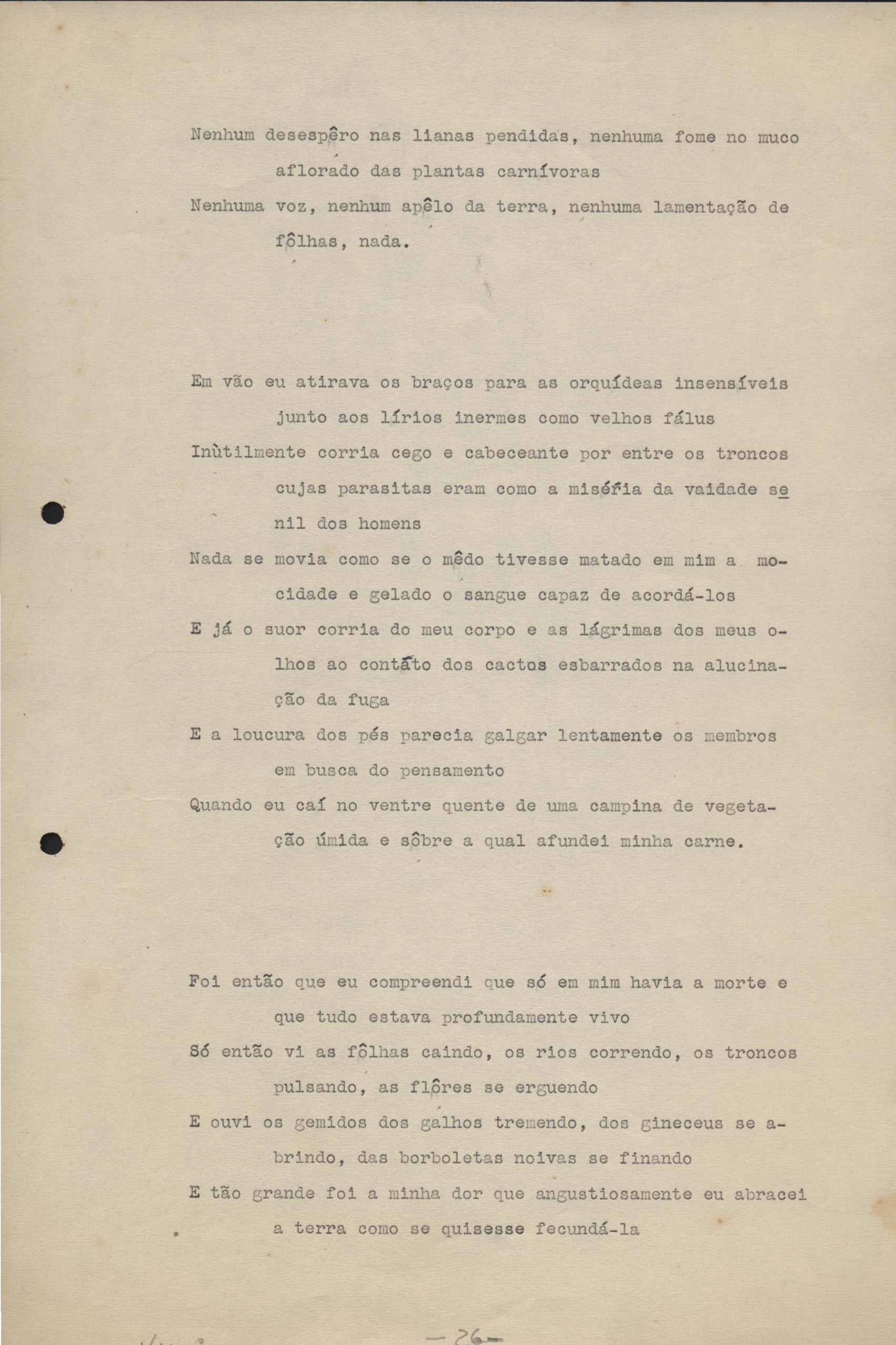 Poema (1). Anexo: 4 versões, sendo uma manuscrita, duas datilografadas e uma prova tipográfica.