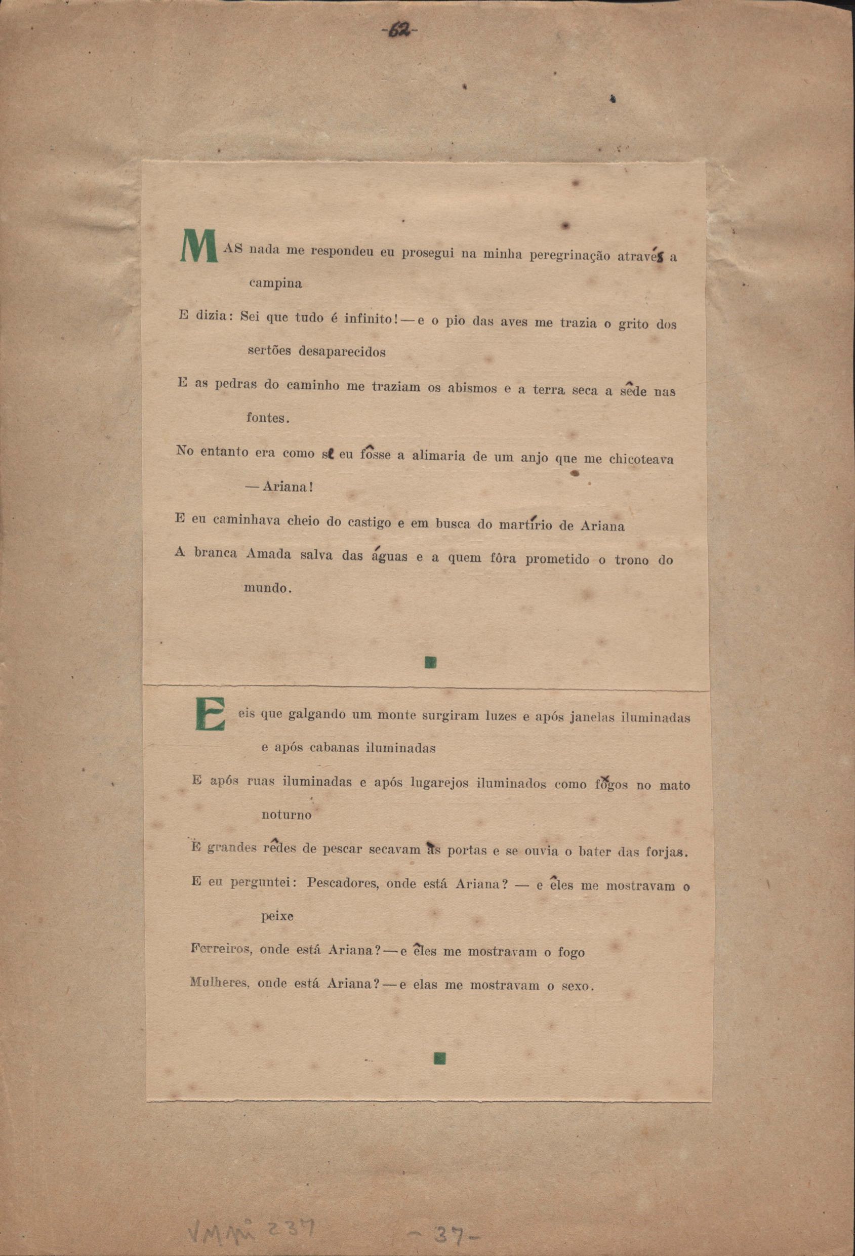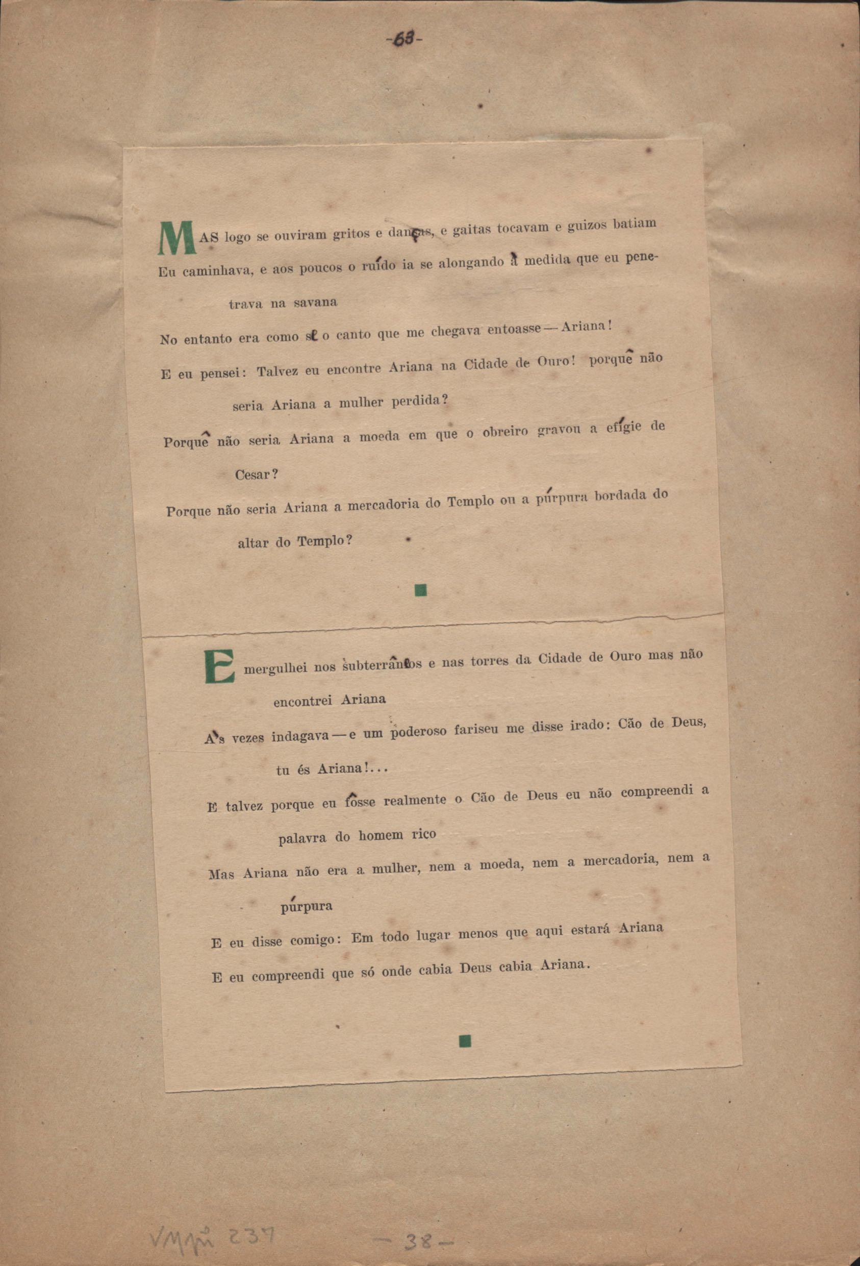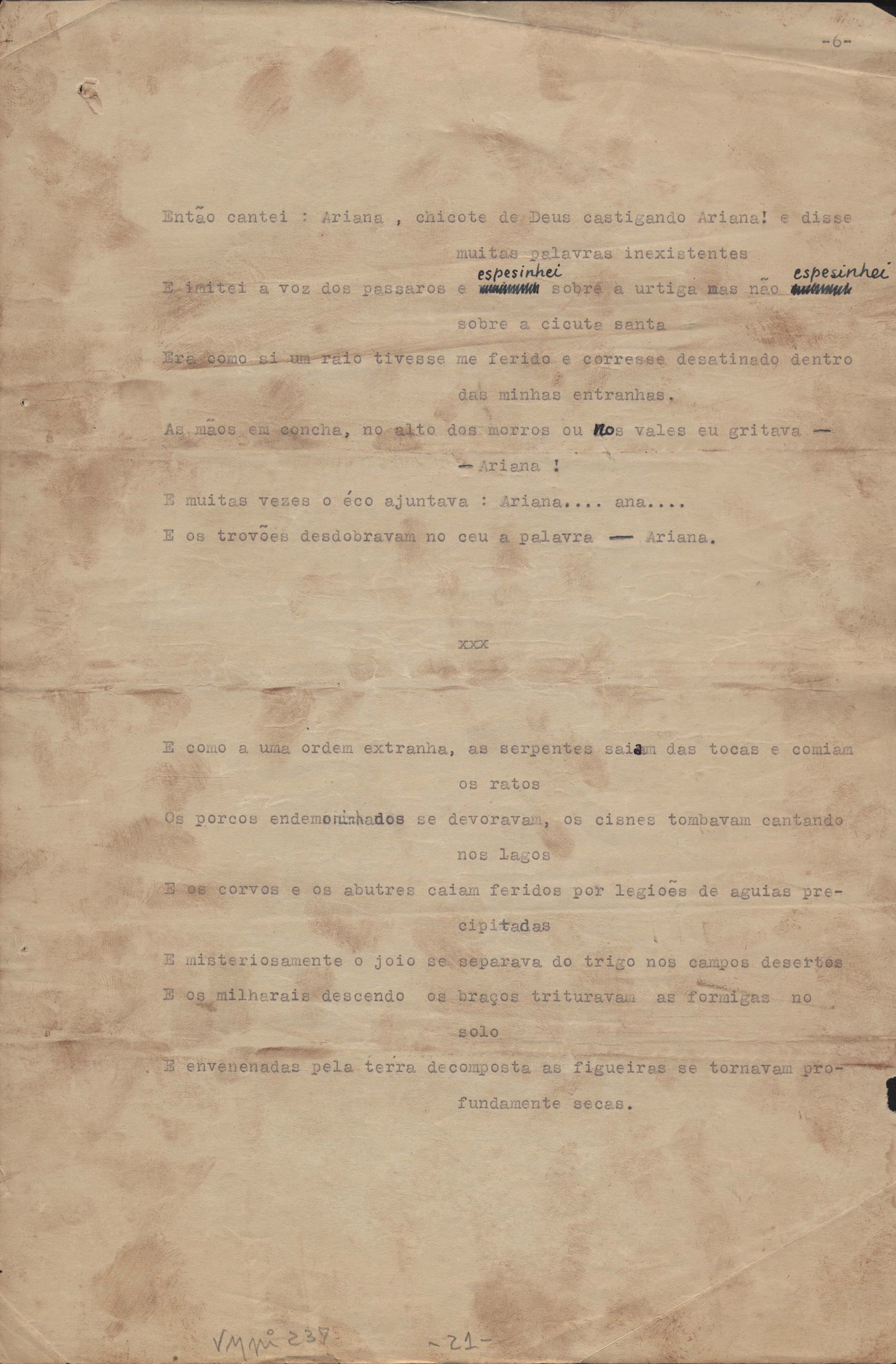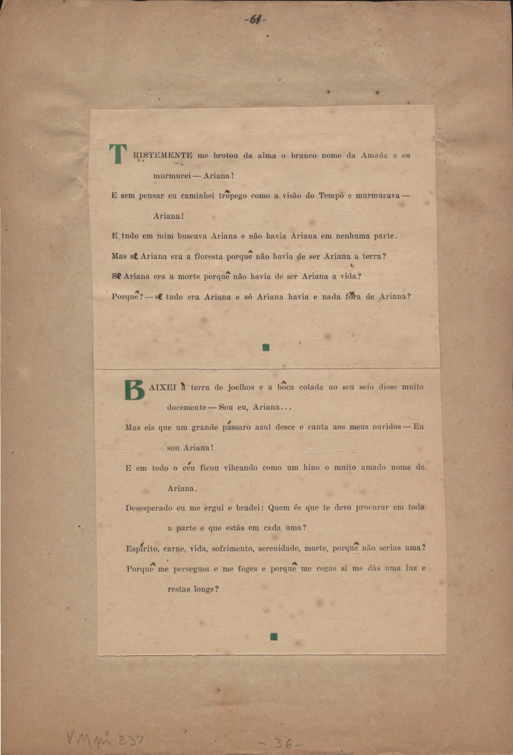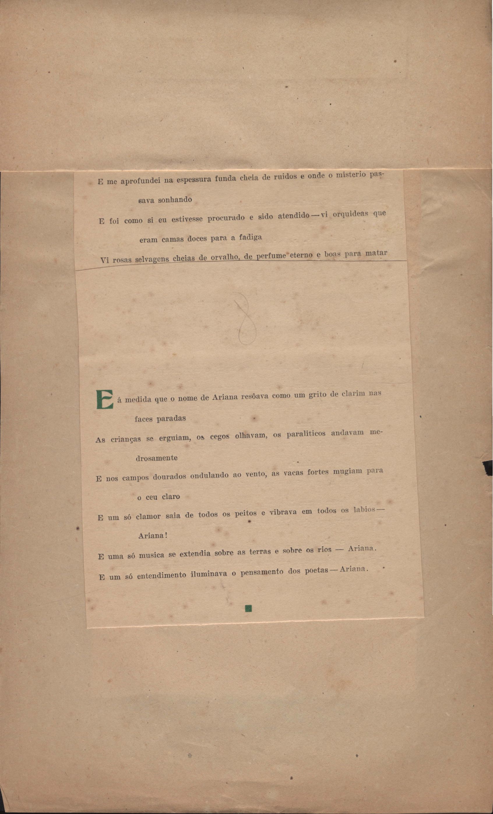 Poema (1). Anexo: 4 versões, sendo uma manuscrita, duas datilografadas e uma prova tipográfica.