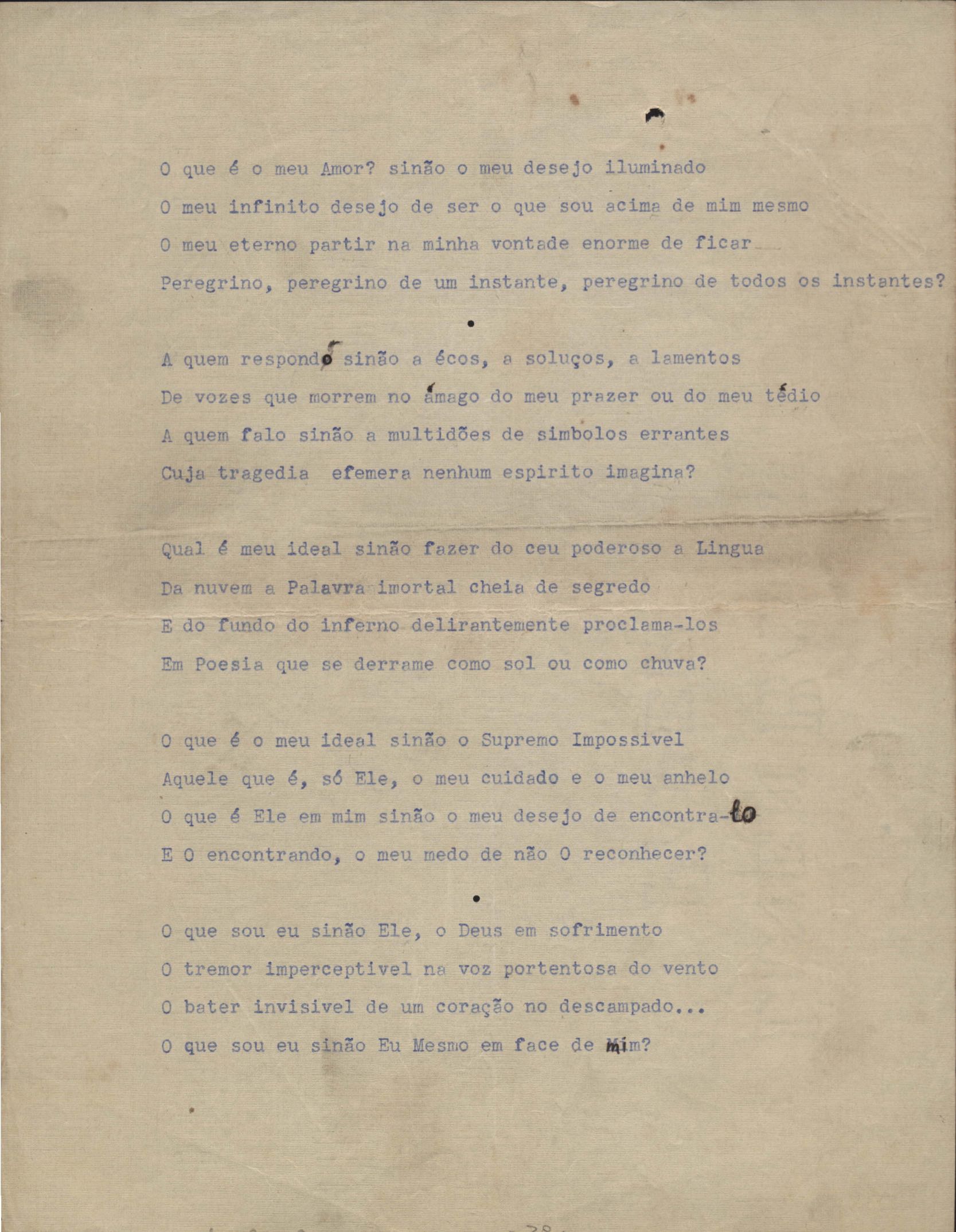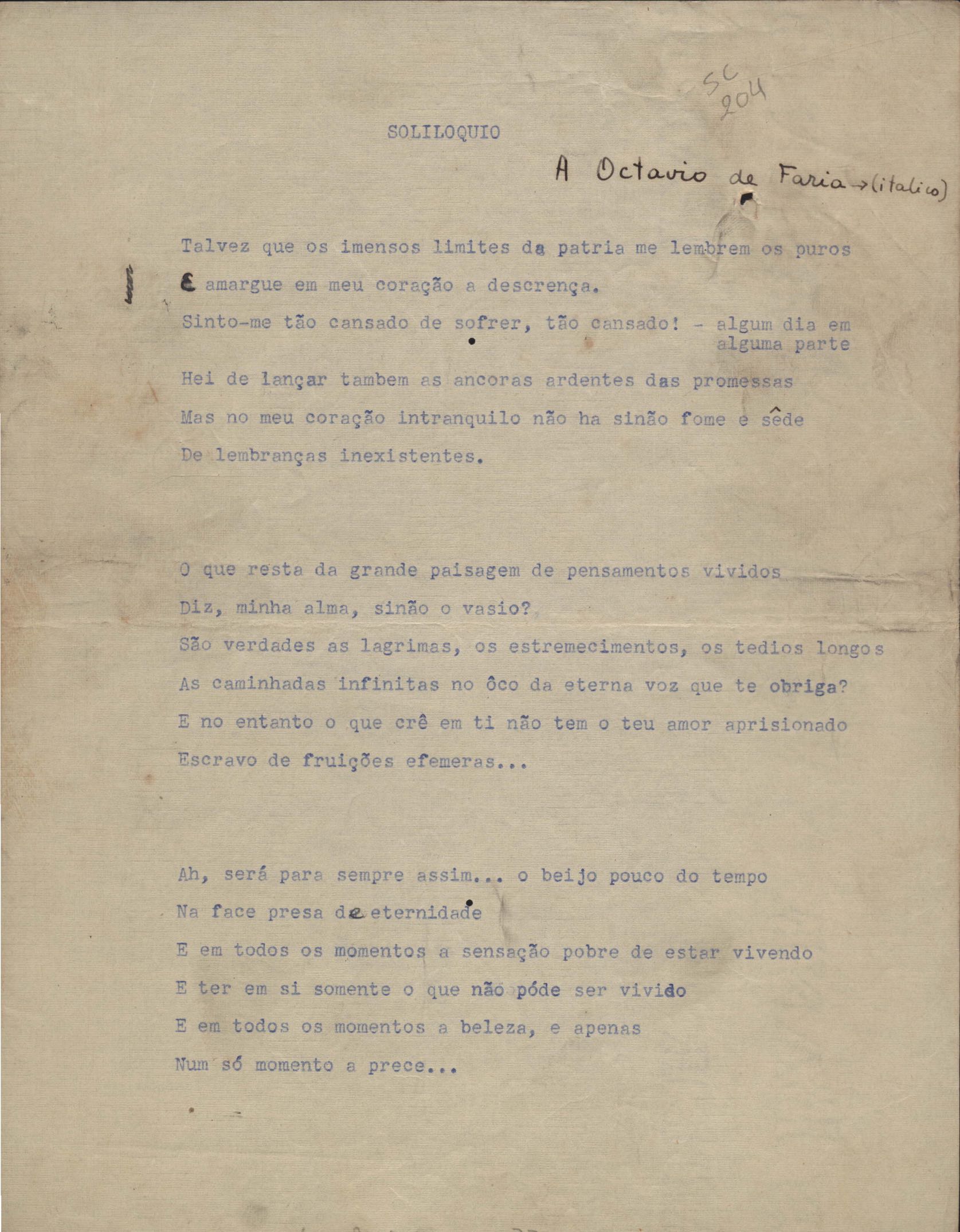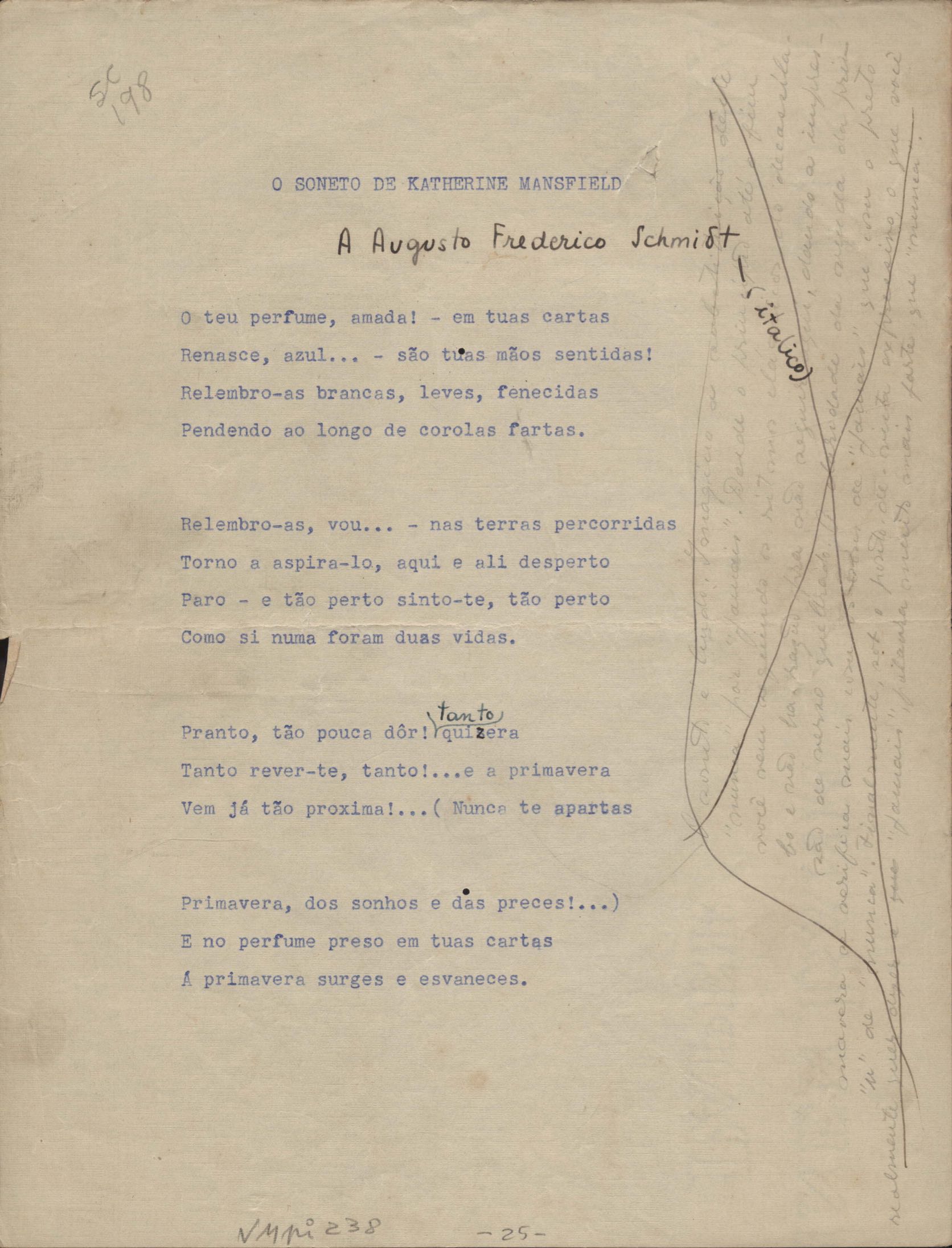 Dossiê dividido em quatro partes. No verso de uma das versões de "Soneto de agosto" há o poema "Em casa de Portinari", e junto com "Soneto de inspiração" há o "Soneto de criação".