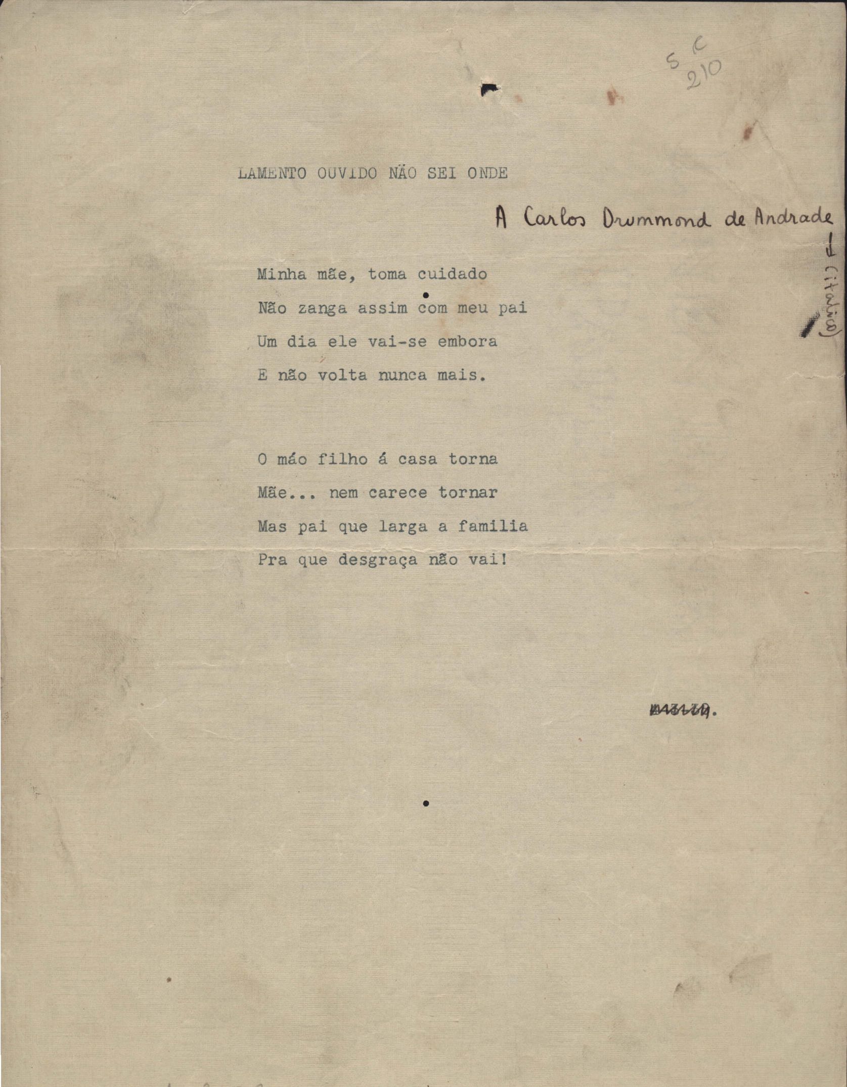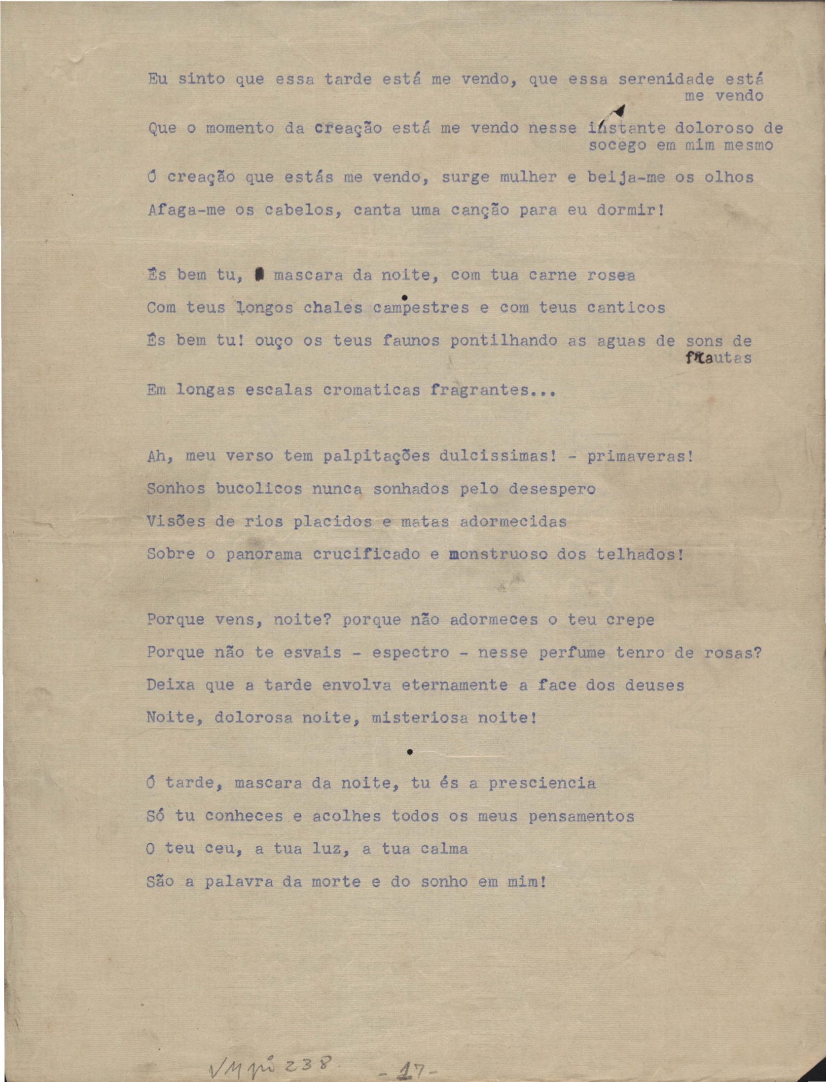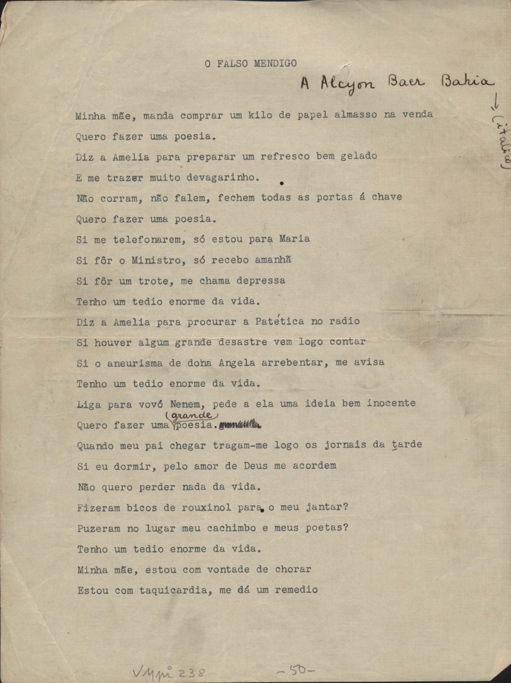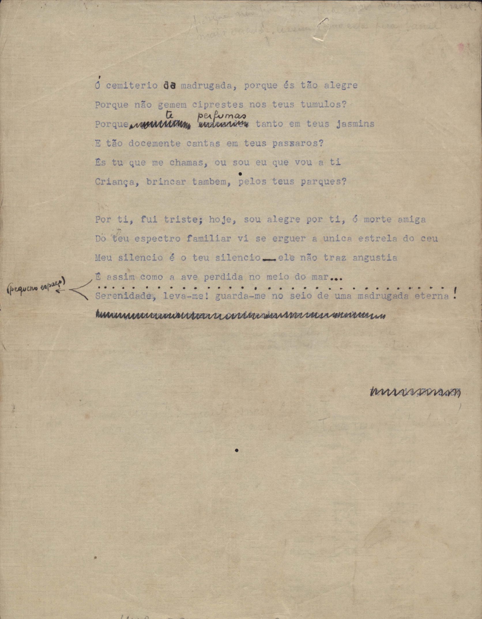 Dossiê dividido em quatro partes. No verso de uma das versões de "Soneto de agosto" há o poema "Em casa de Portinari", e junto com "Soneto de inspiração" há o "Soneto de criação".