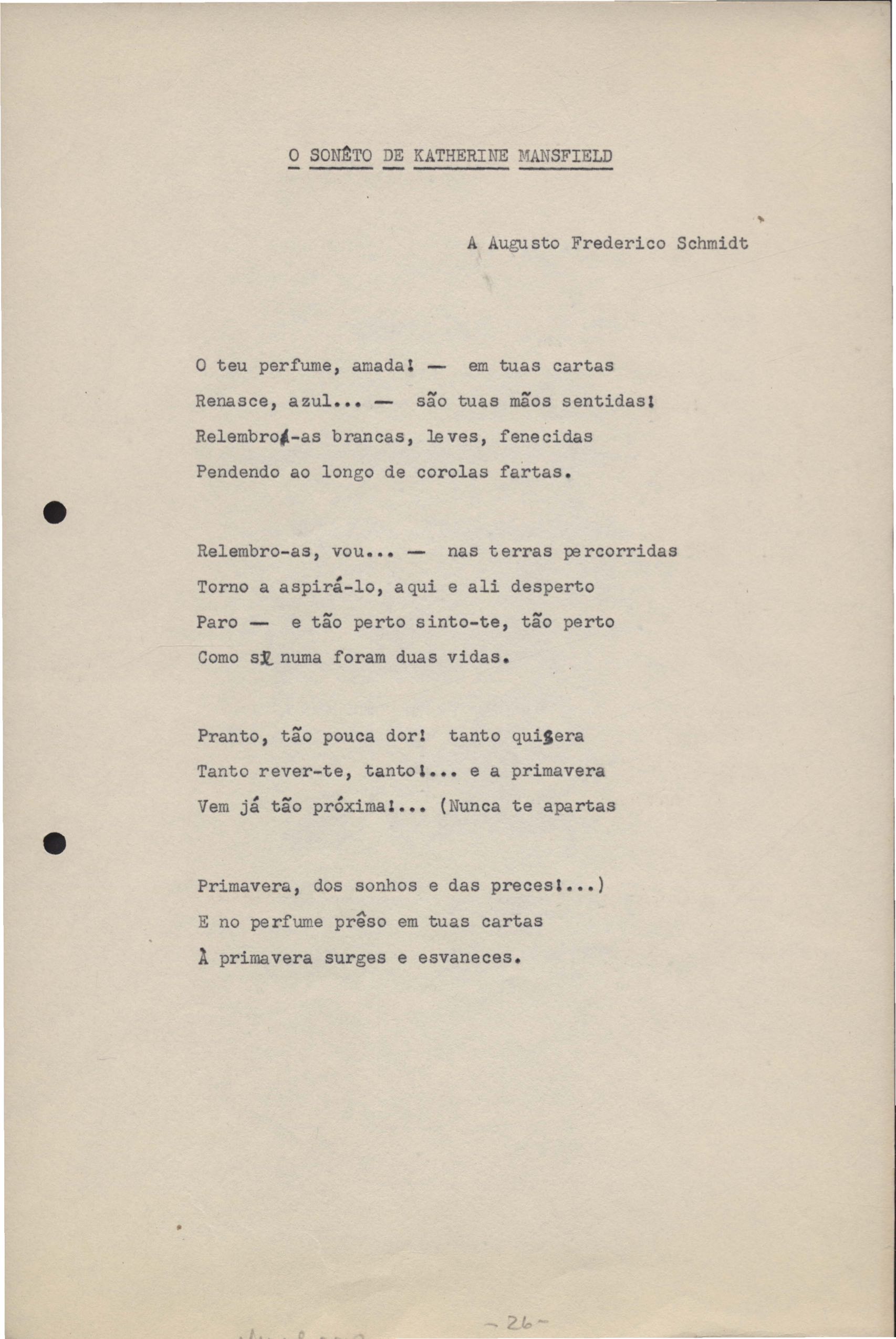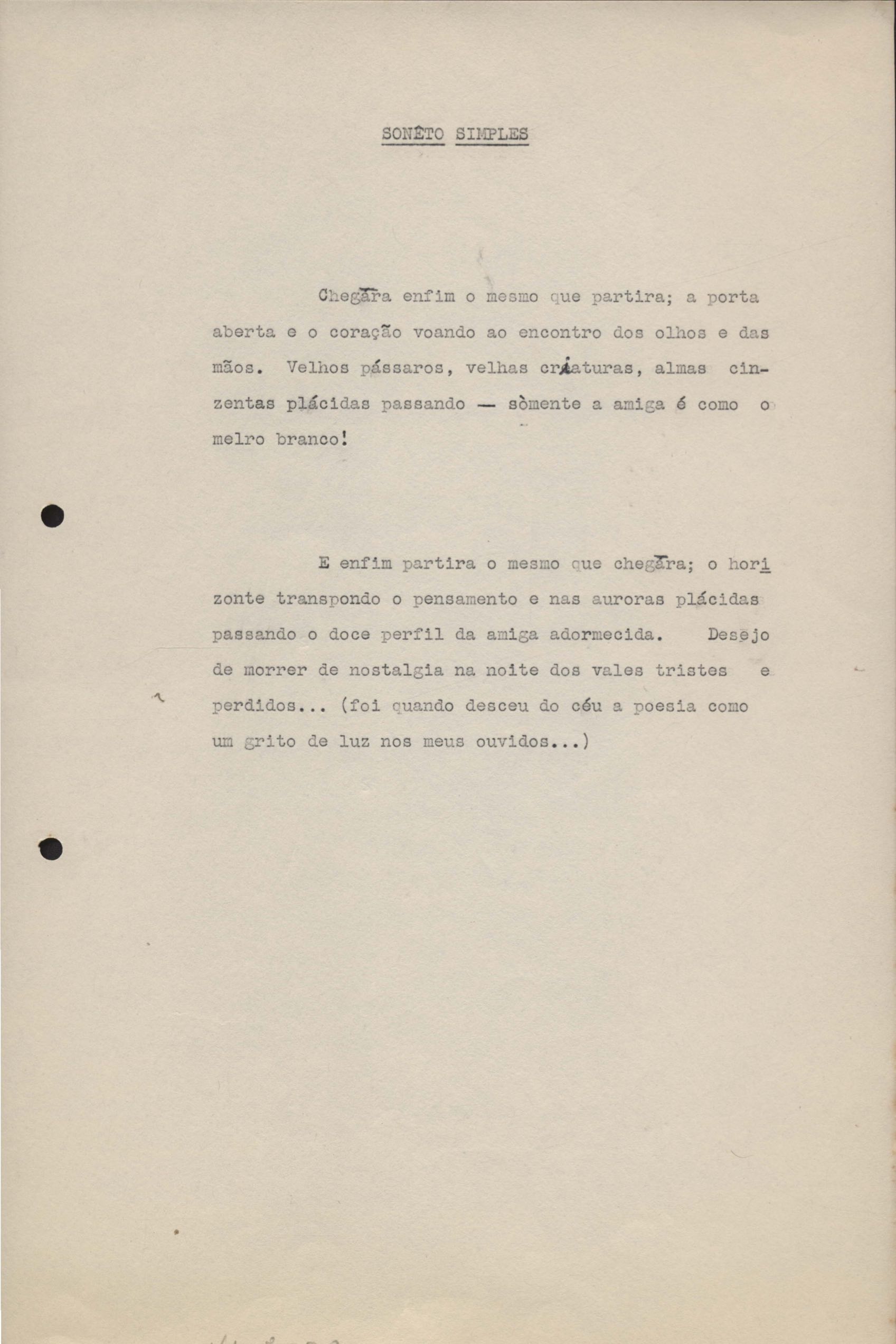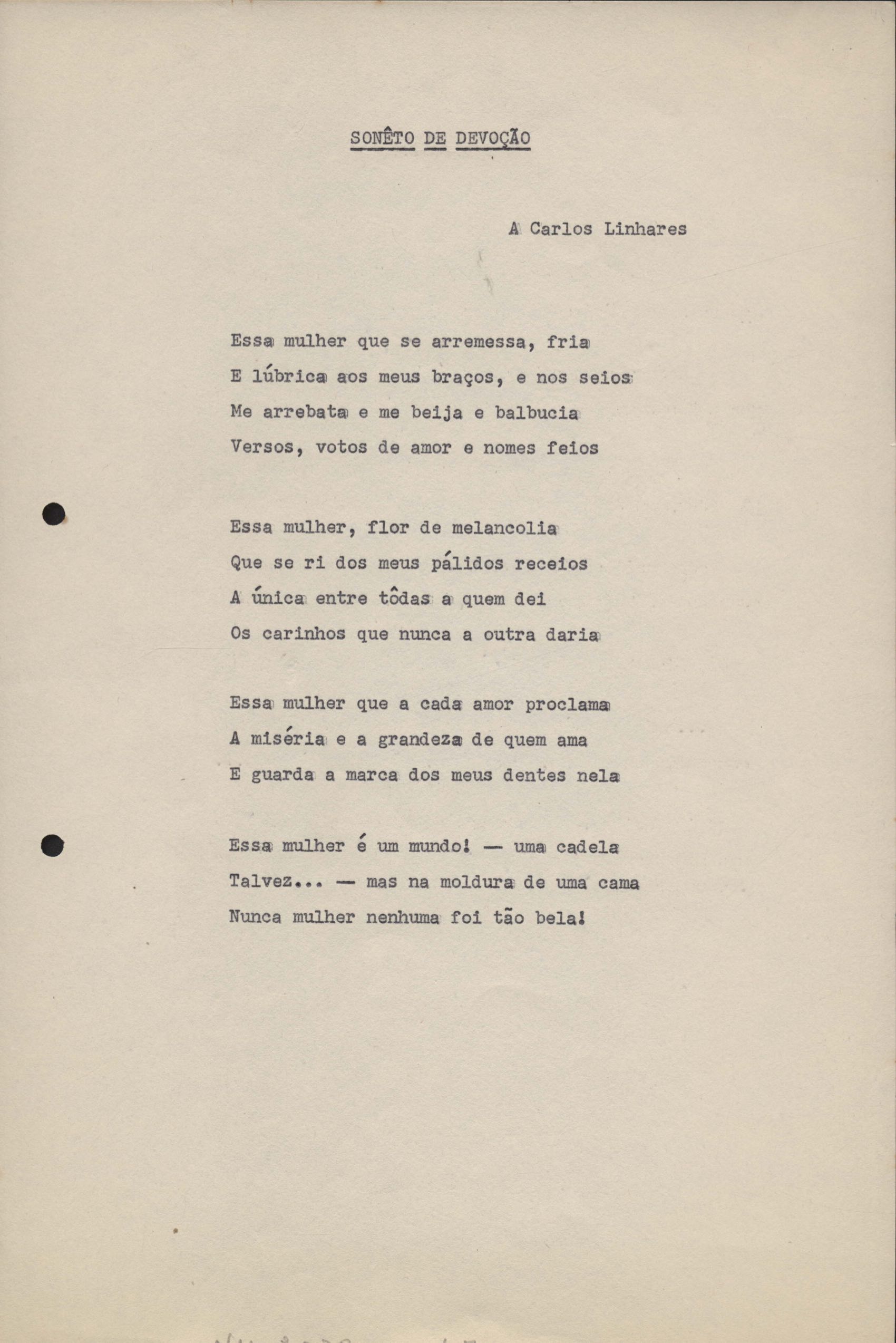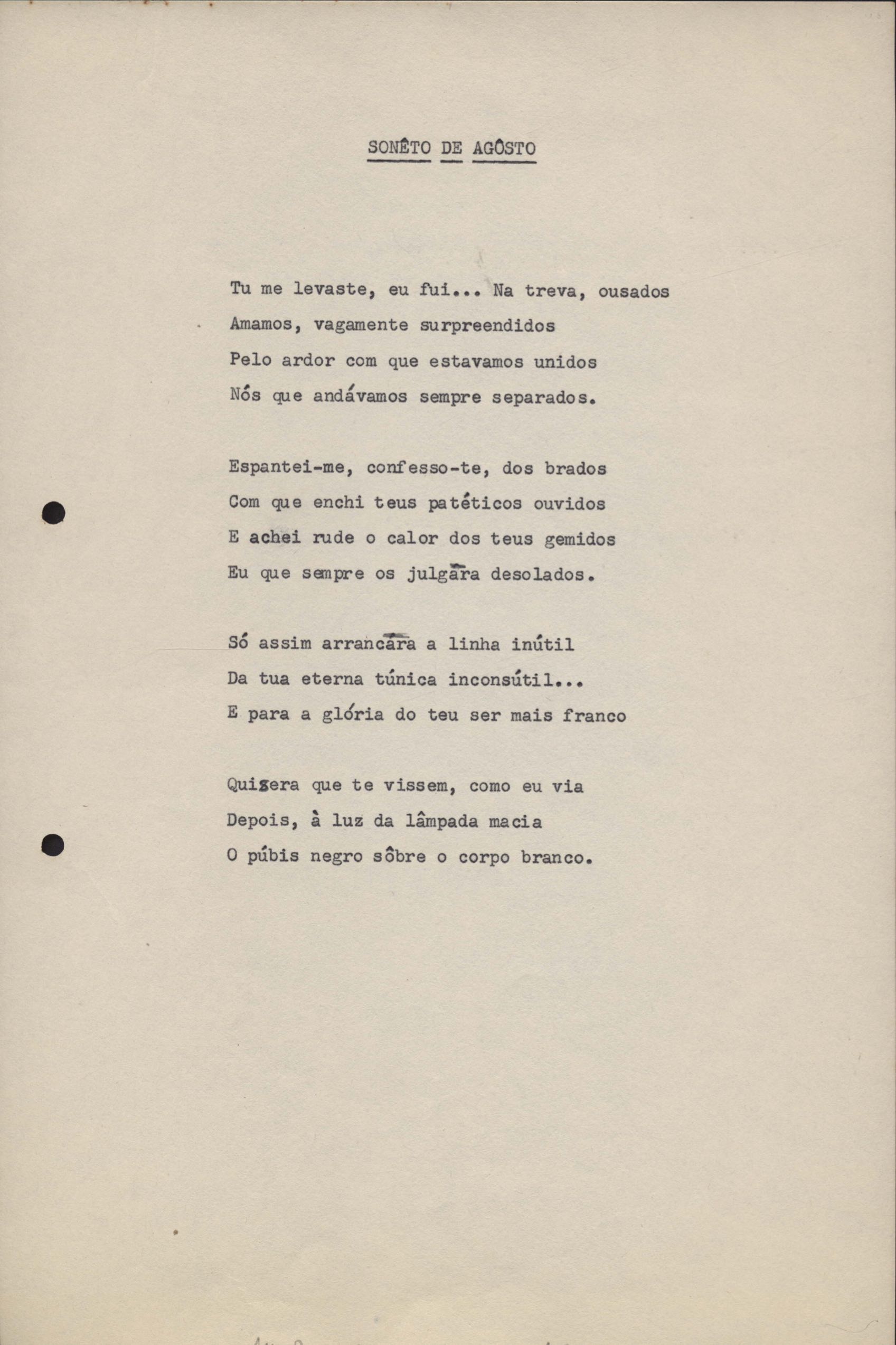 Dossiê dividido em quatro partes. No verso de uma das versões de "Soneto de agosto" há o poema "Em casa de Portinari", e junto com "Soneto de inspiração" há o "Soneto de criação".