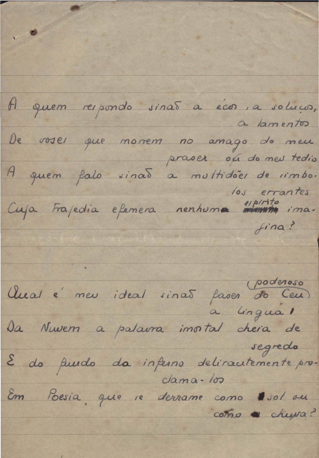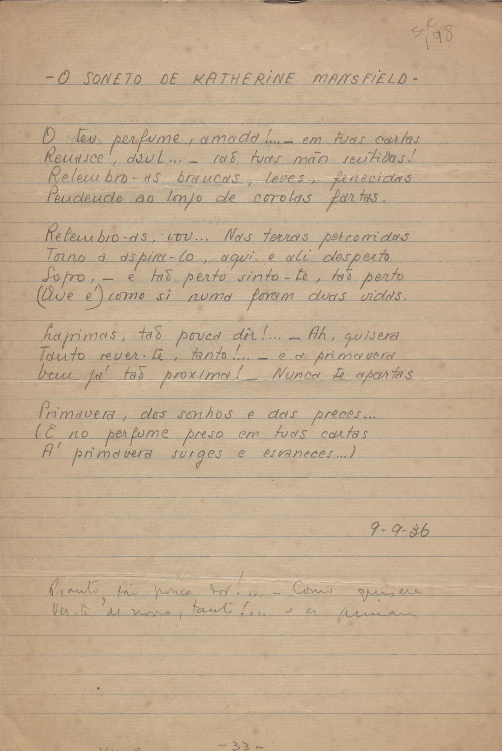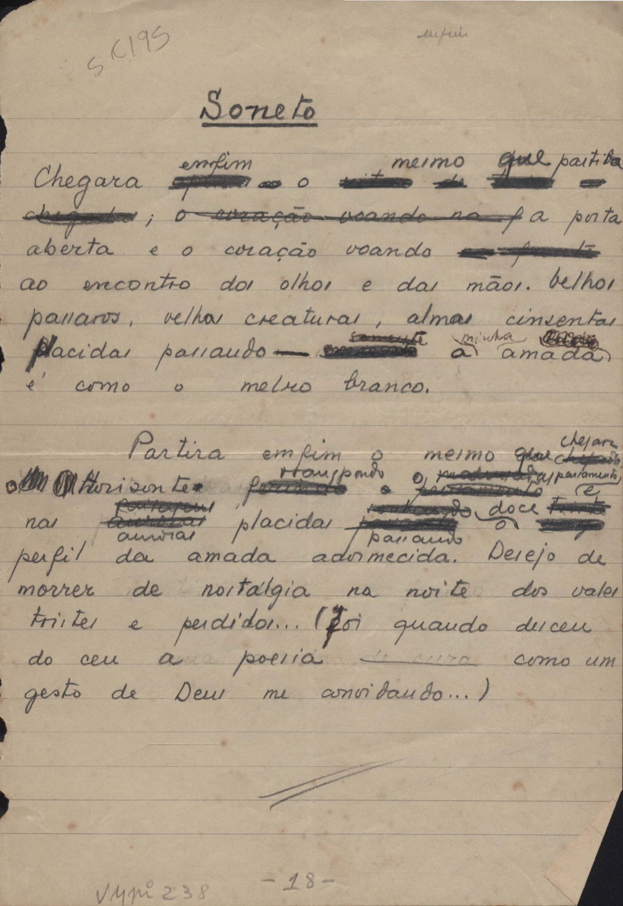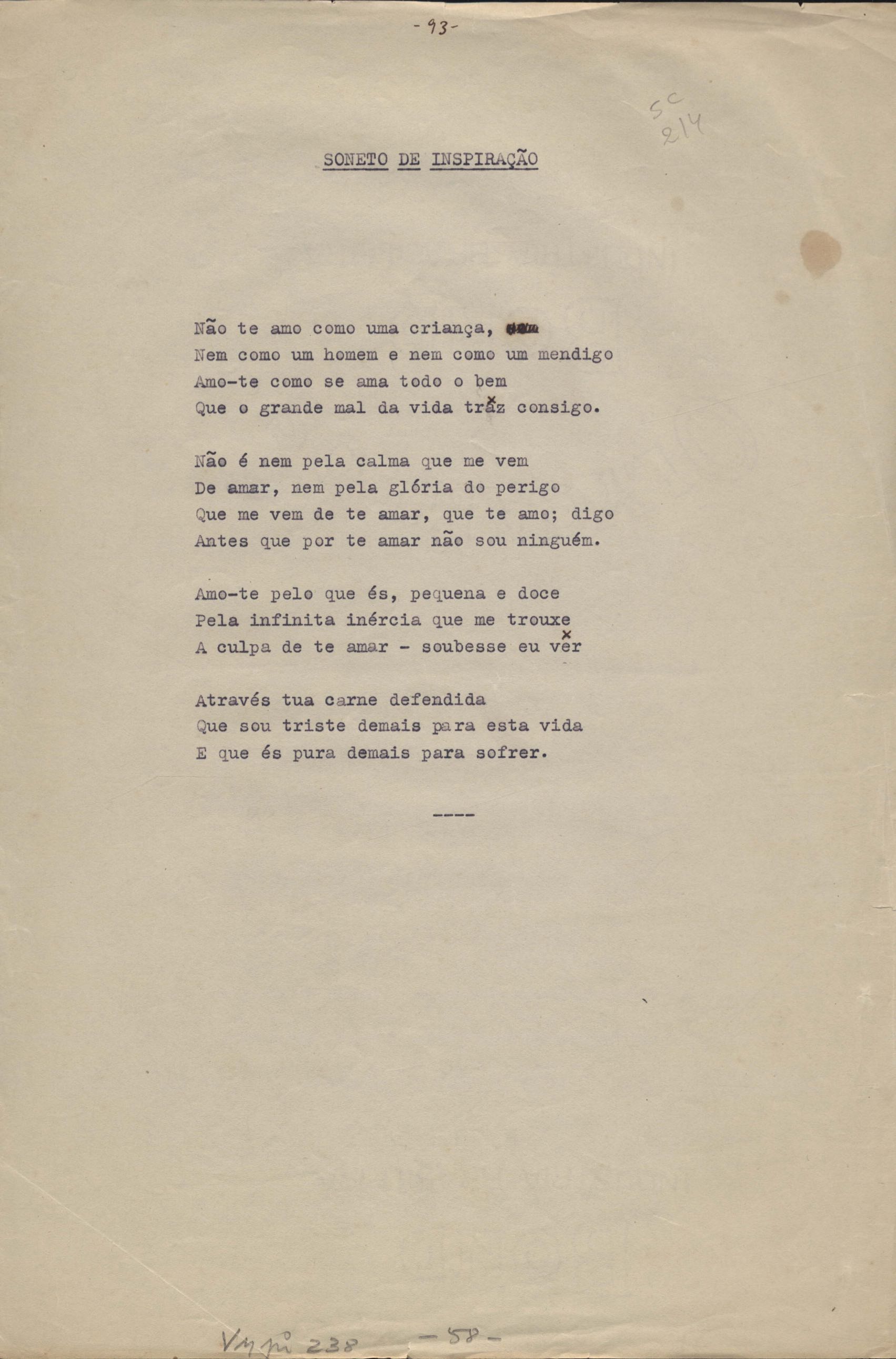 Dossiê dividido em quatro partes. No verso de uma das versões de "Soneto de agosto" há o poema "Em casa de Portinari", e junto com "Soneto de inspiração" há o "Soneto de criação".