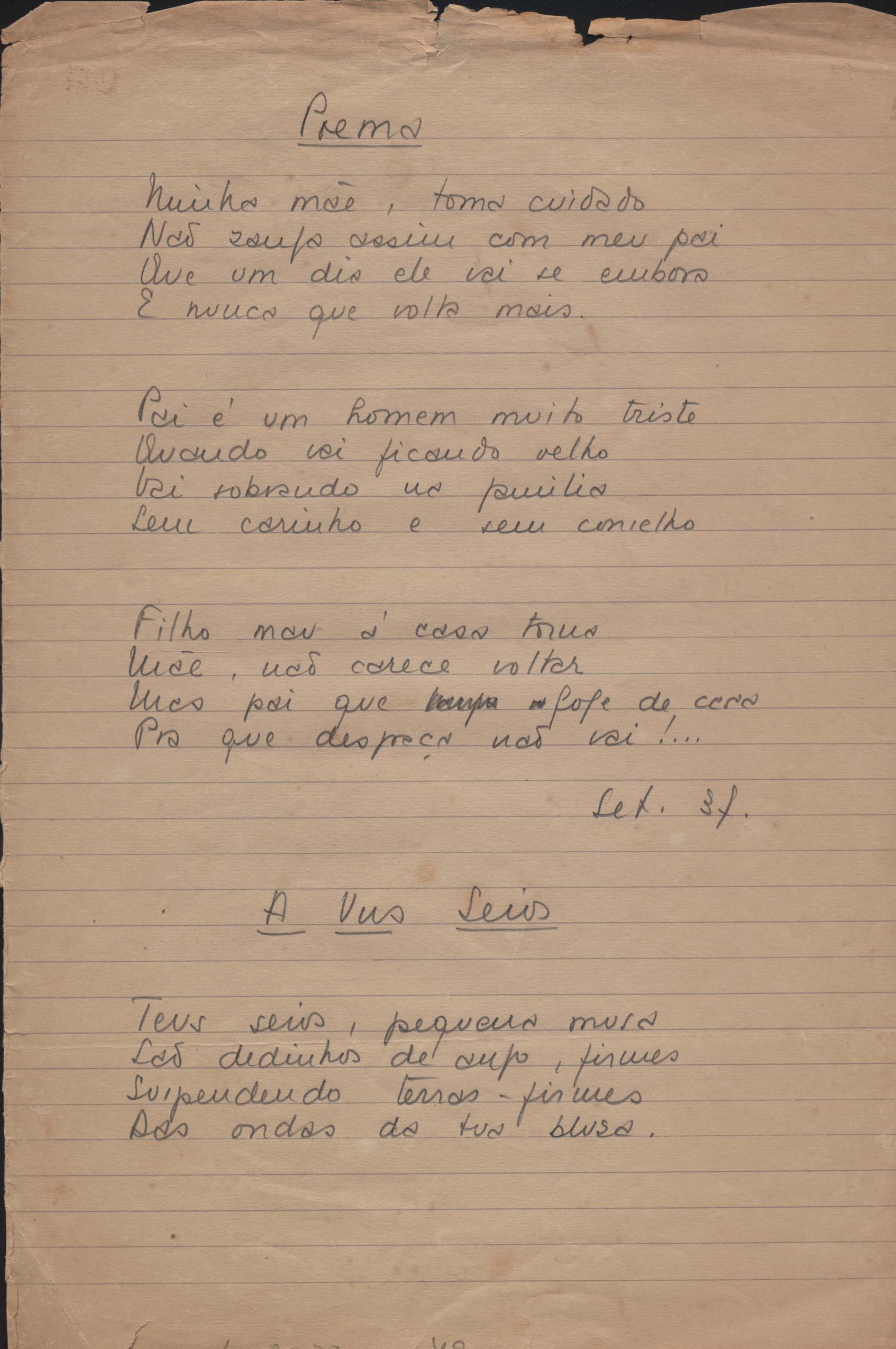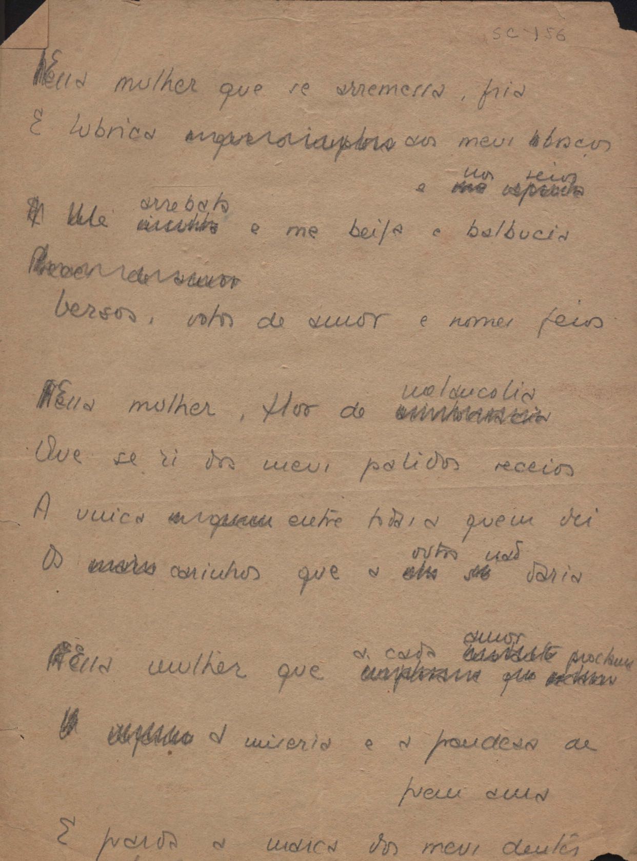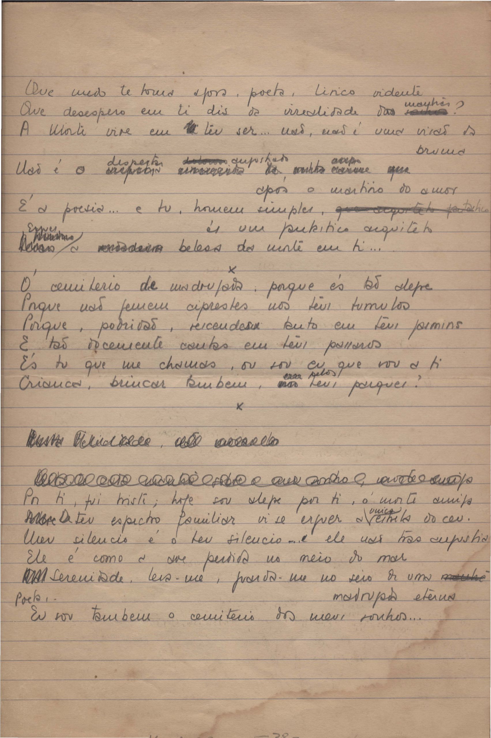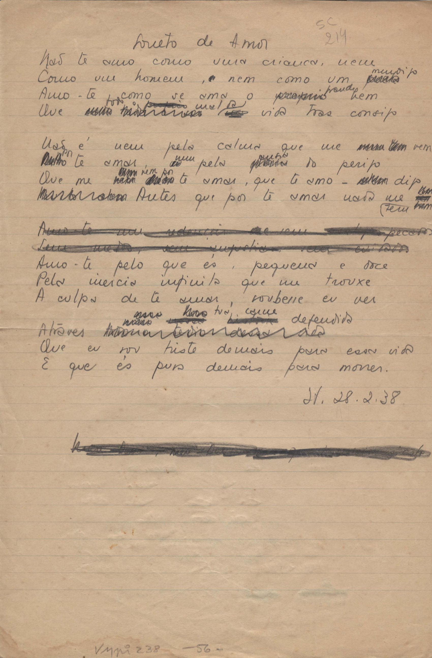 Dossiê dividido em quatro partes. No verso de uma das versões de "Soneto de agosto" há o poema "Em casa de Portinari", e junto com "Soneto de inspiração" há o "Soneto de criação".