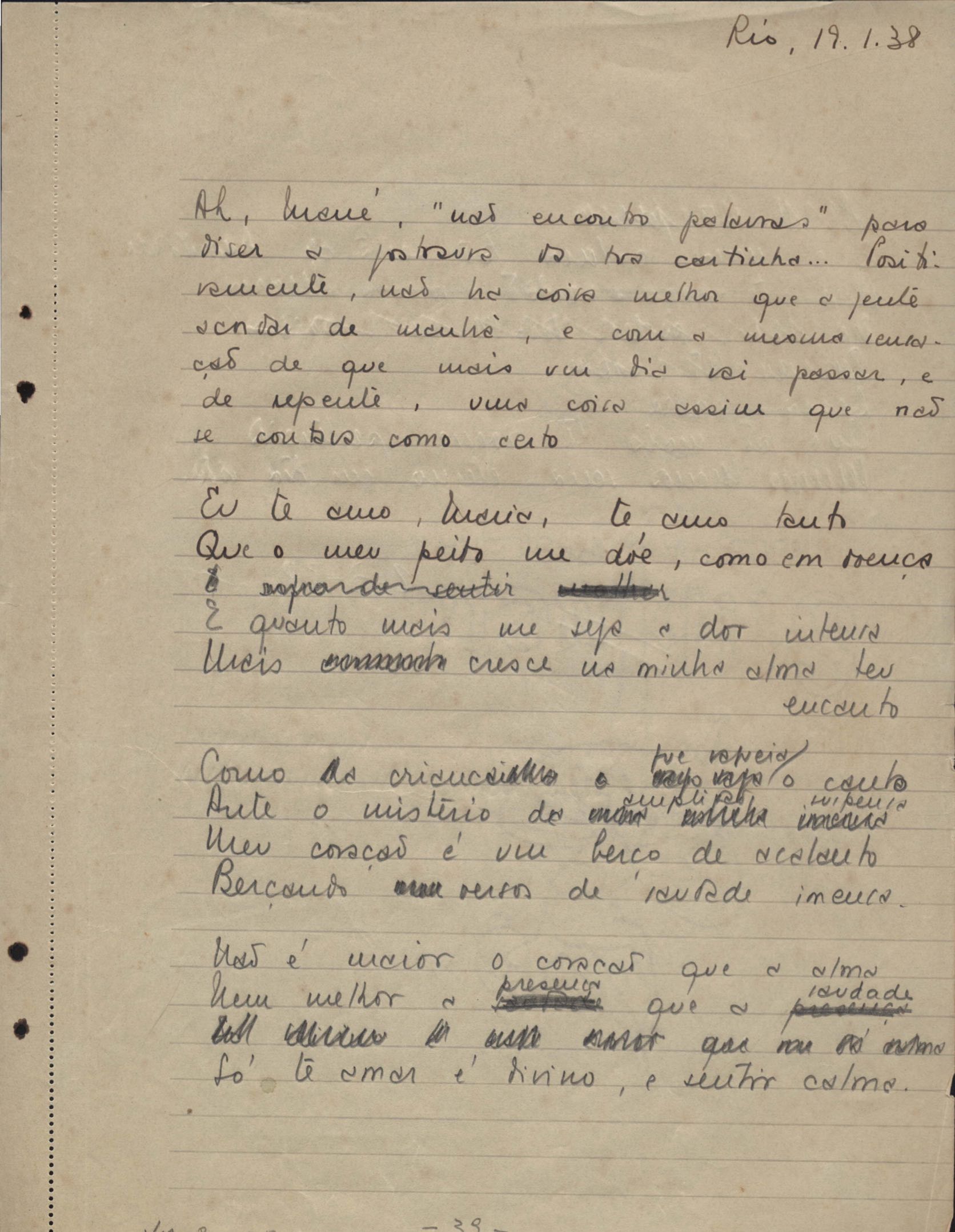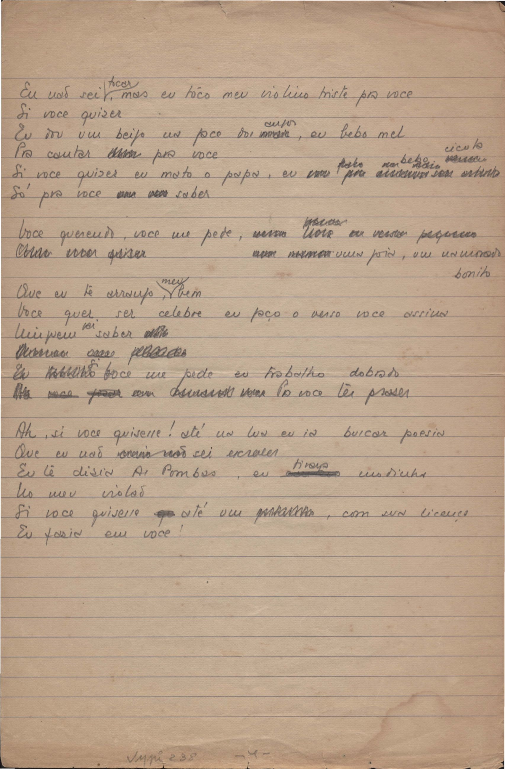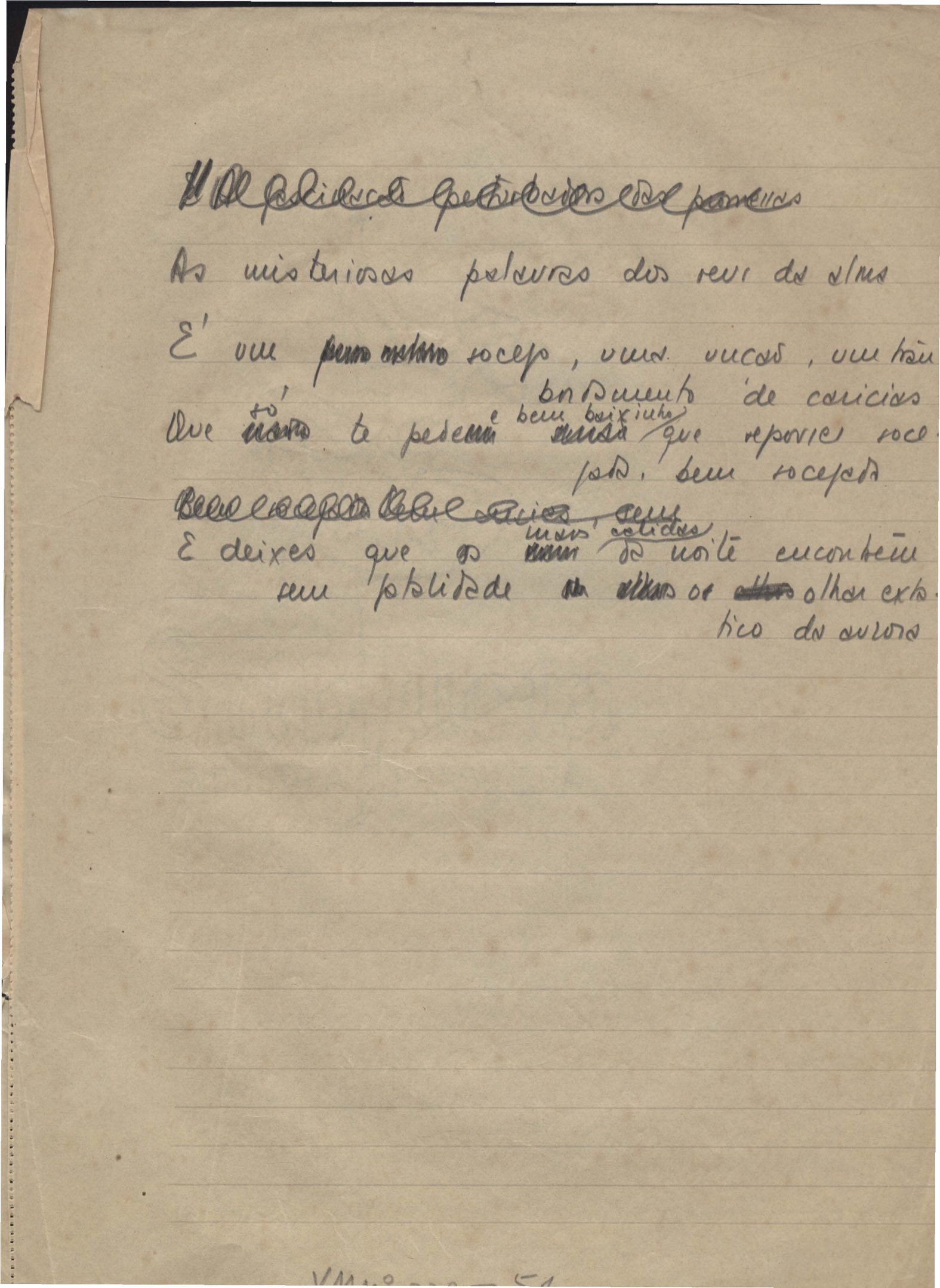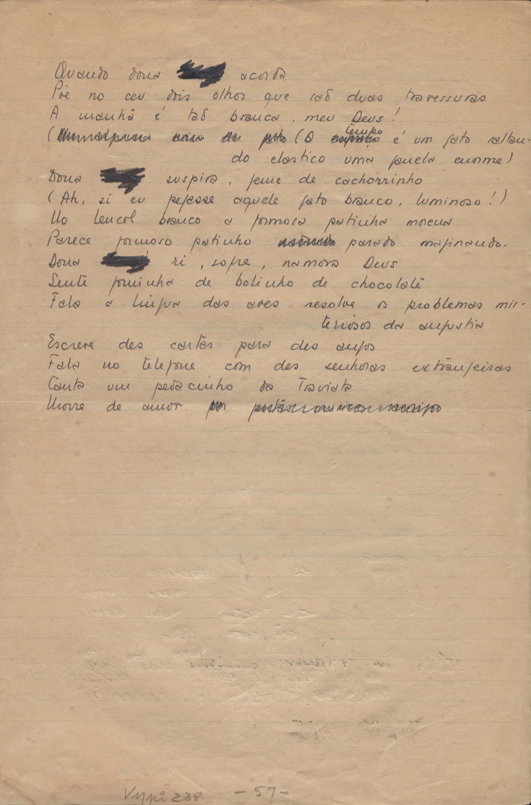 Dossiê dividido em quatro partes. No verso de uma das versões de "Soneto de agosto" há o poema "Em casa de Portinari", e junto com "Soneto de inspiração" há o "Soneto de criação".