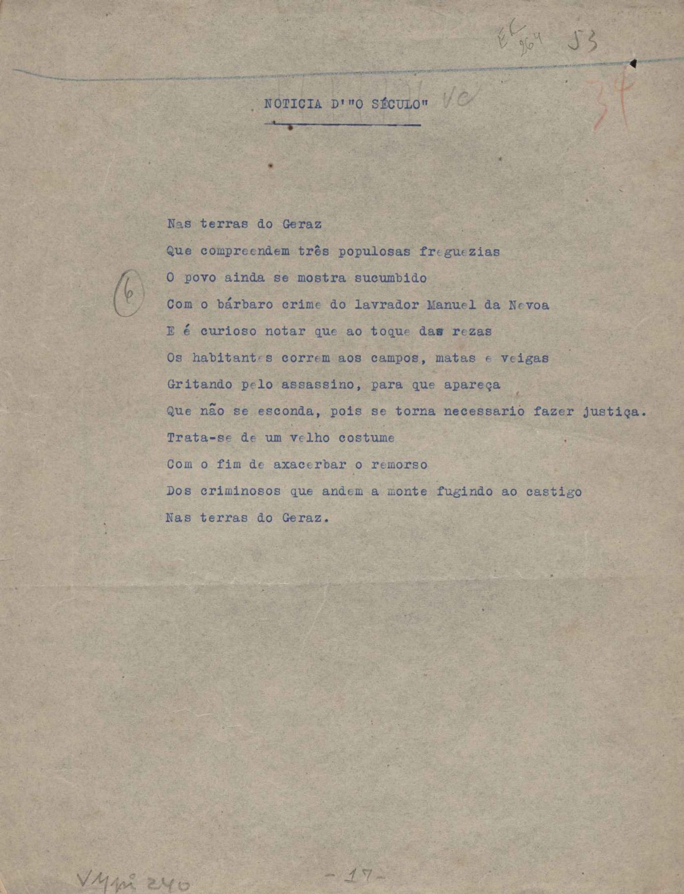 FORMATO TIPOGRÁFICO: Datilografado e manuscrito