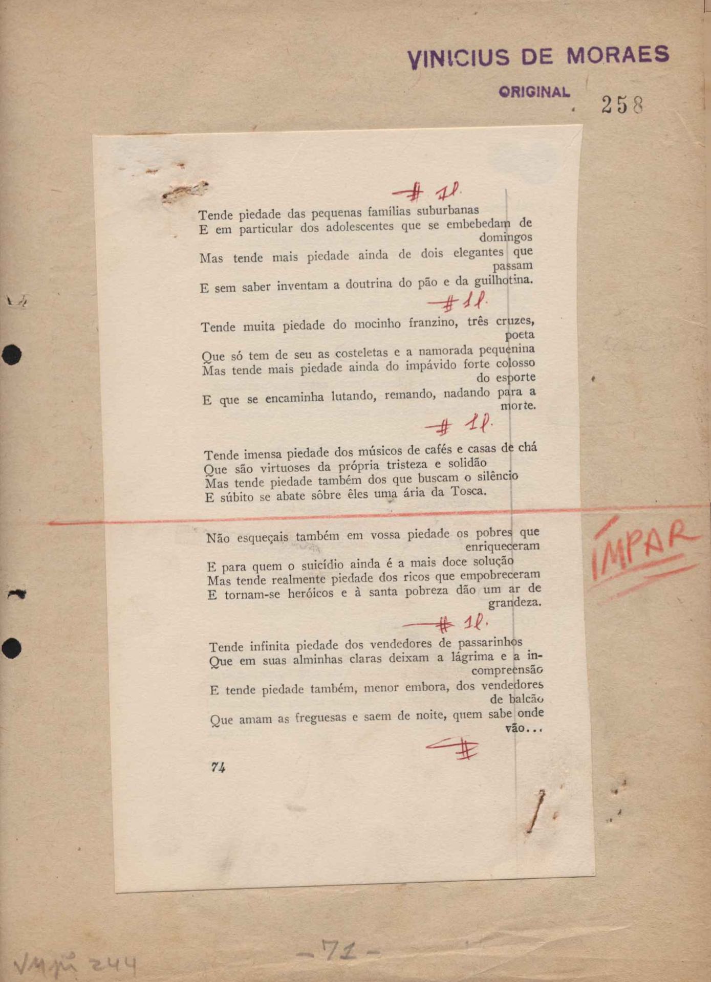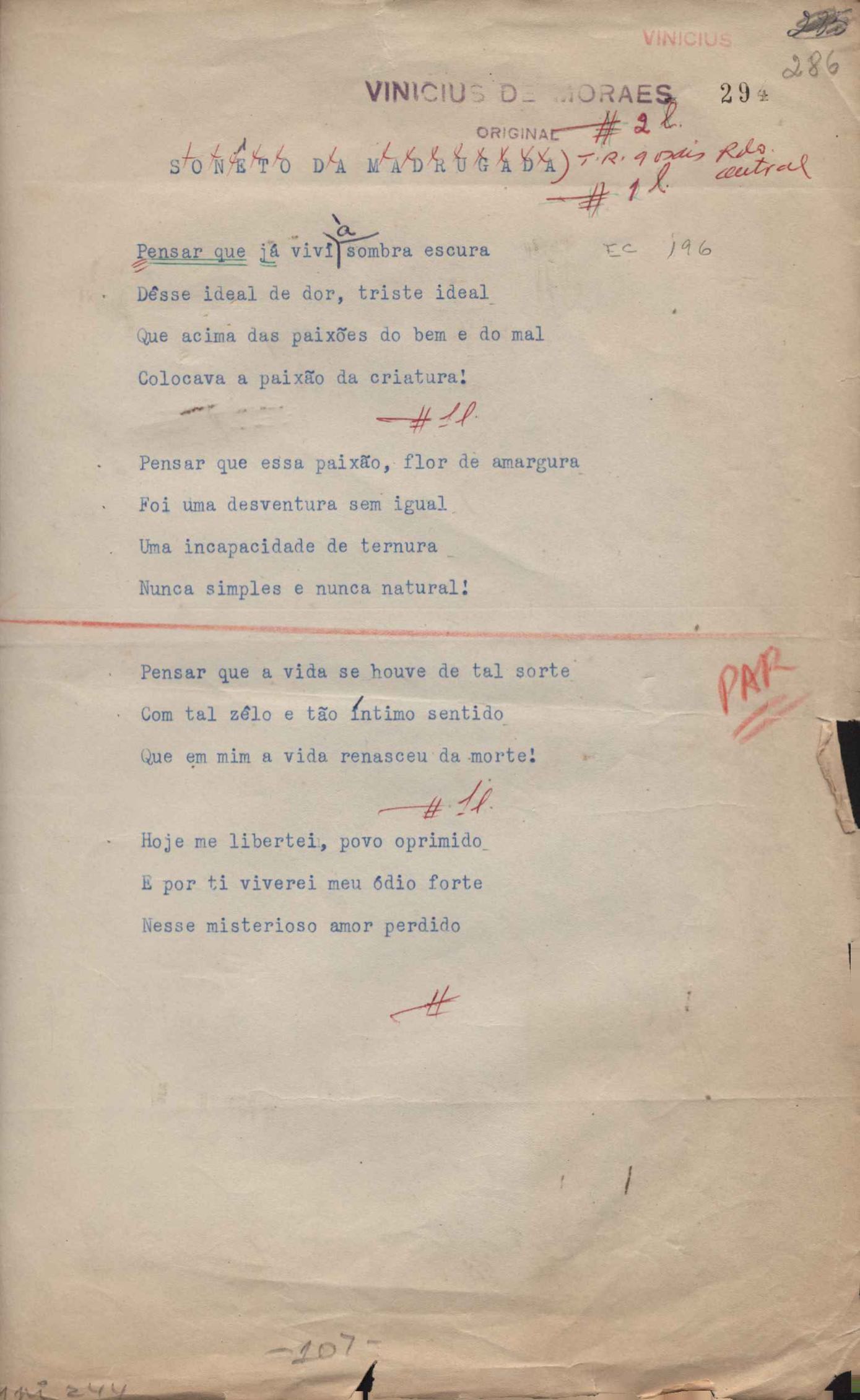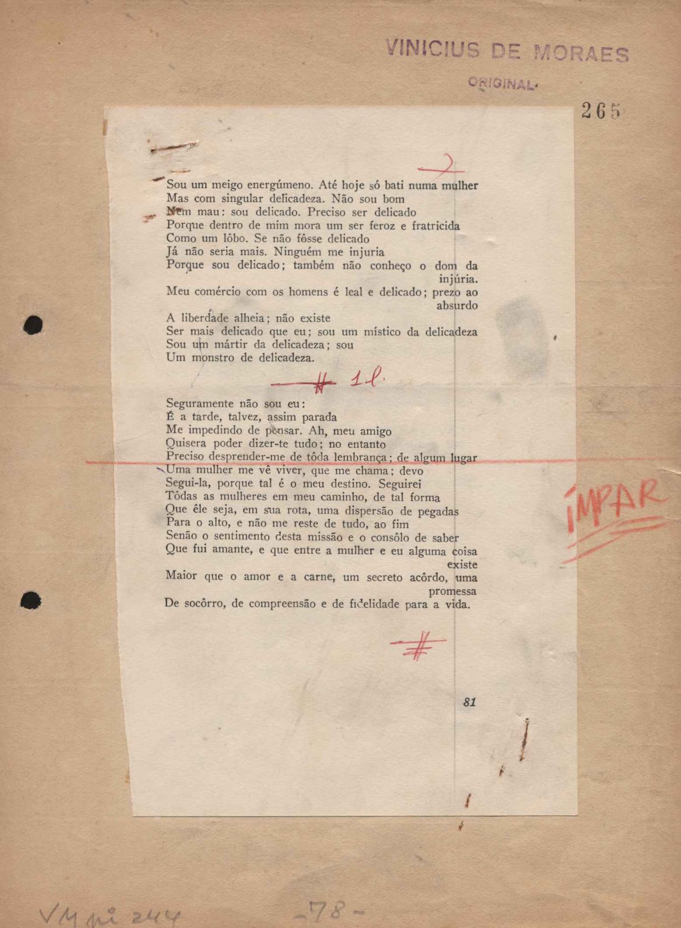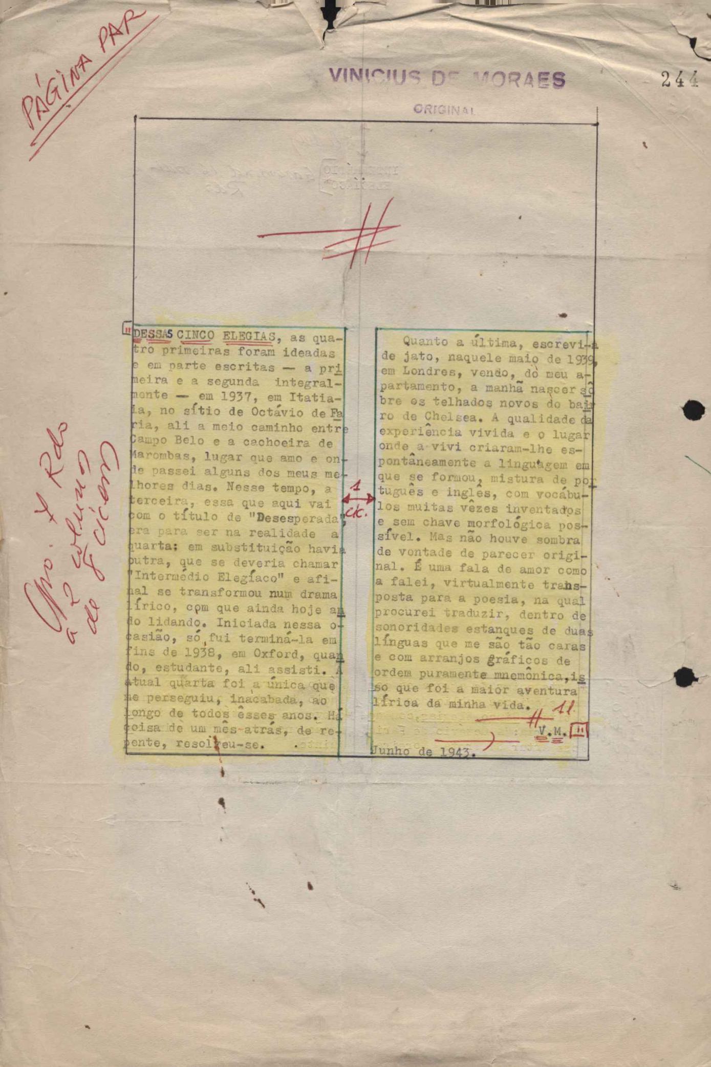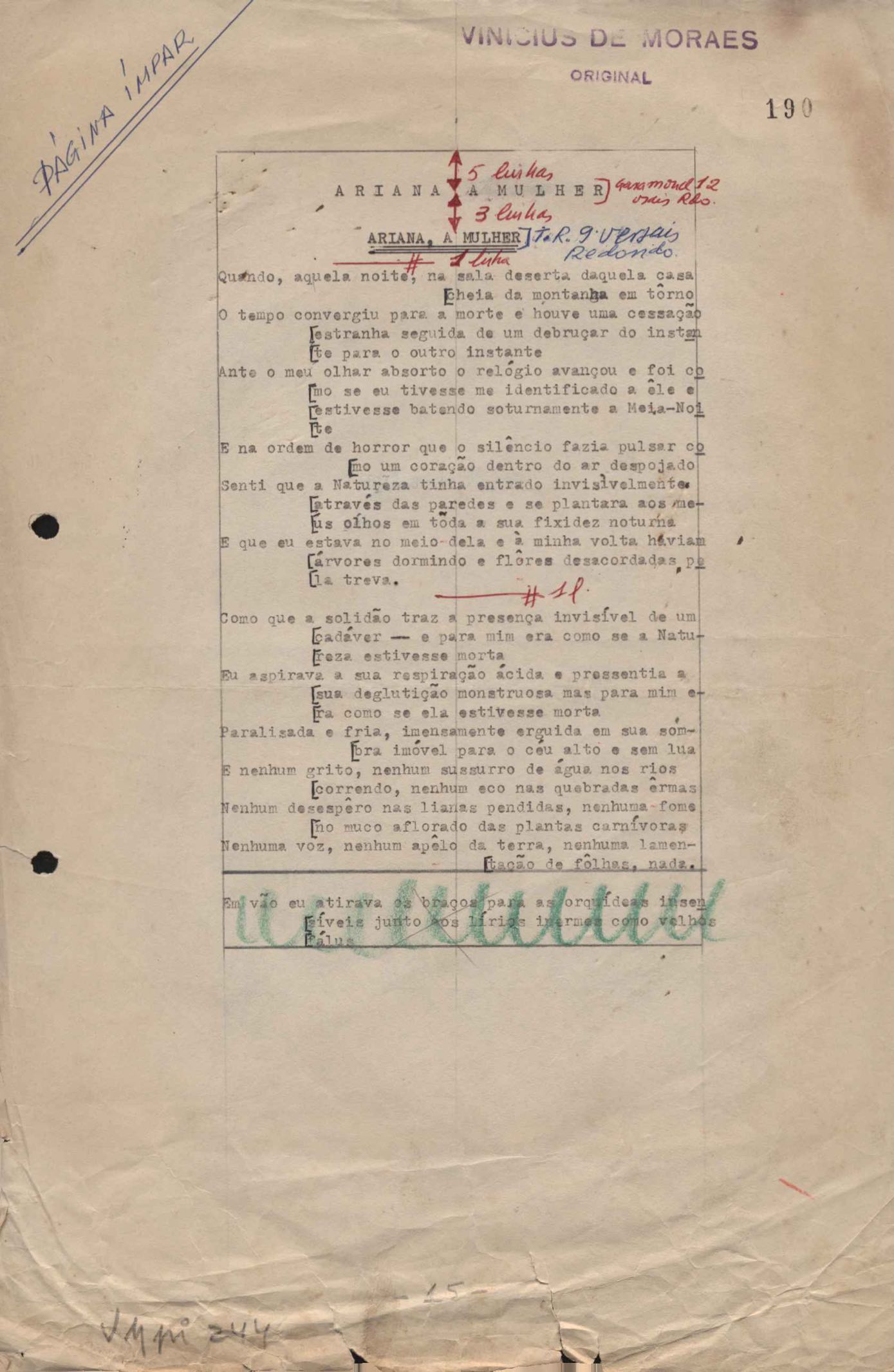 Datiloscrito que serviu de base à primeira edição publicada pela José Aguilar Editora.