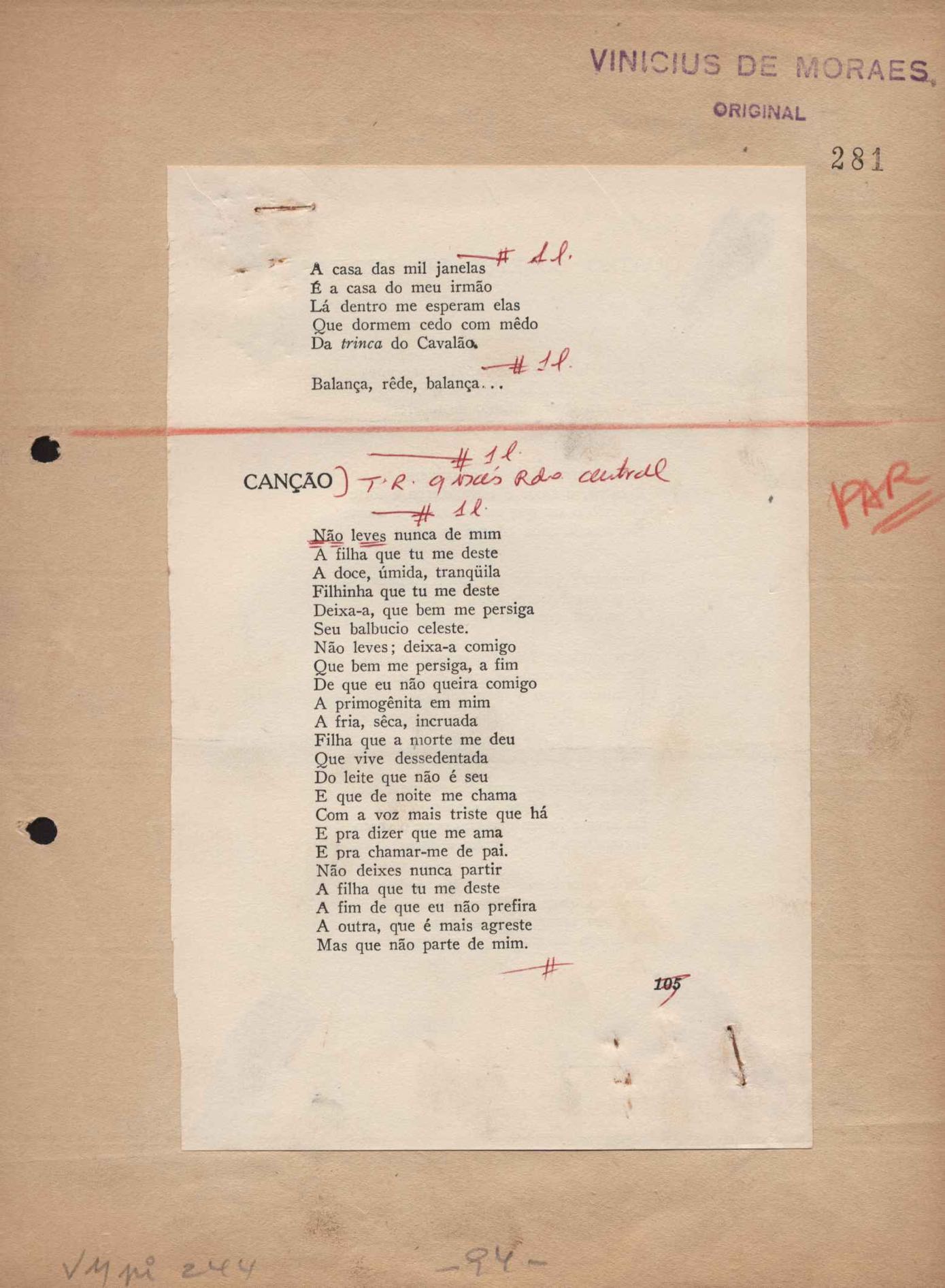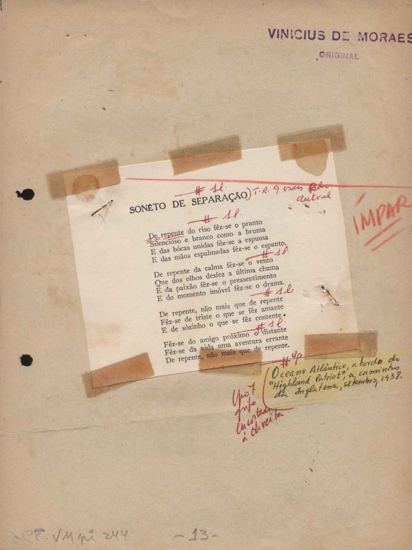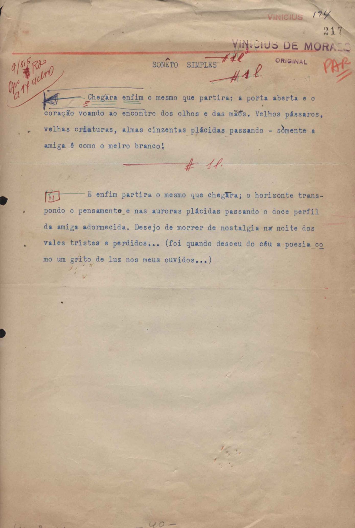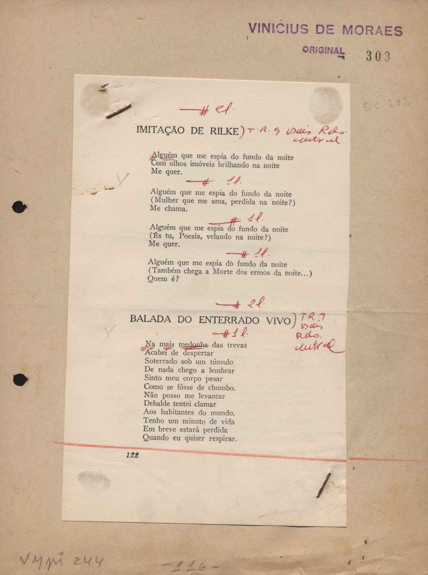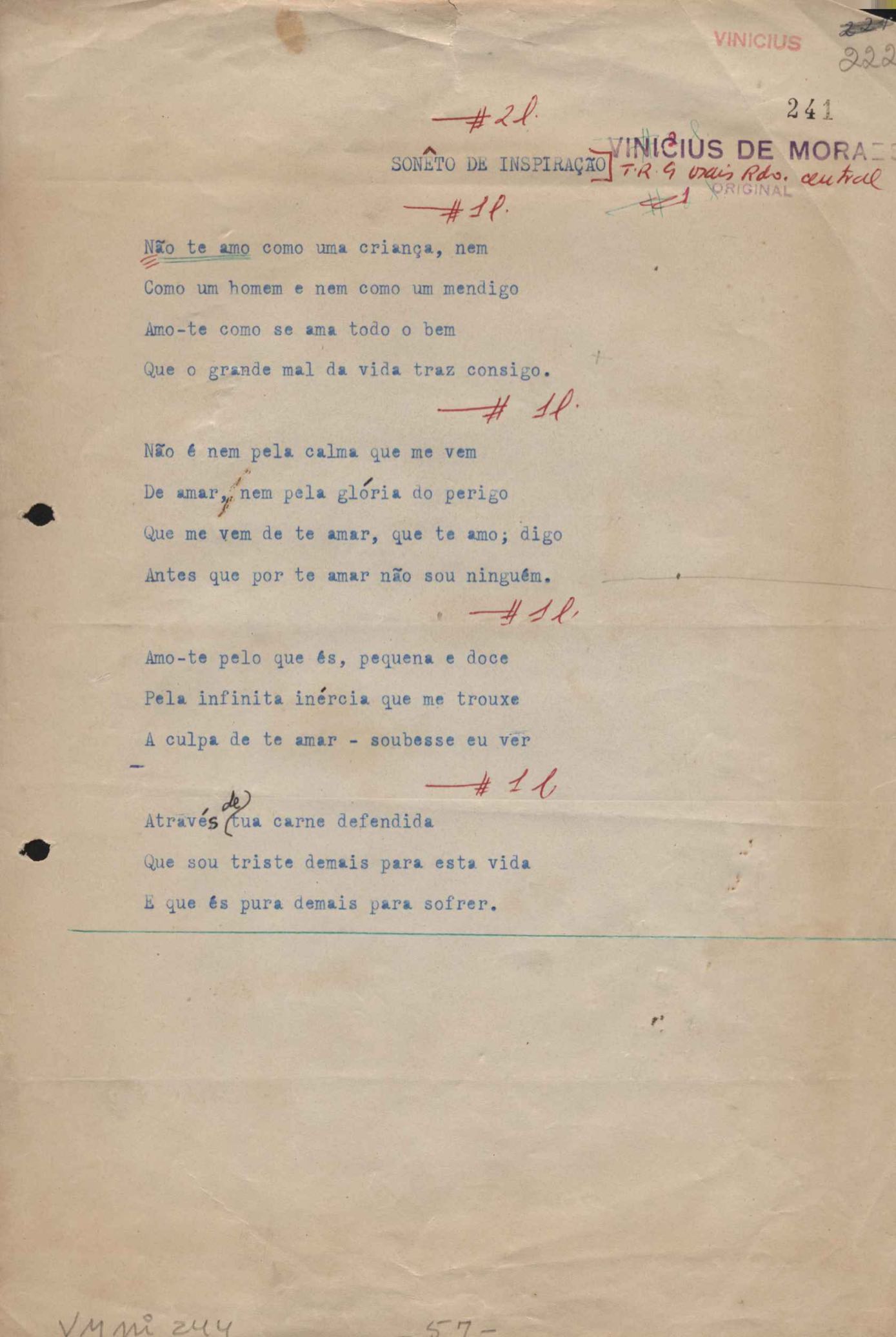 Datiloscrito que serviu de base à primeira edição publicada pela José Aguilar Editora.