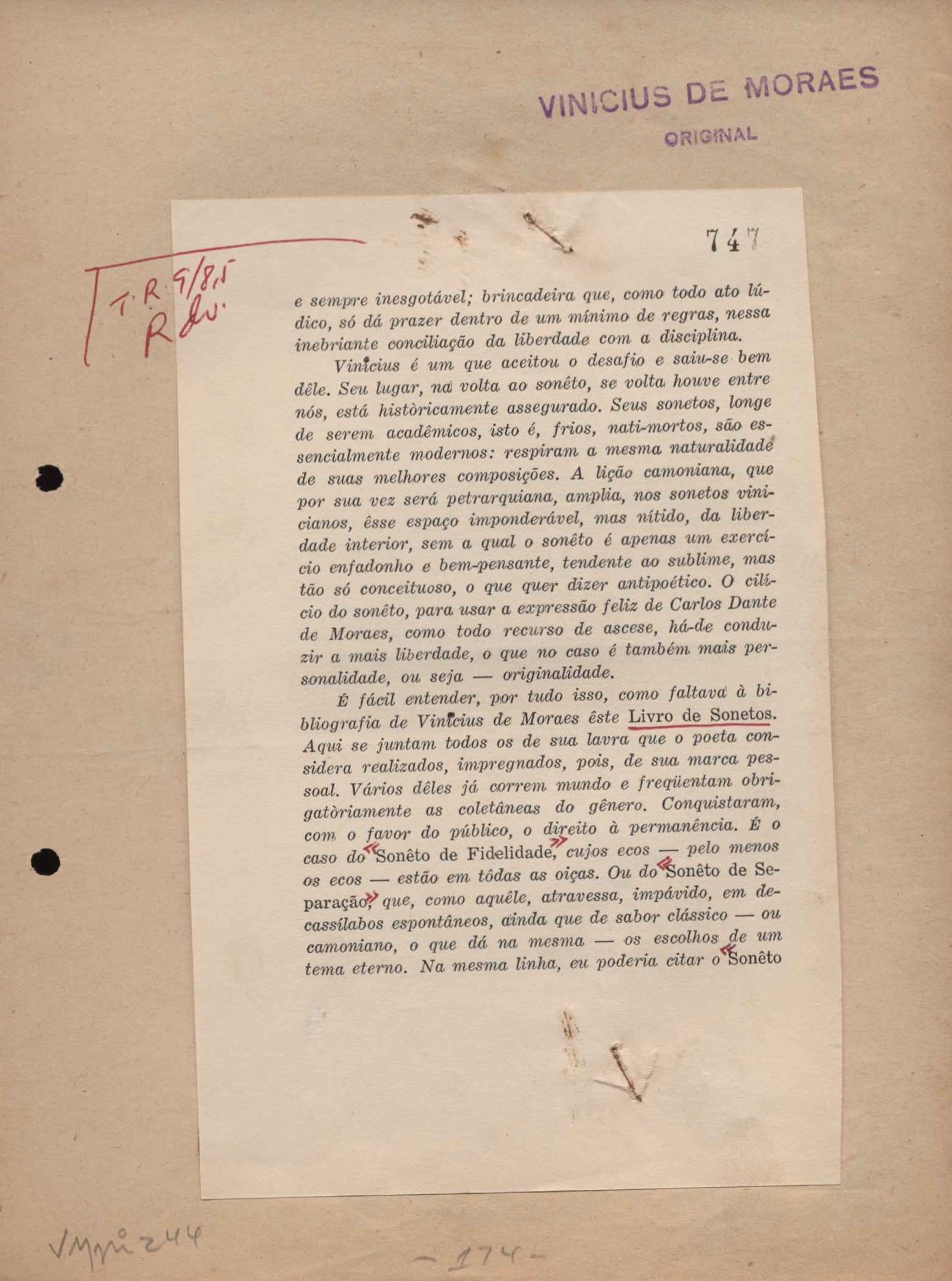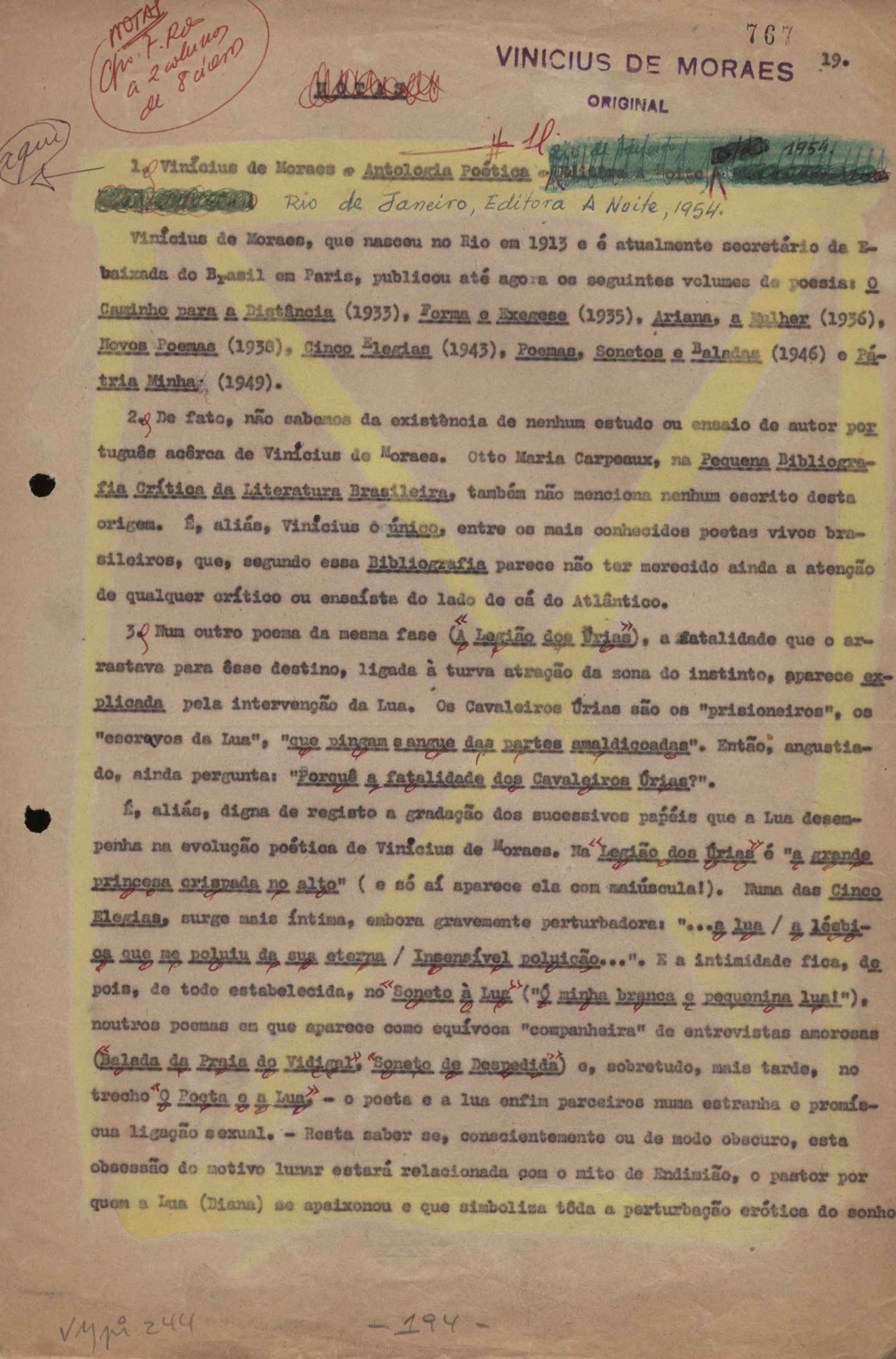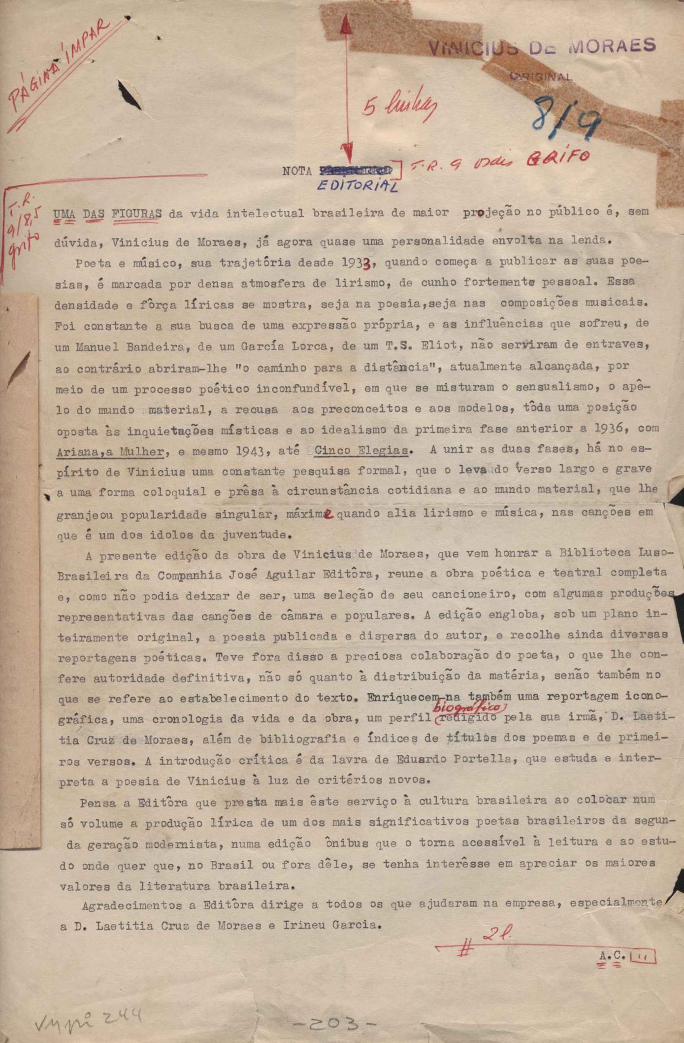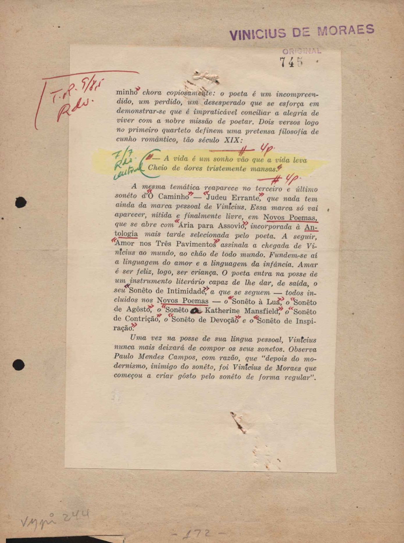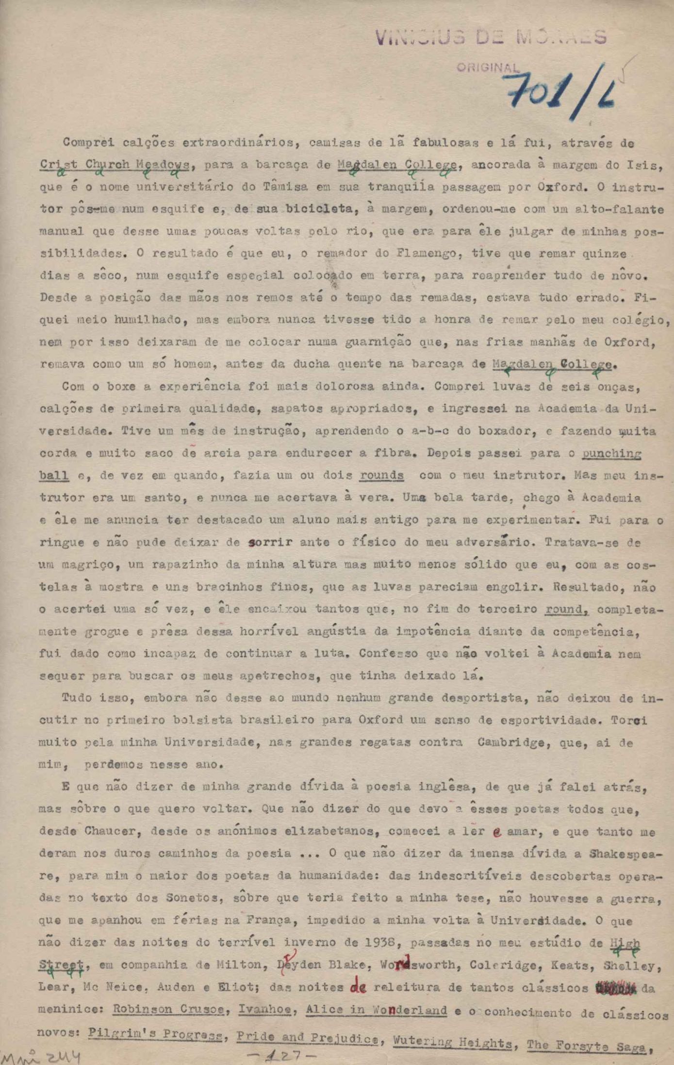 Datiloscrito que serviu de base à primeira edição publicada pela José Aguilar Editora.